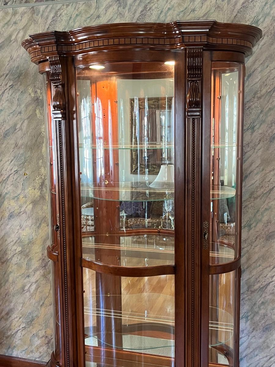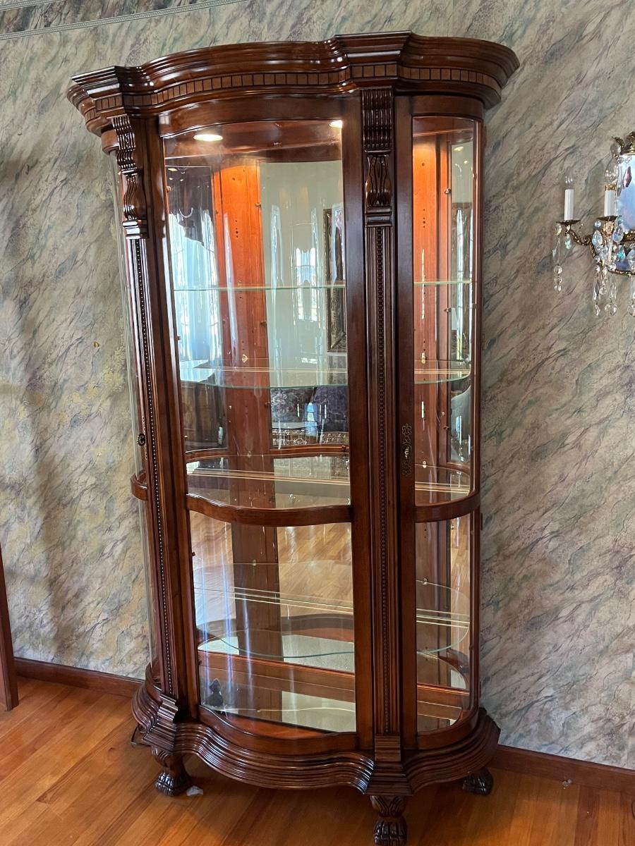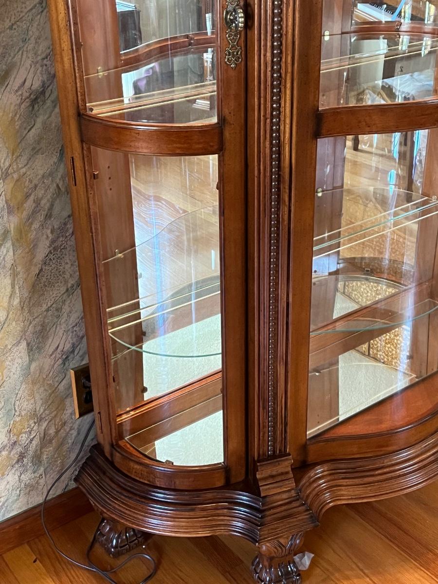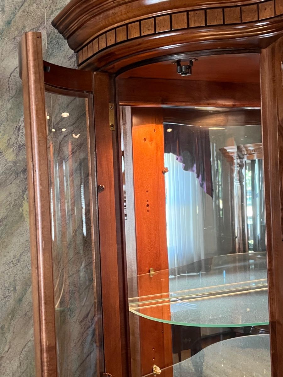 LOT 11L: Curved Front Glass and Wood Lighted Curio Cabinet