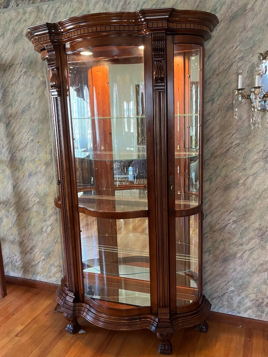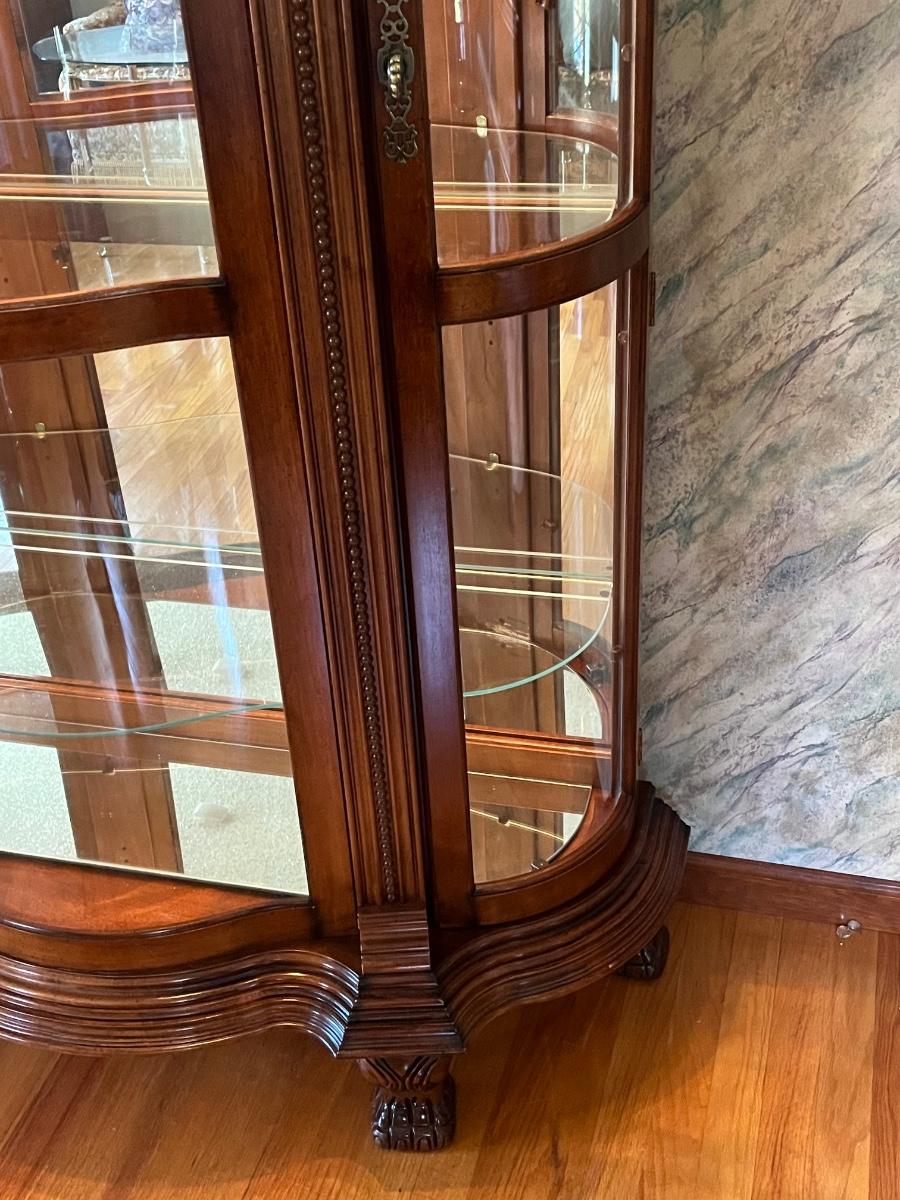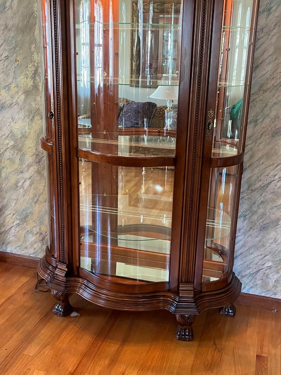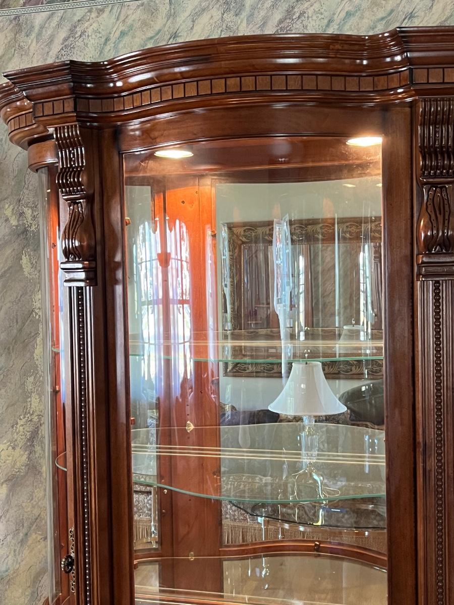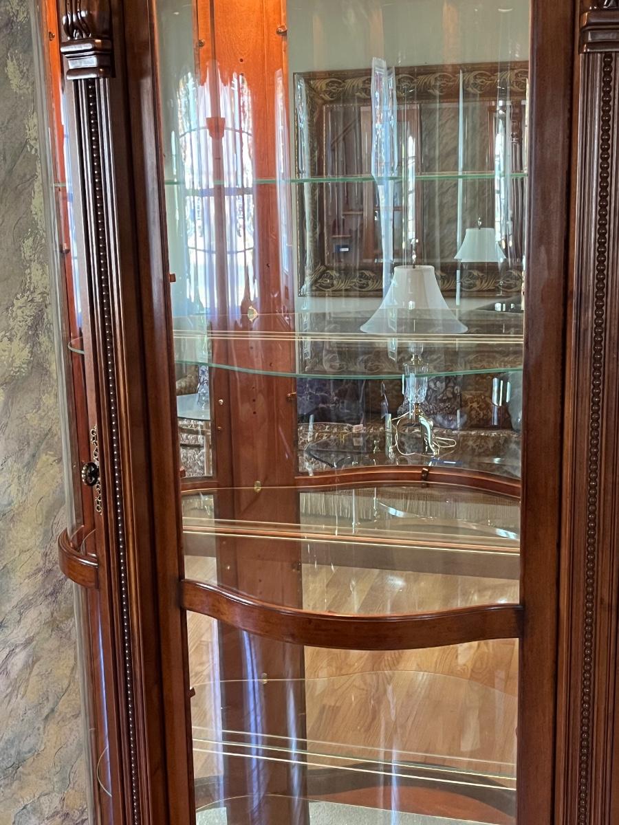 LOT 11L: Curved Front Glass and Wood Lighted Curio Cabinet