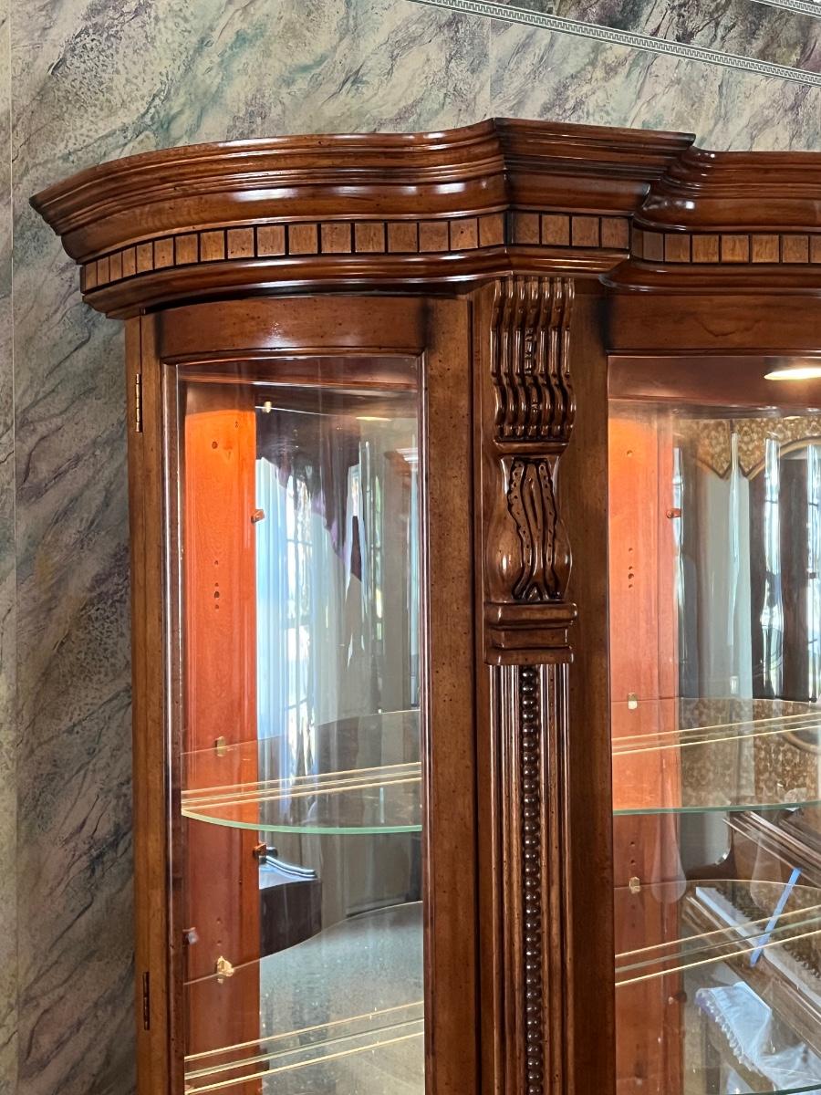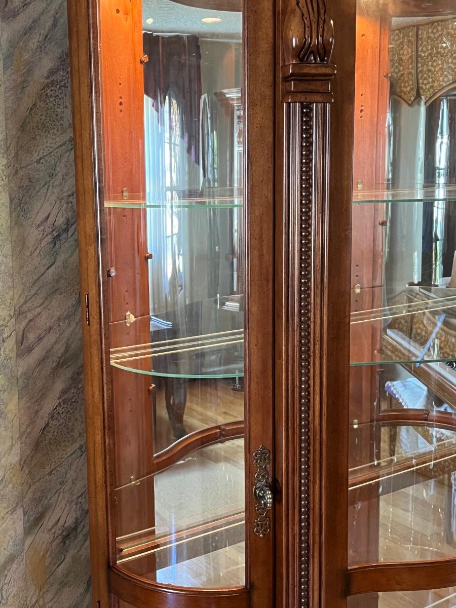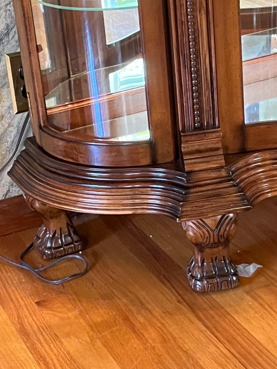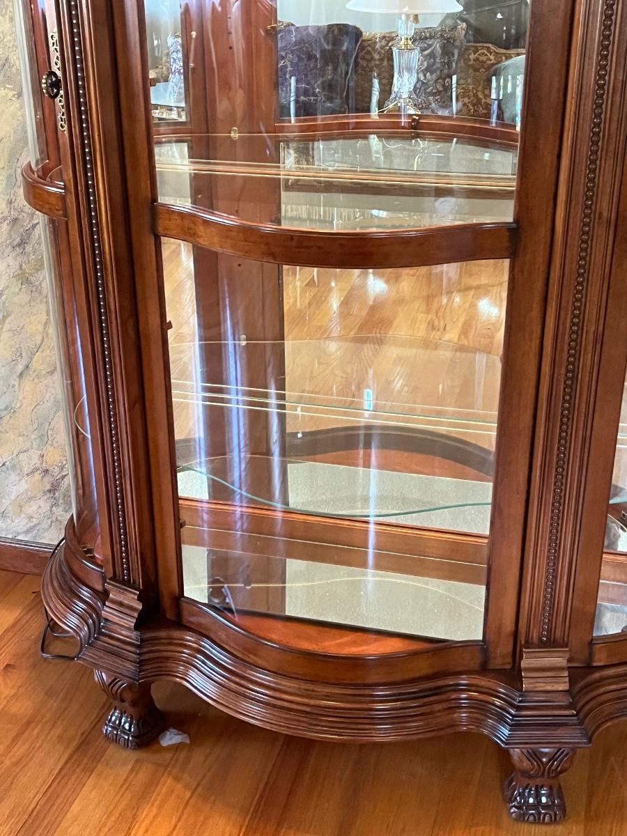LOT 11L: Curved Front Glass and Wood Lighted Curio Cabinet