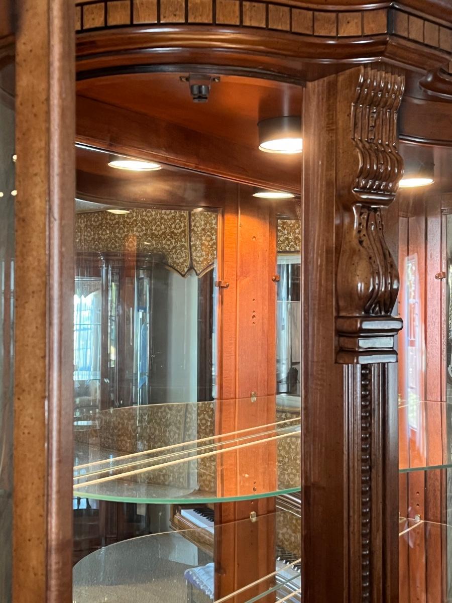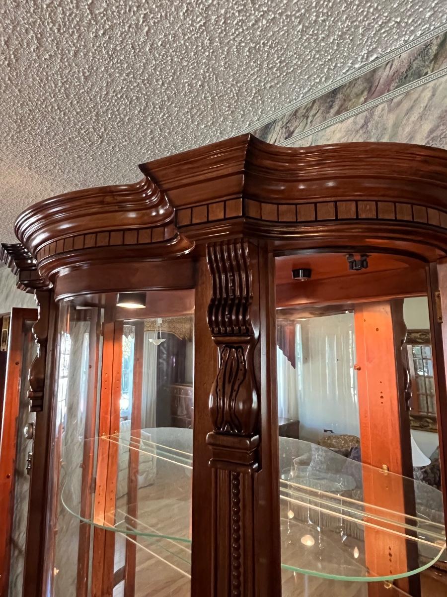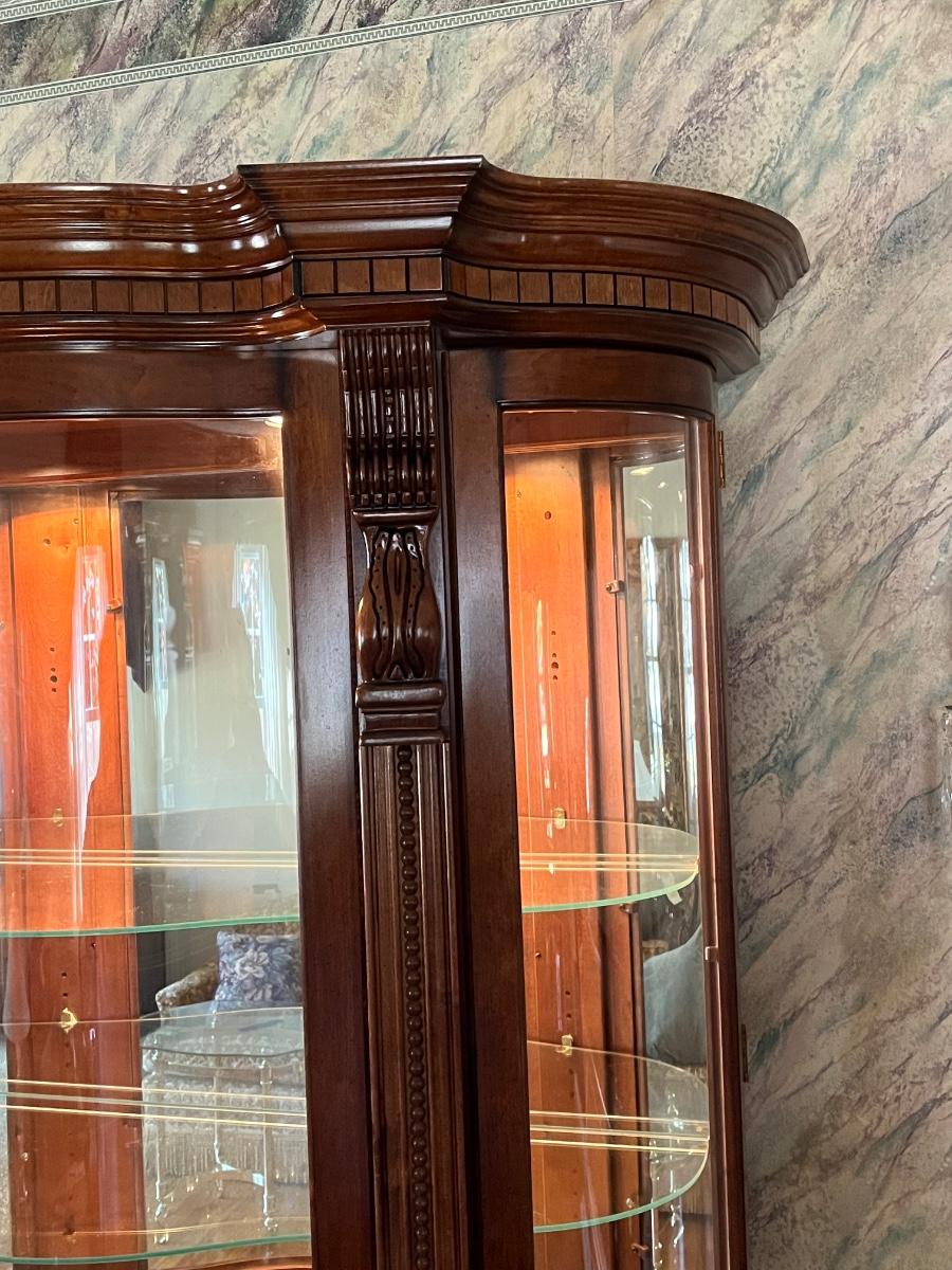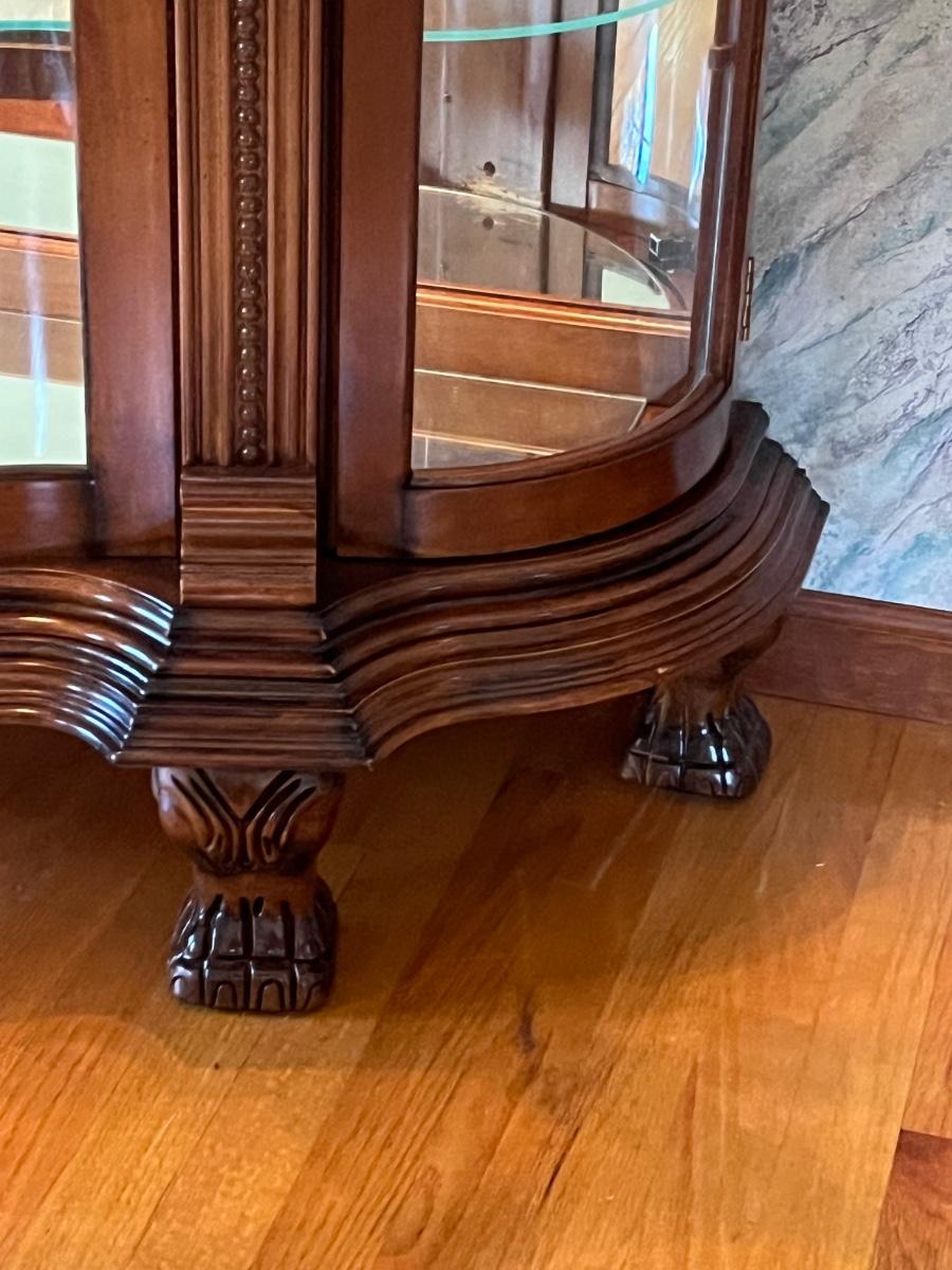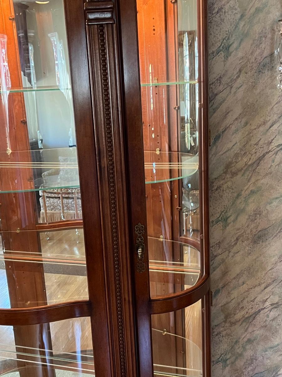 LOT 11L: Curved Front Glass and Wood Lighted Curio Cabinet