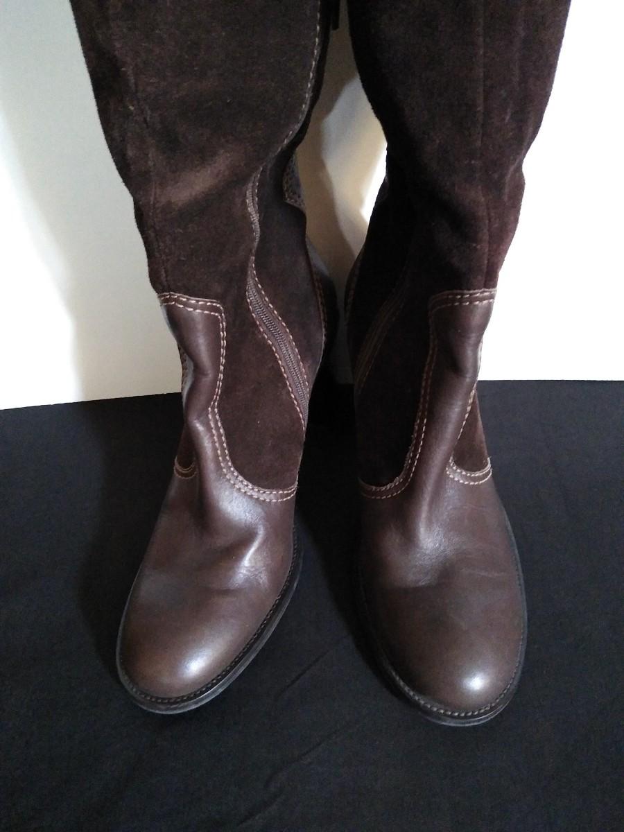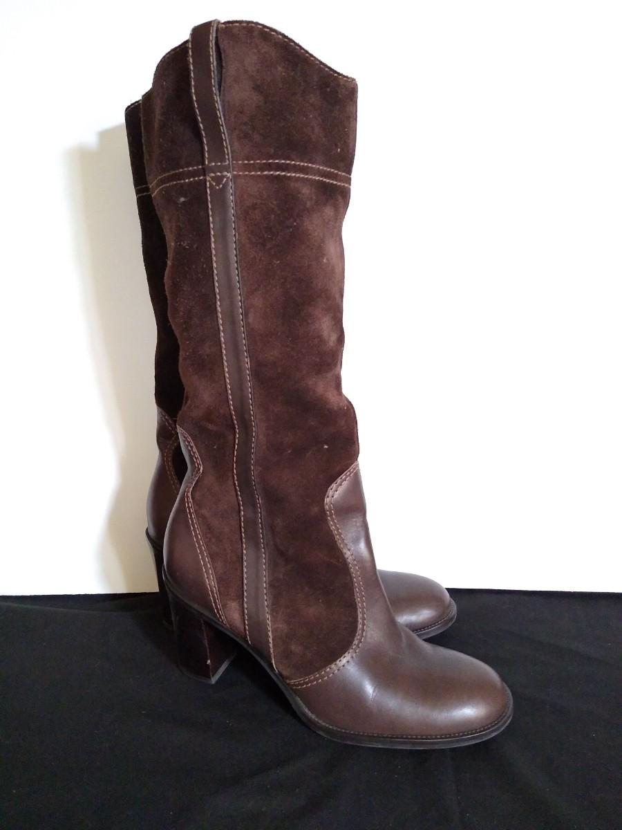 LOT 43C: Vintage Franco Sarto Brown Suede & Leather Knee High Boots Women's 8.5