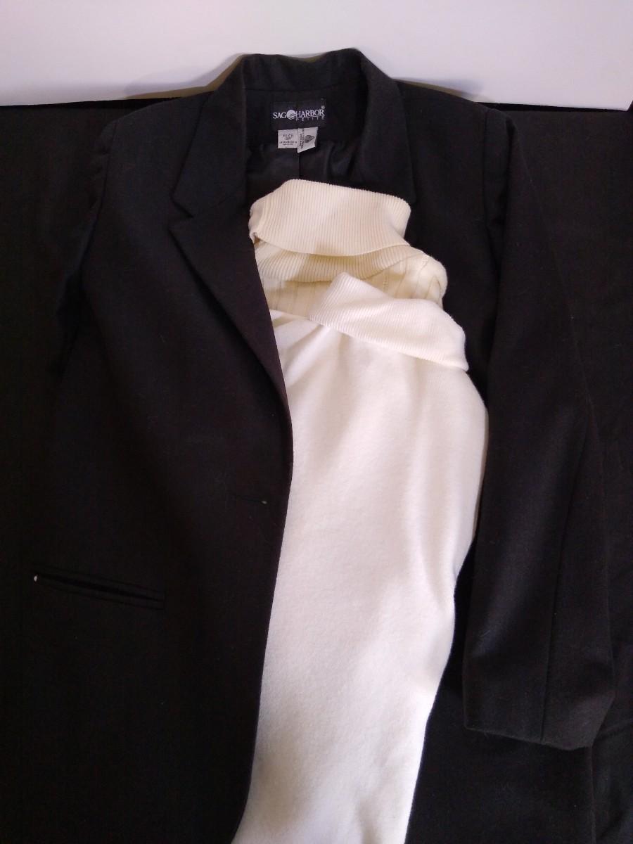 LOT 58C: Sag Harbor Wool Coat Sz 8P w/ Turtlenecks- Pierre Cardin & Chico's
