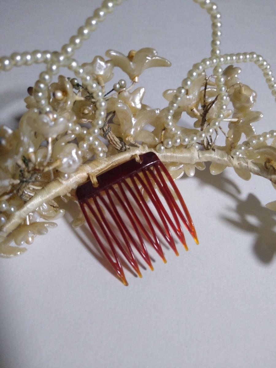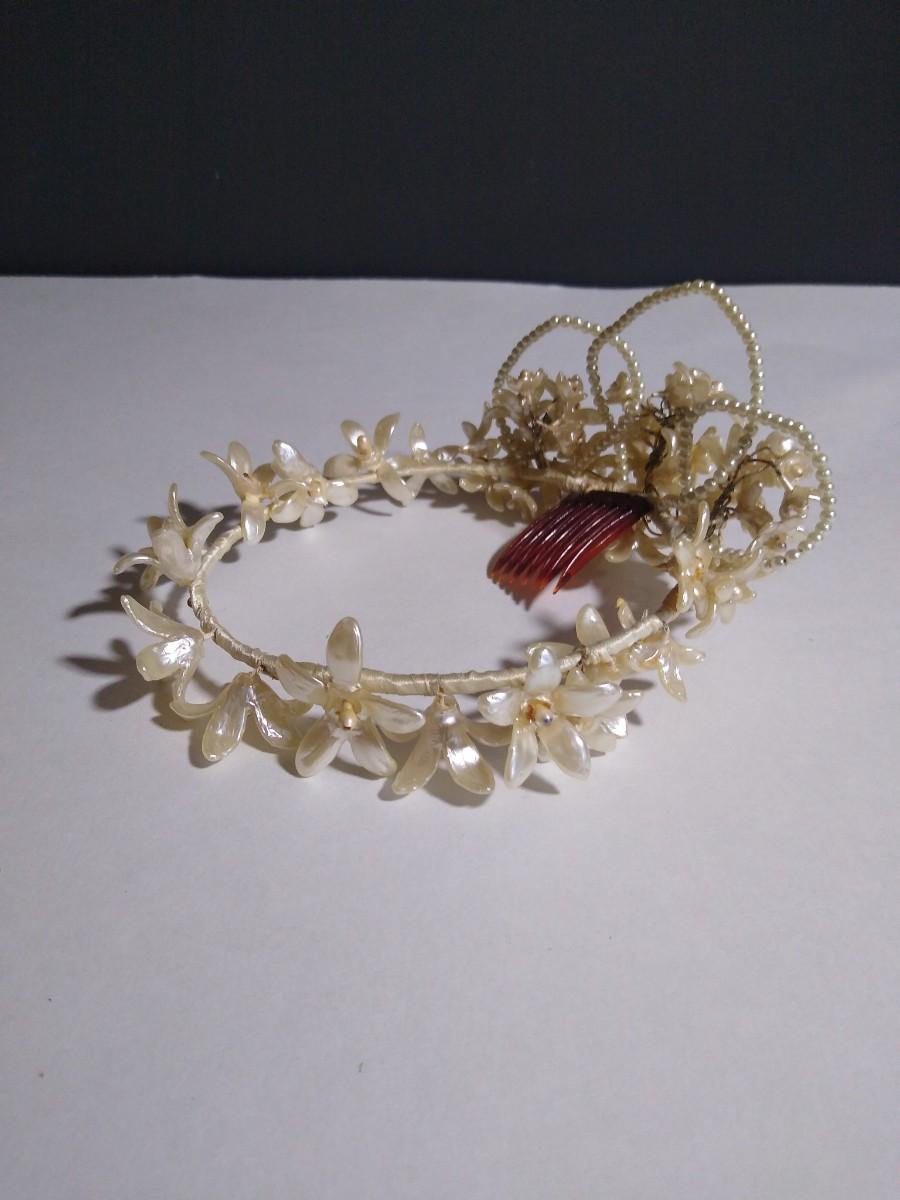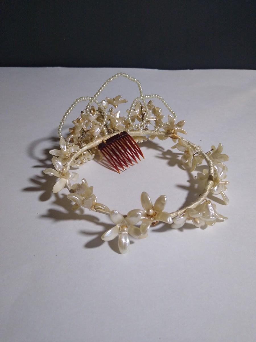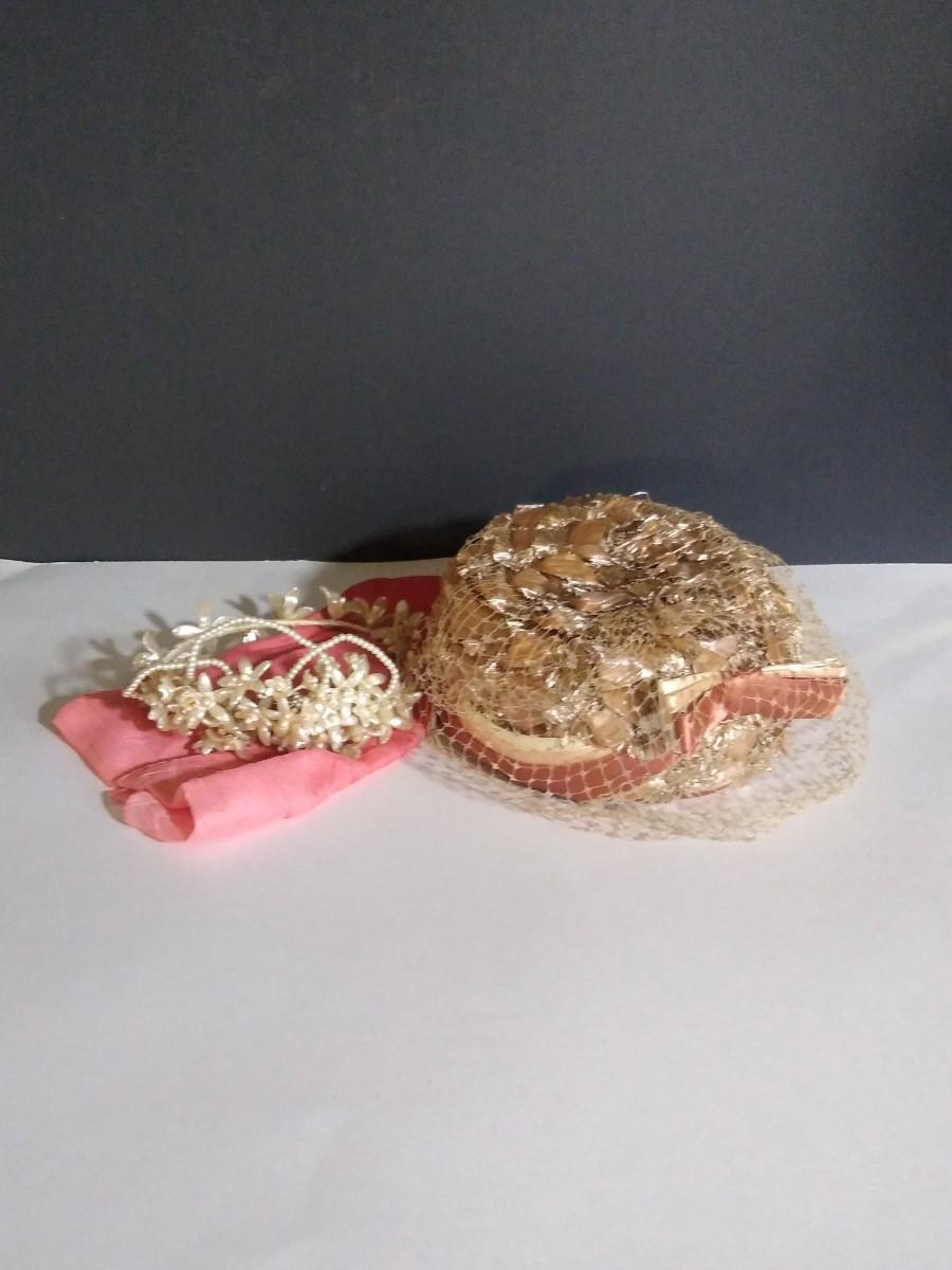 LOT 71C: Vintage Floral Wax Flower Bridal Crown & Pillbox Hat w/ Union Label