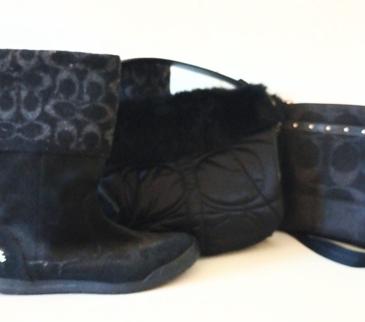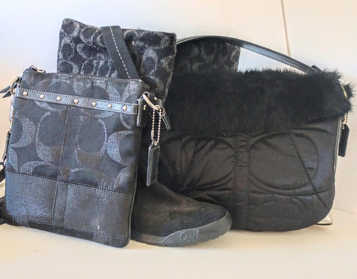 LOT 87P: Two Coach Purses, Coach Winter Boots and Gloves