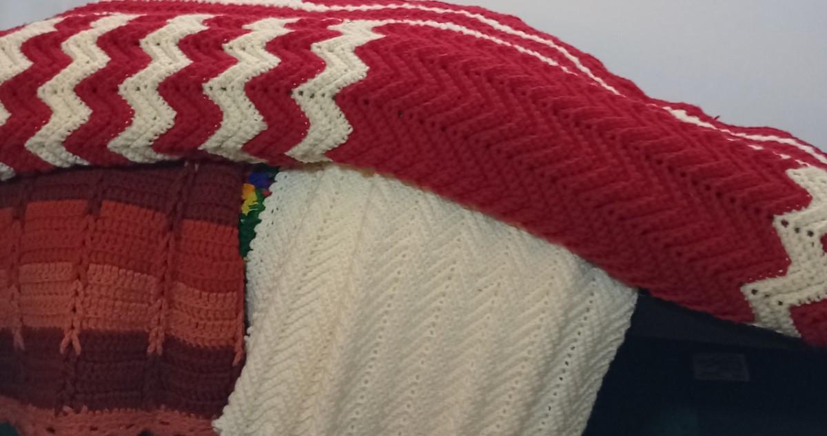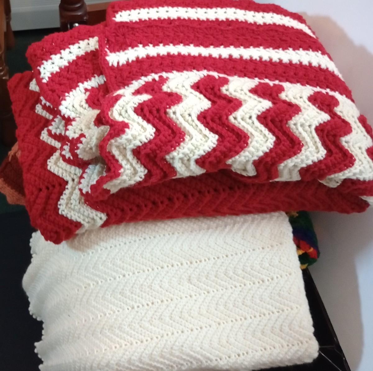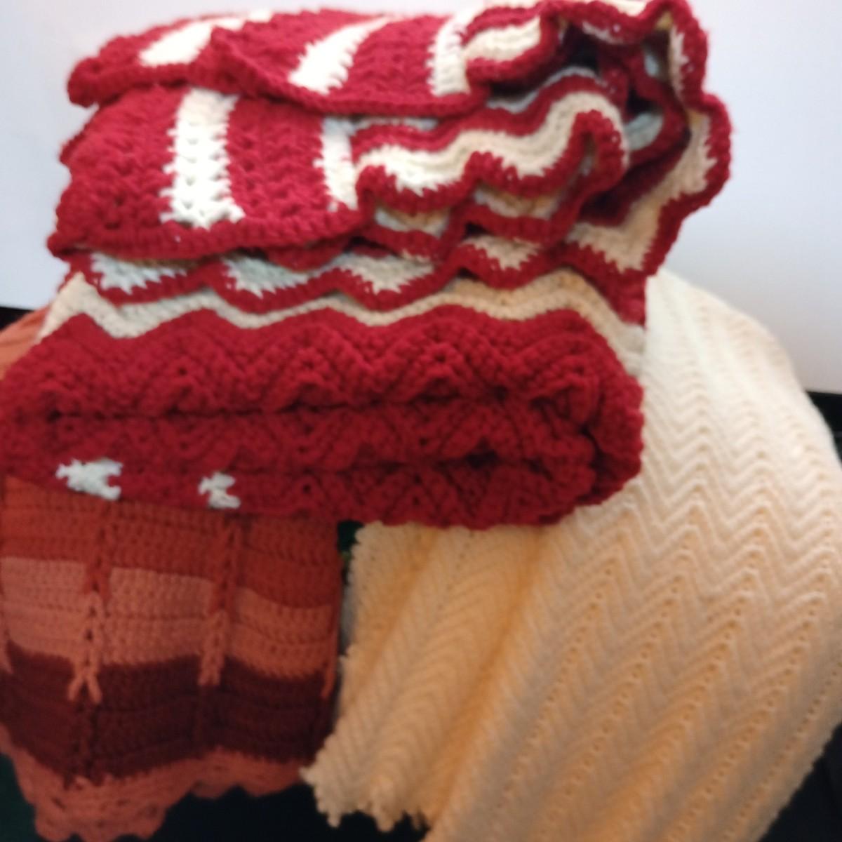 LOT 102D: Four Crocheted Afghans in Multiple Colors
