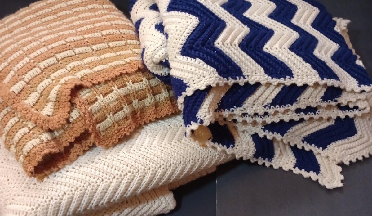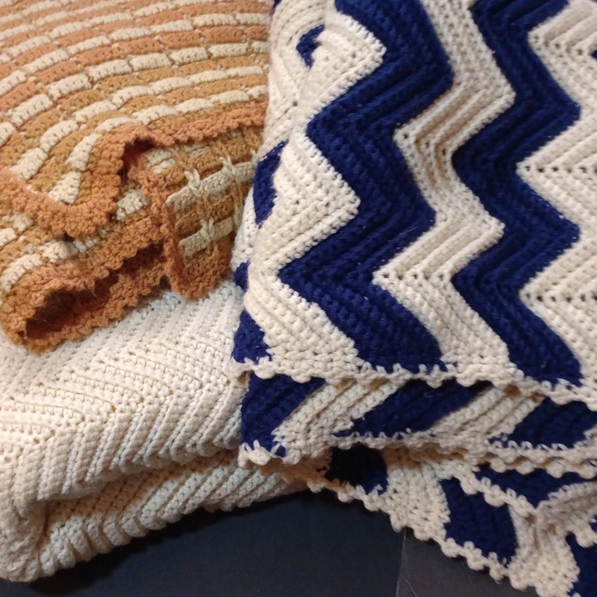LOT 103D: Three Handmade Crocheted Afghans in Multiple Colors