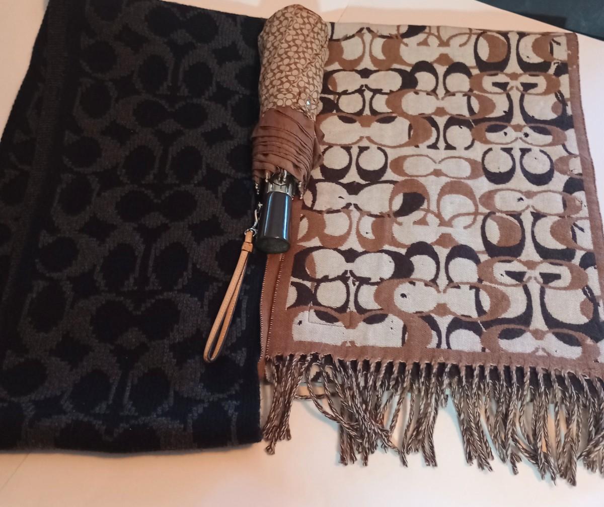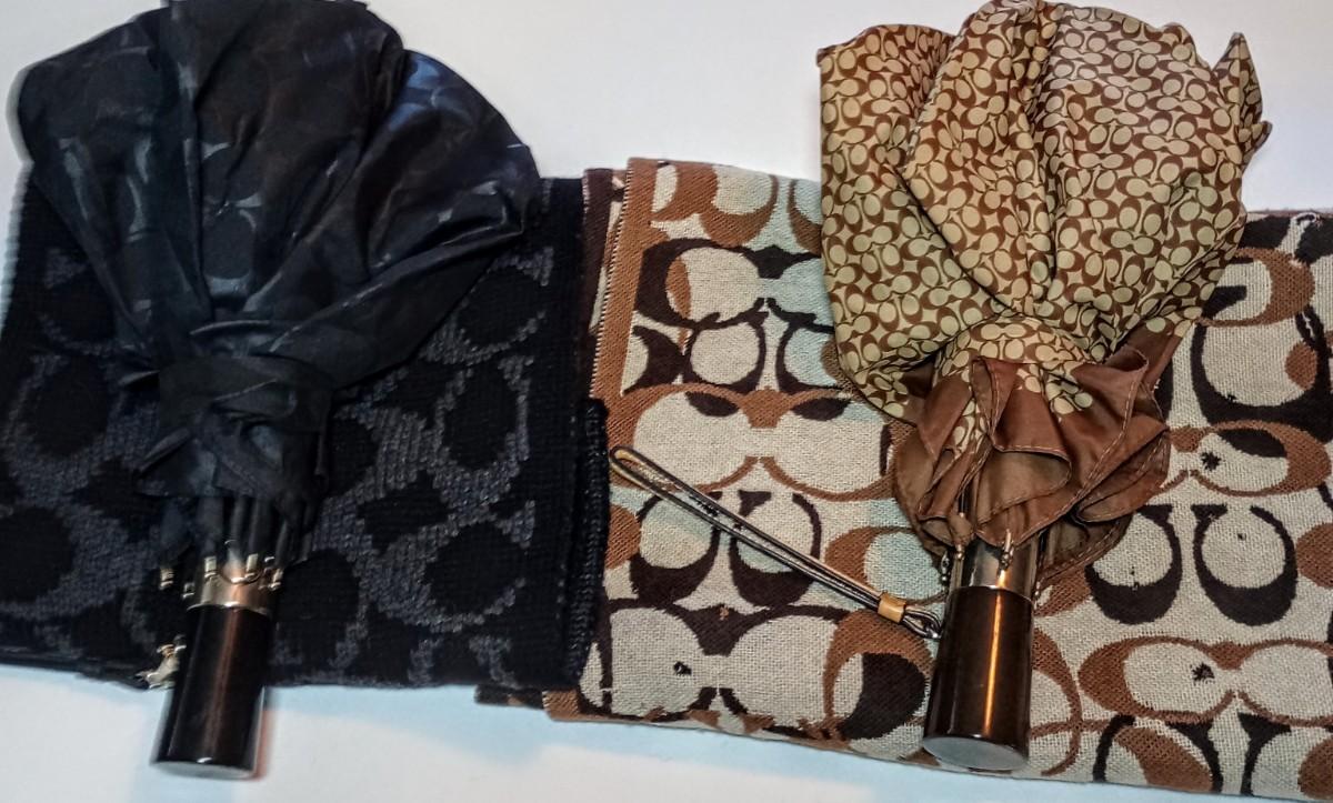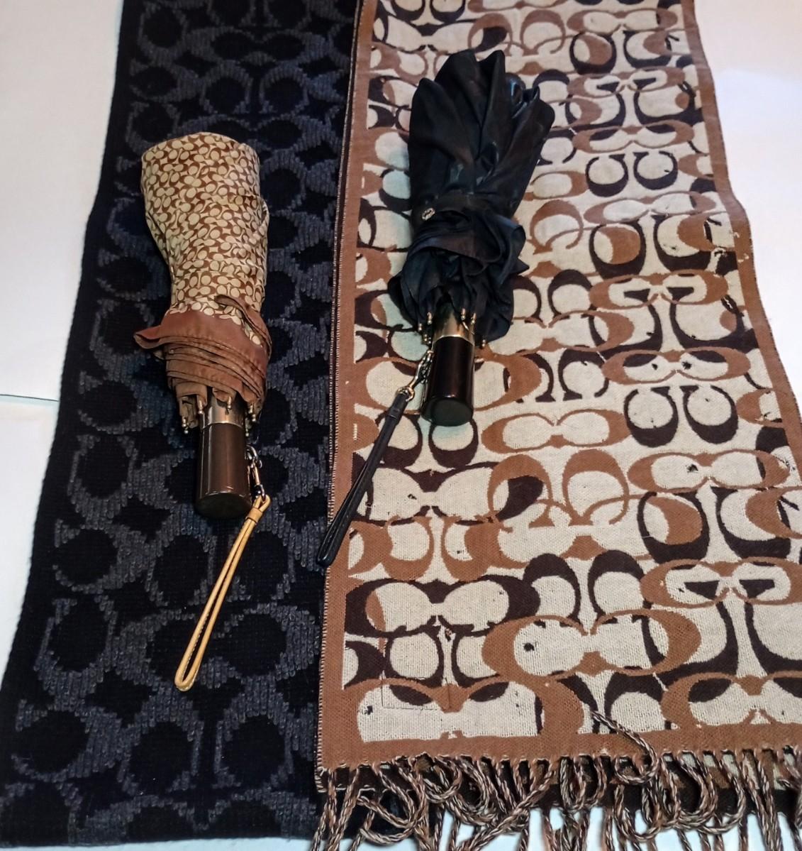LOT 110M: Two Coach Scarves w/Matching Umbrellas