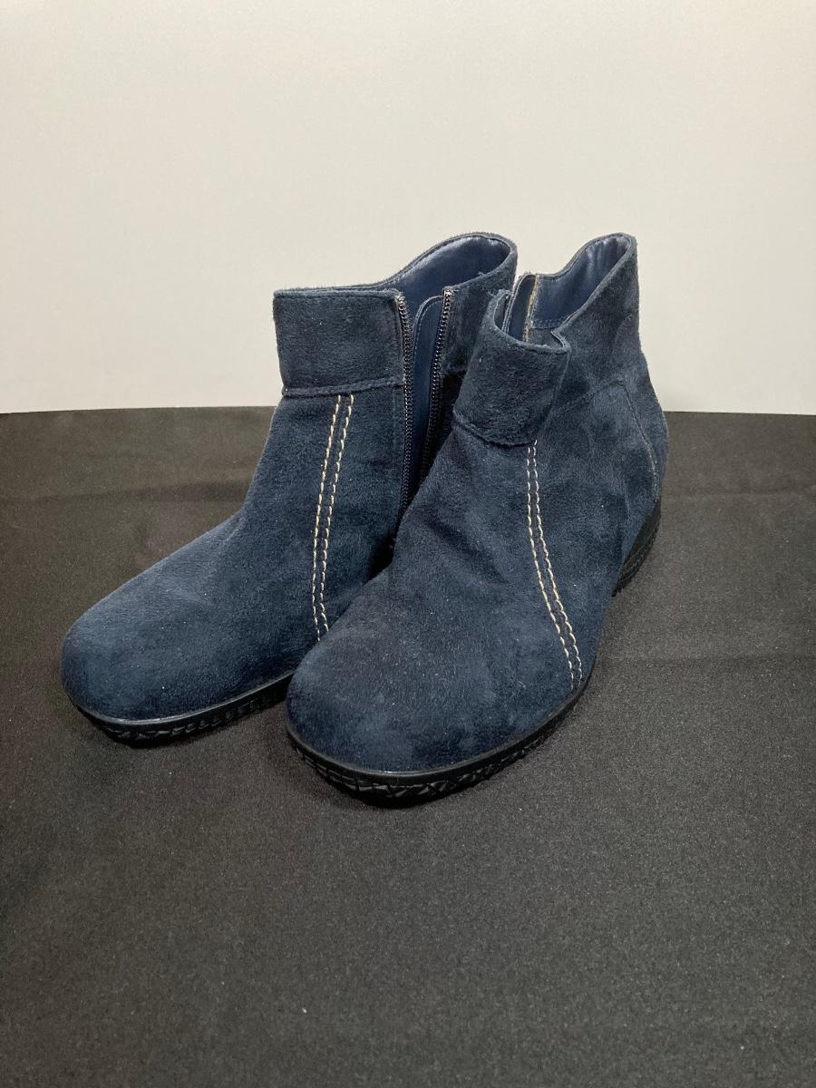 LOT 131M: Shoe Collection - Leather Slip-ons, Blue Suede Boots and More
