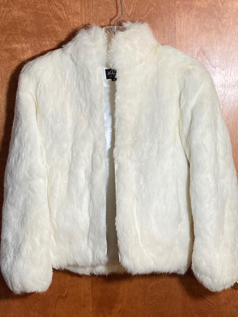 LOT 135M: Vintage White Rabbit Fur Jacket and Liz Claiborne Hat with Black Veil Netting