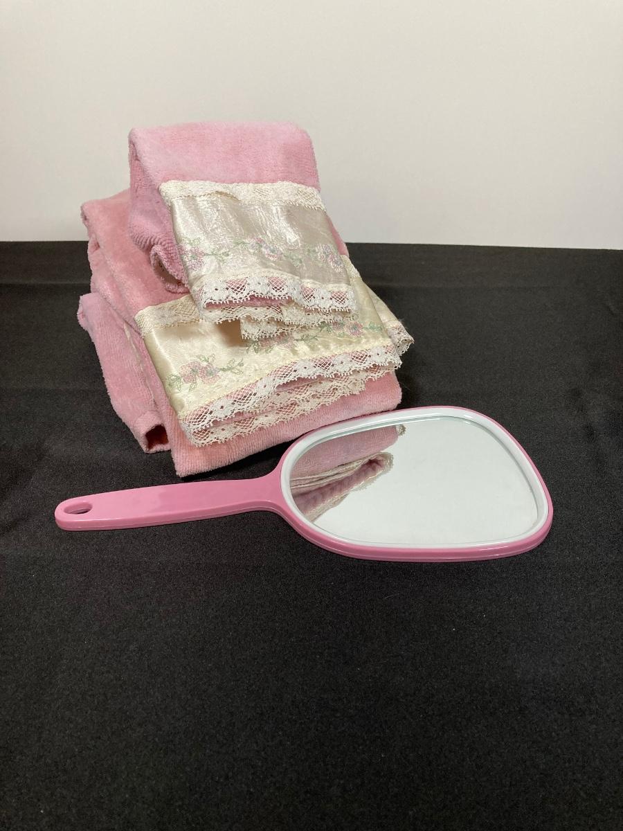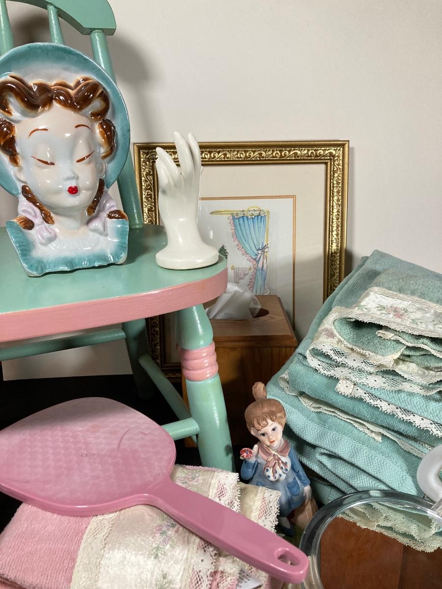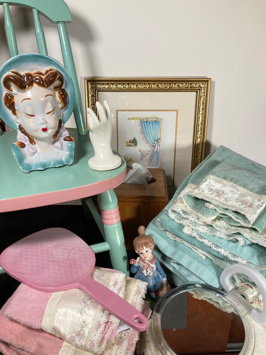 LOT 146M: Bathroom Collection - Towels, Lady Head planter, Wall Art & More