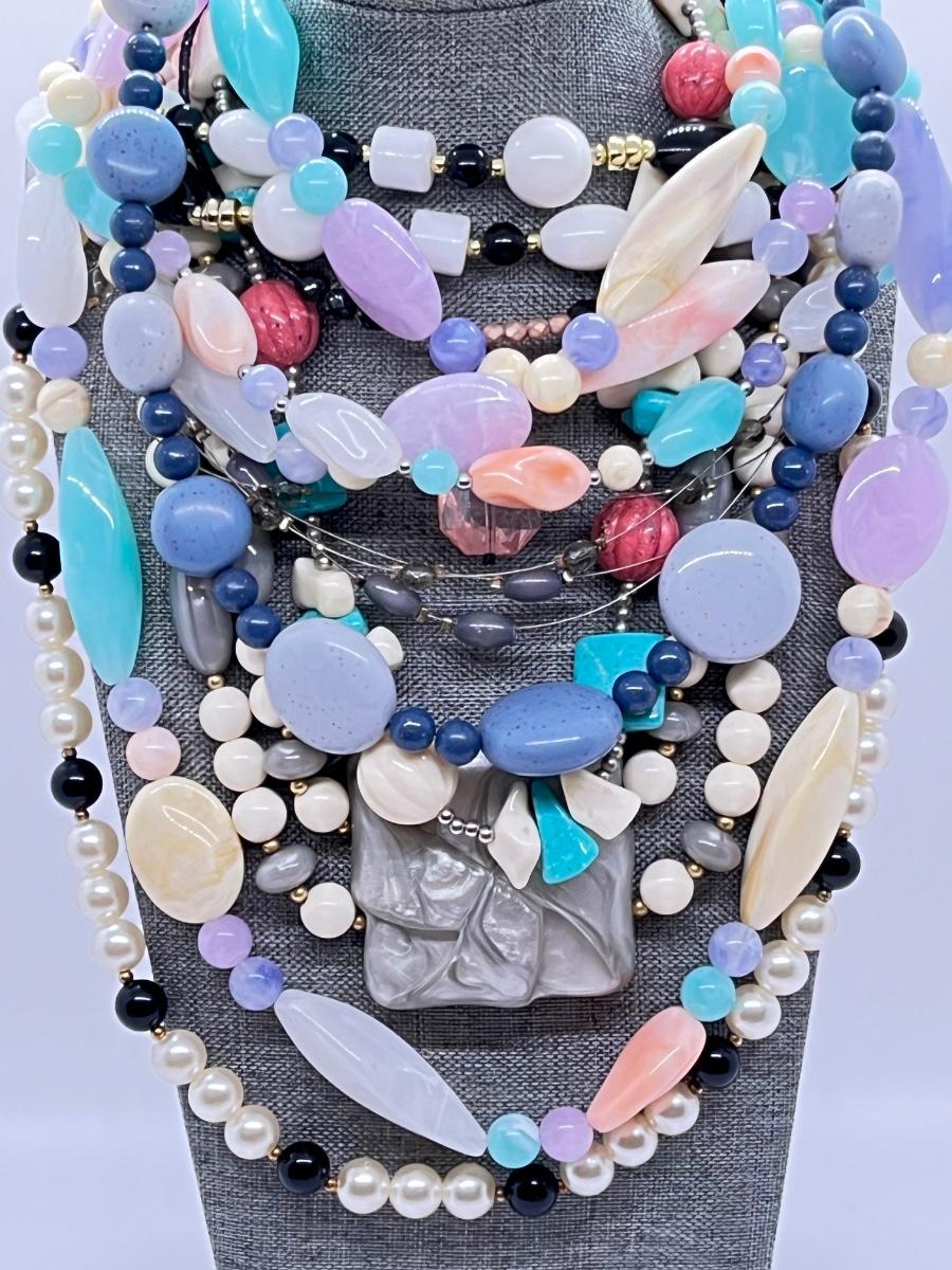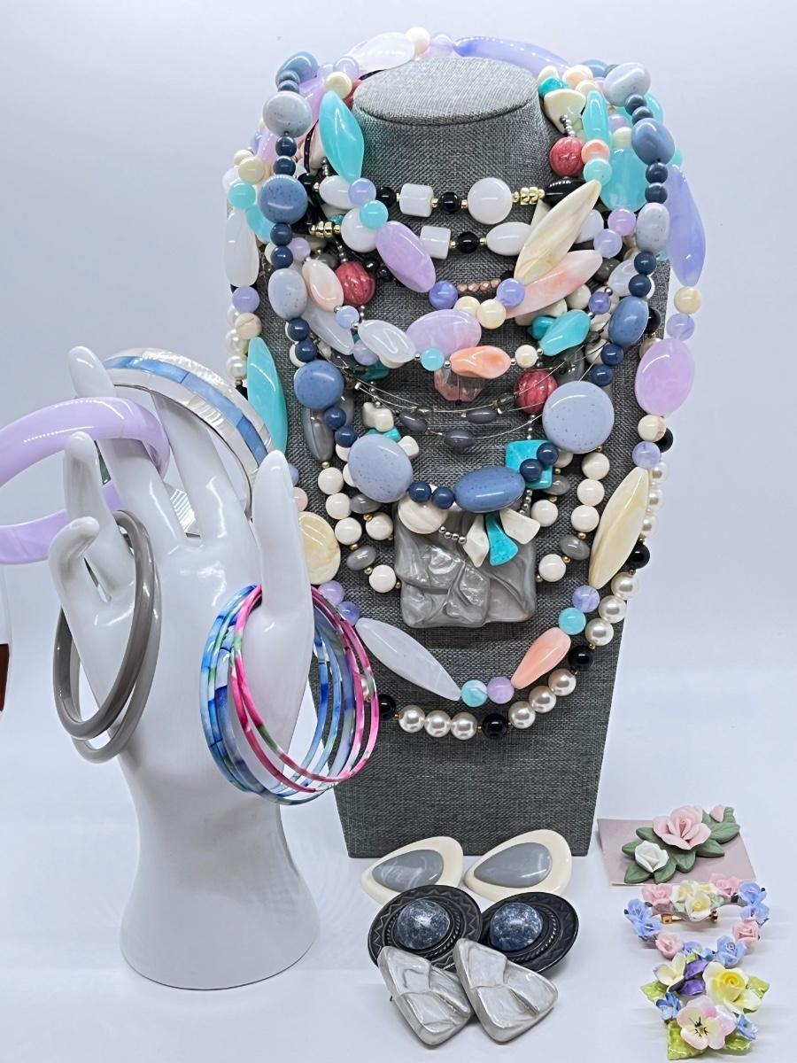 LOT 161J: Bright Pastel Toned Necklaces, Bracelets, Pins and Earrings