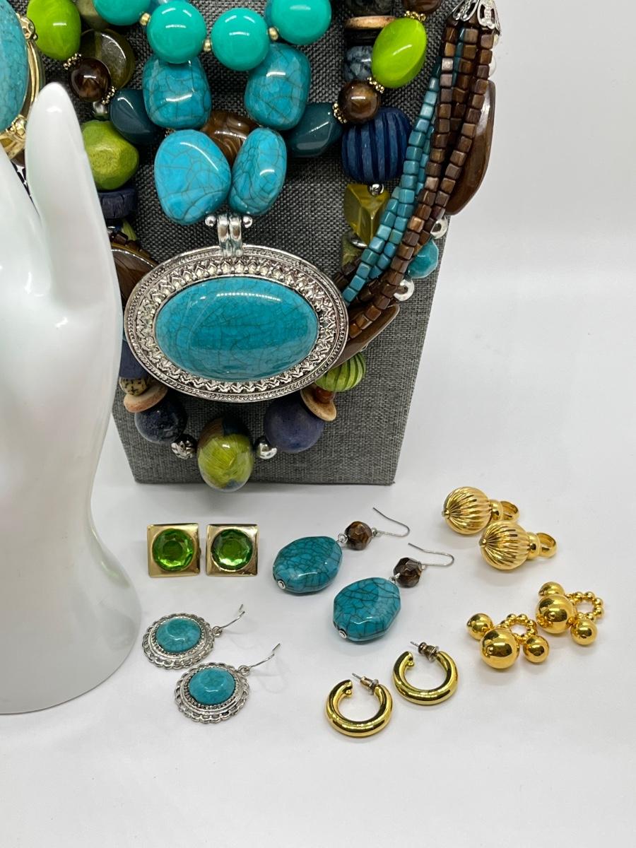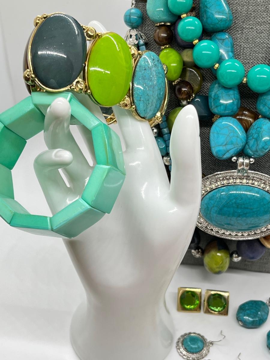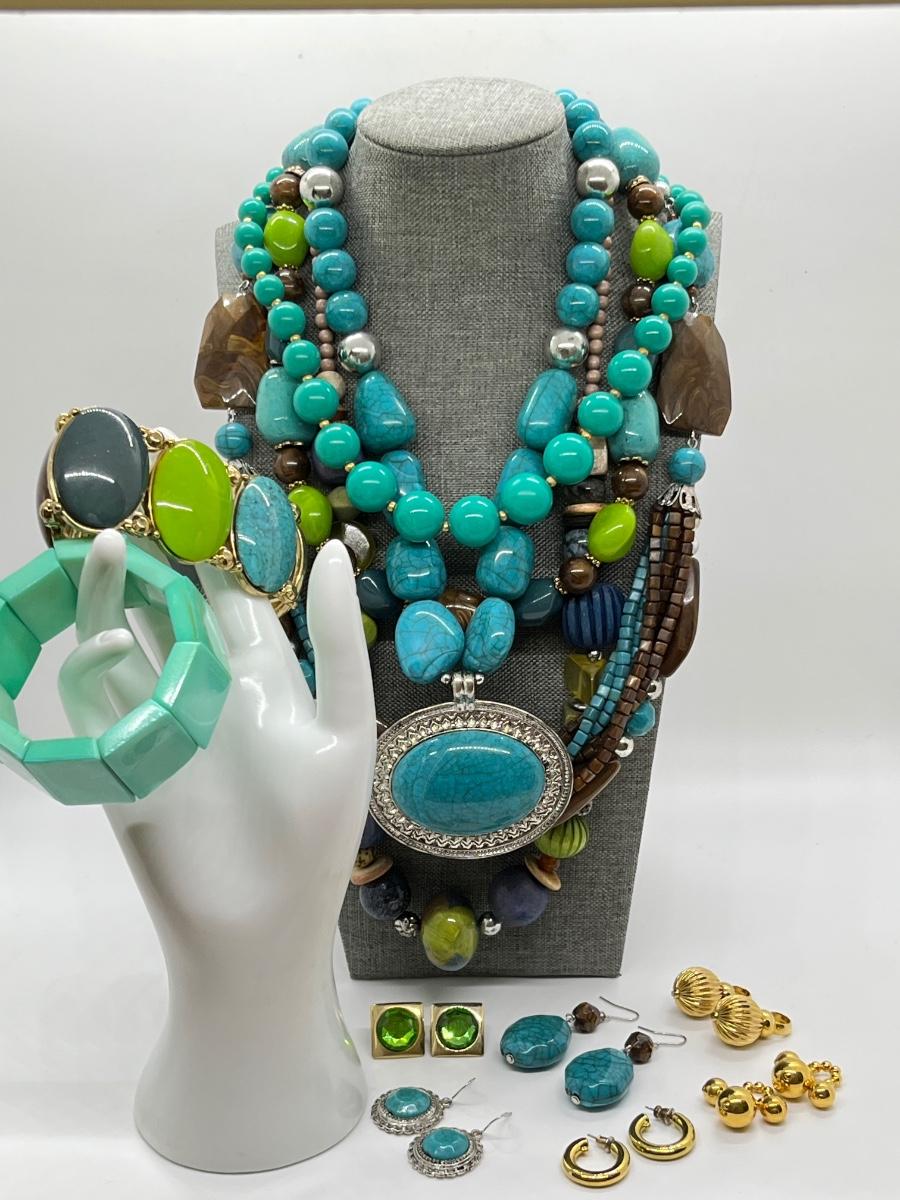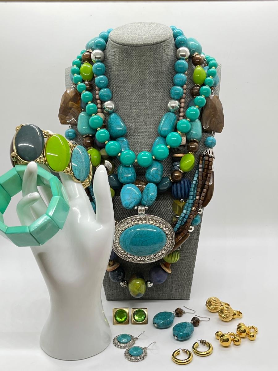 LOT 162J: Turqoise and Bright Green Necklaces, Bracelets and Earrings
