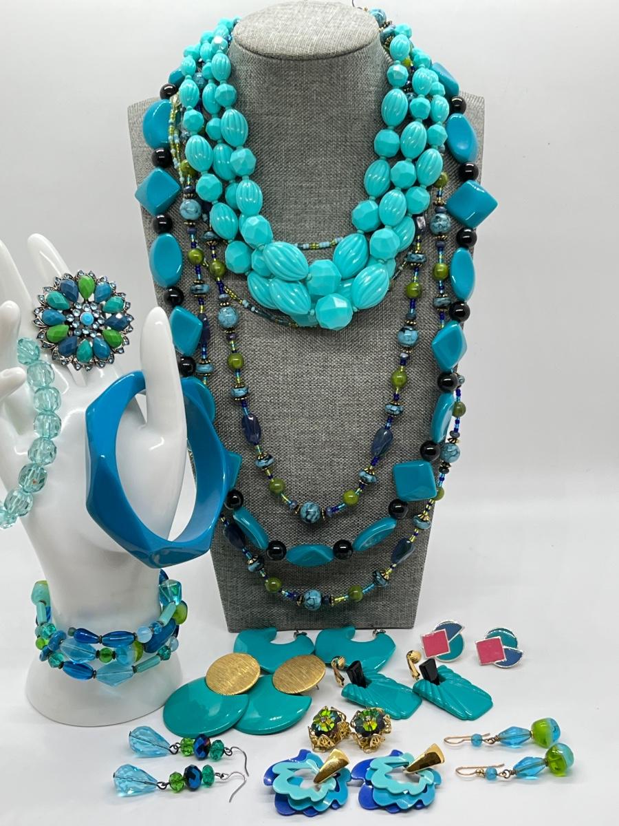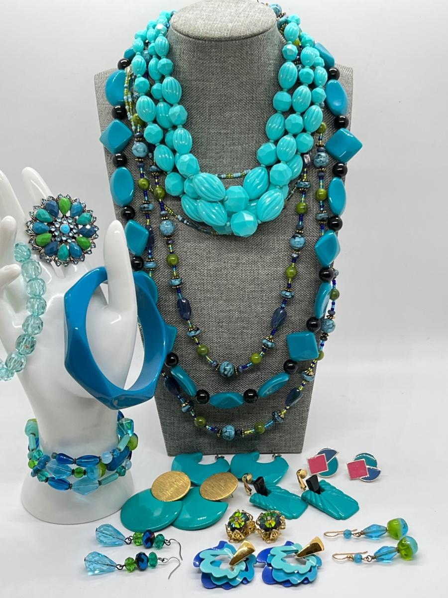 LOT 163J: Turquoise, Blue and Green Necklaces, Bracelets, Earrings and Ring