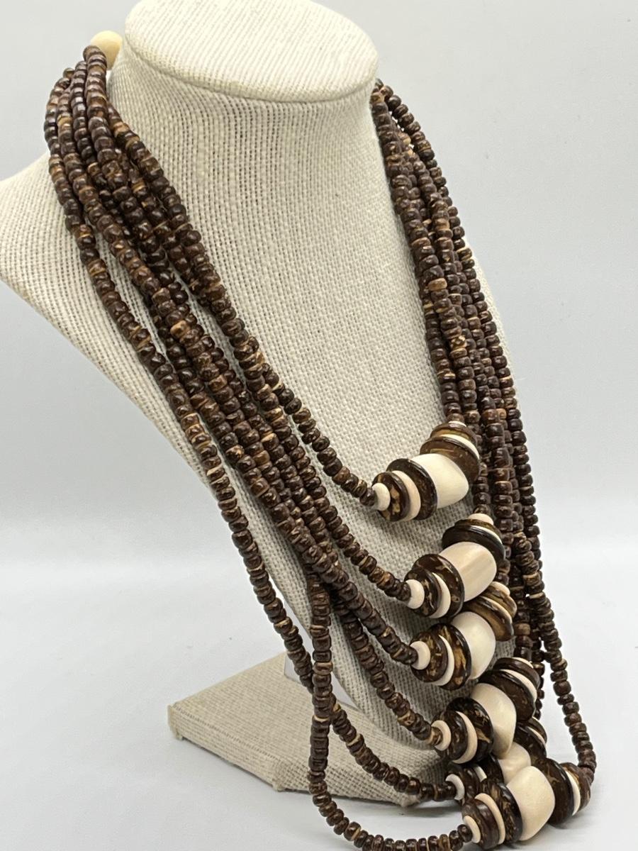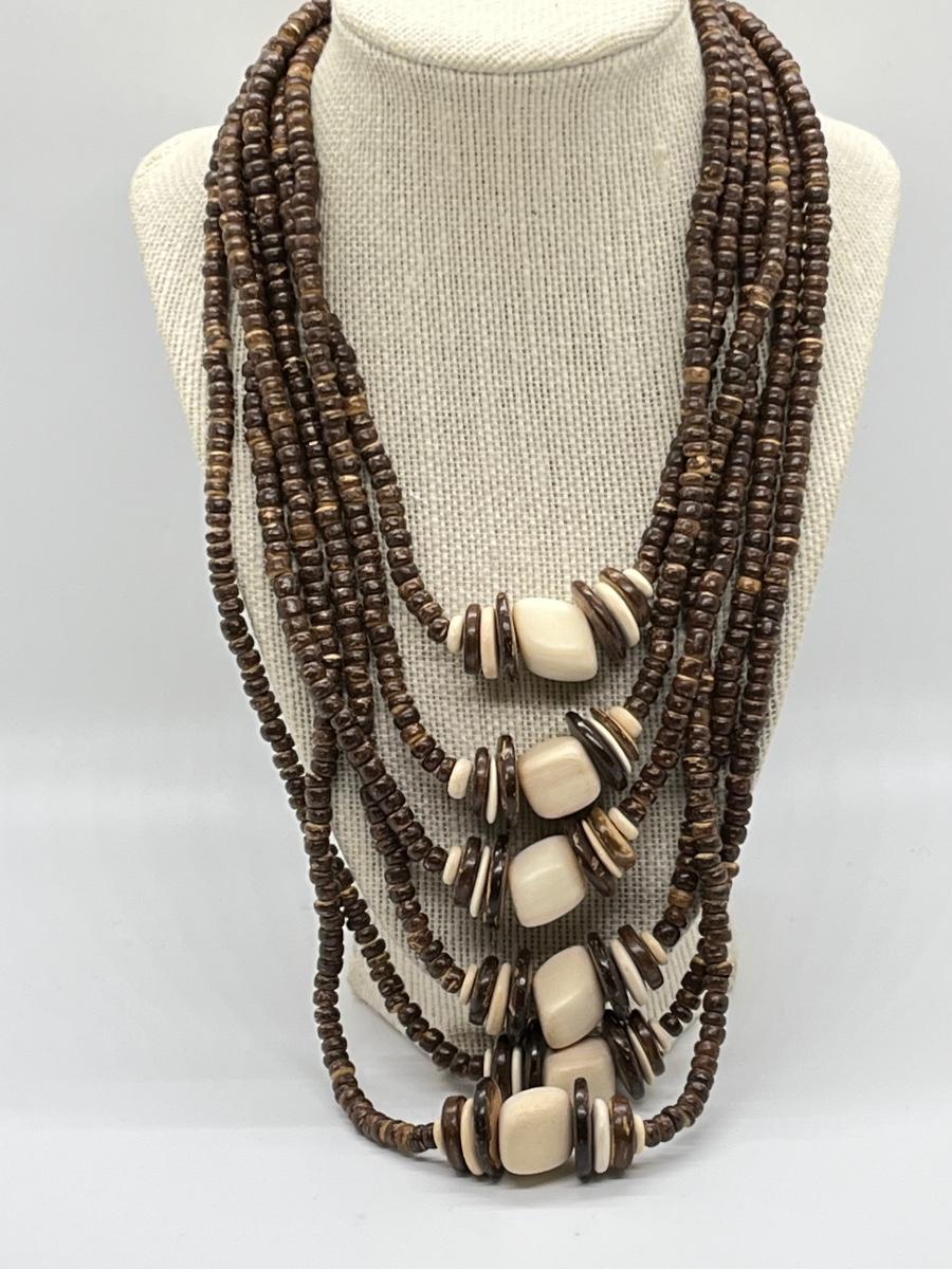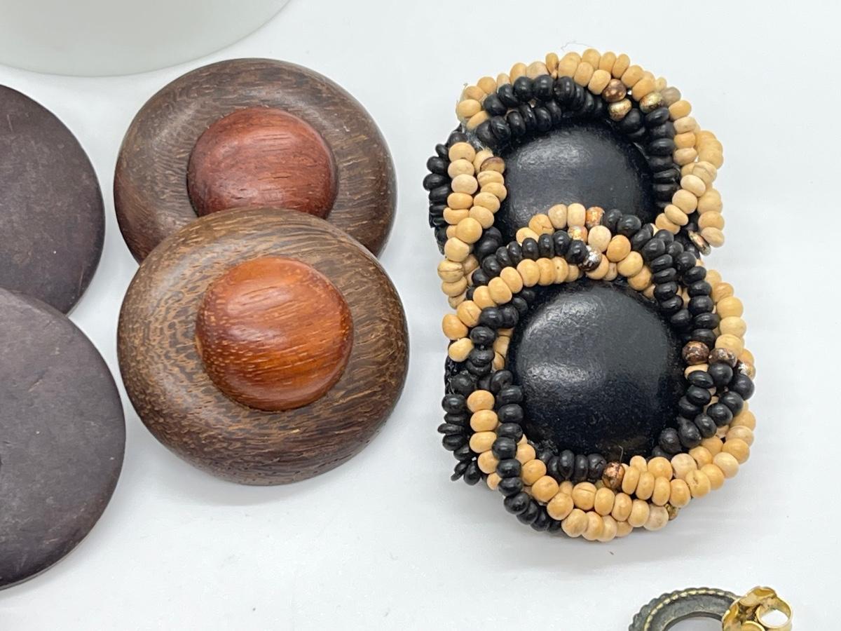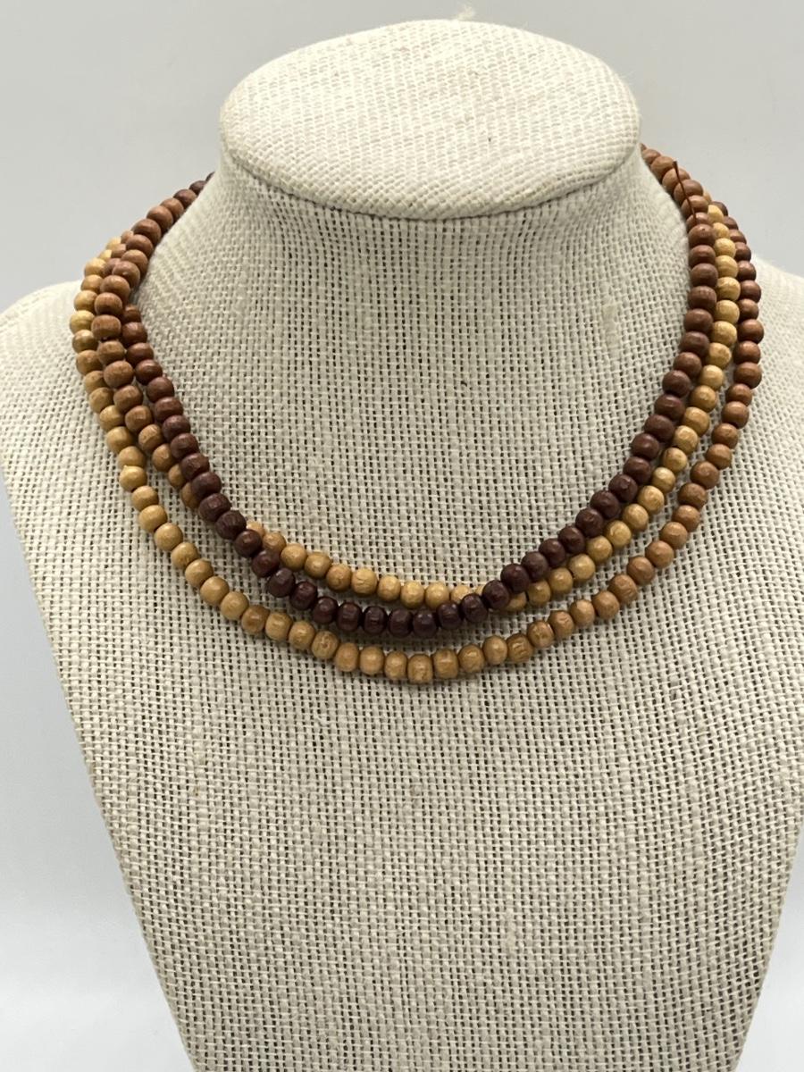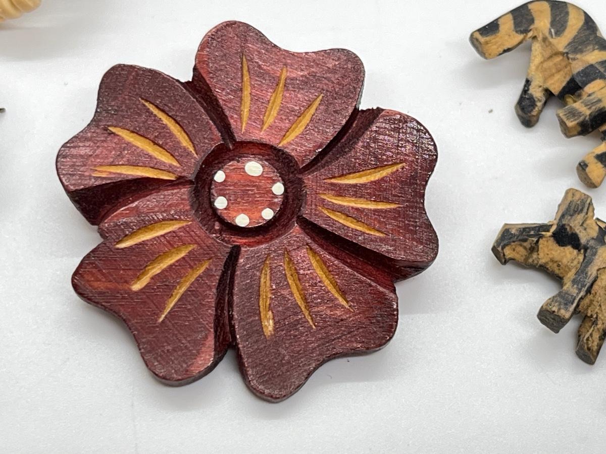 LOT 165J: Wood Beaded Brown Necklaces, Bracelets, Earrings, Belt and Floral Pin