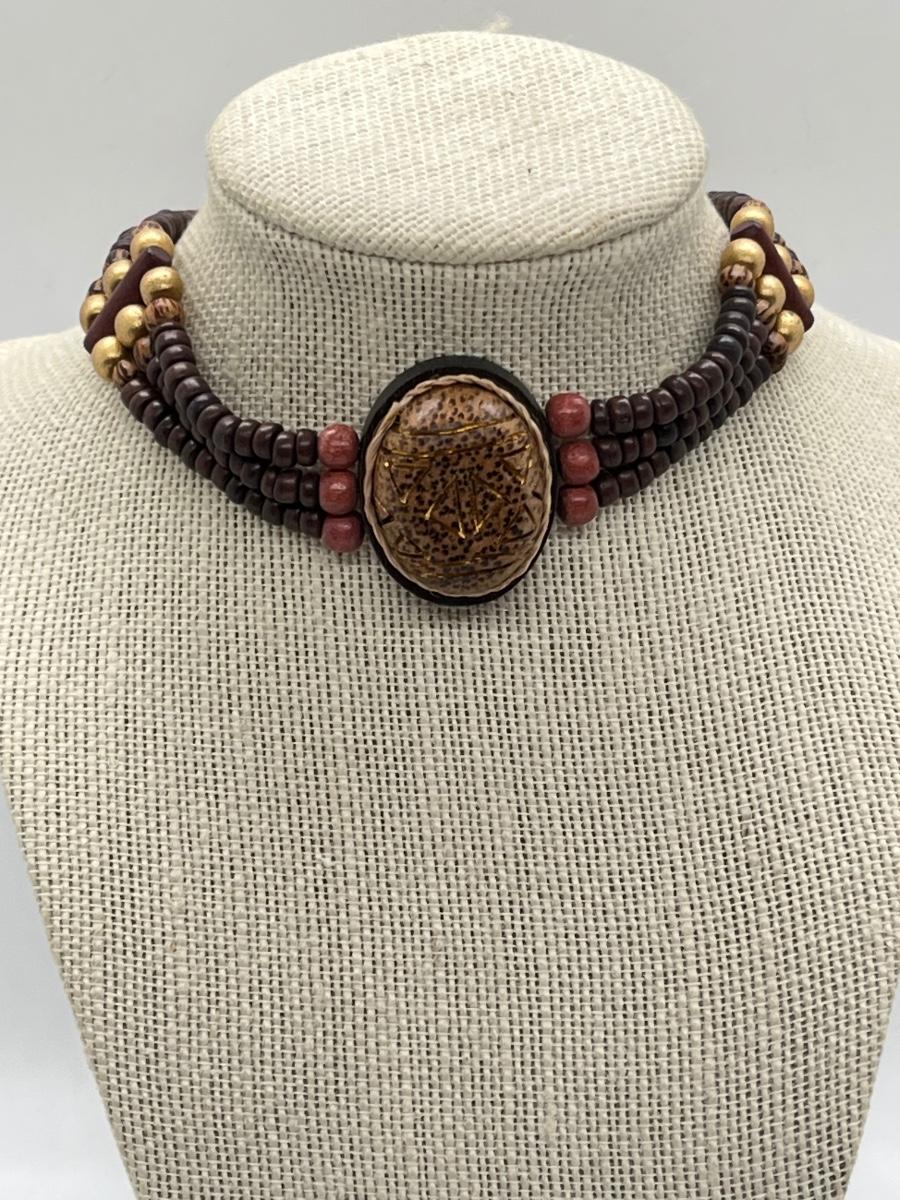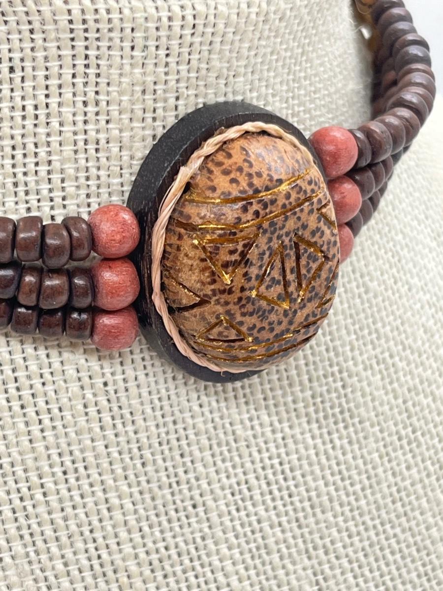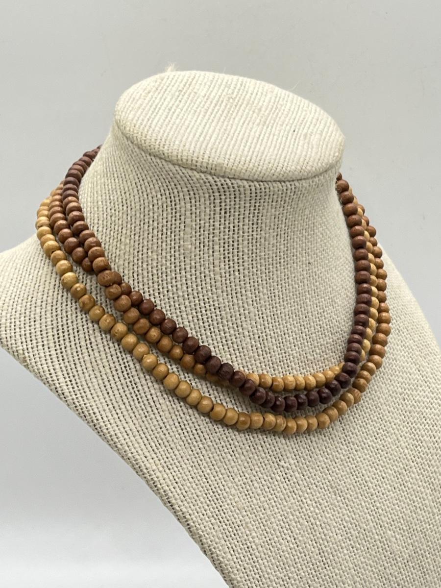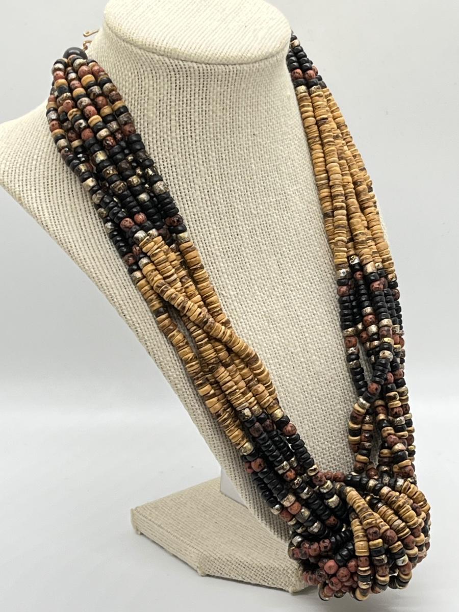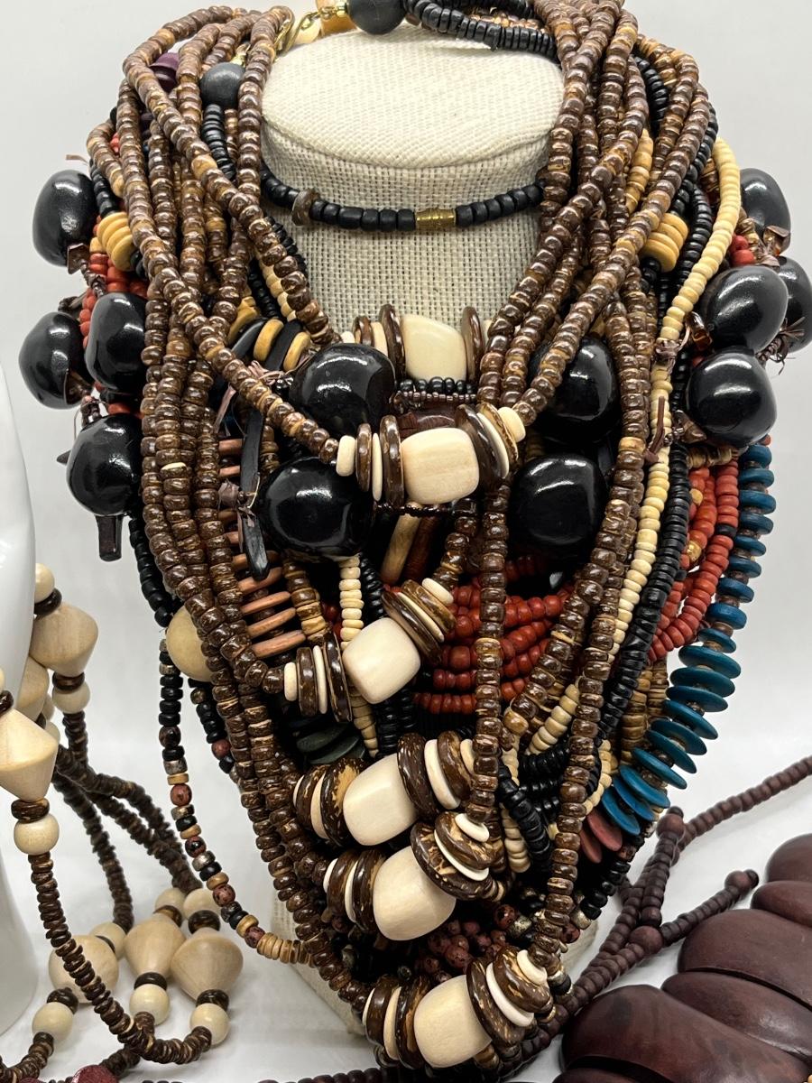 LOT 165J: Wood Beaded Brown Necklaces, Bracelets, Earrings, Belt and Floral Pin
