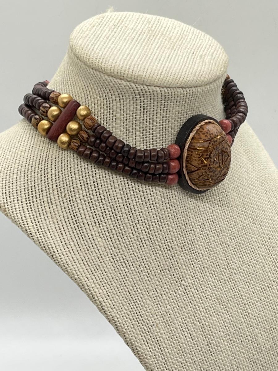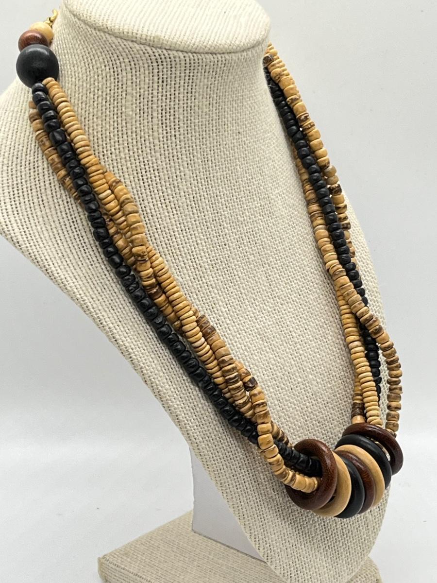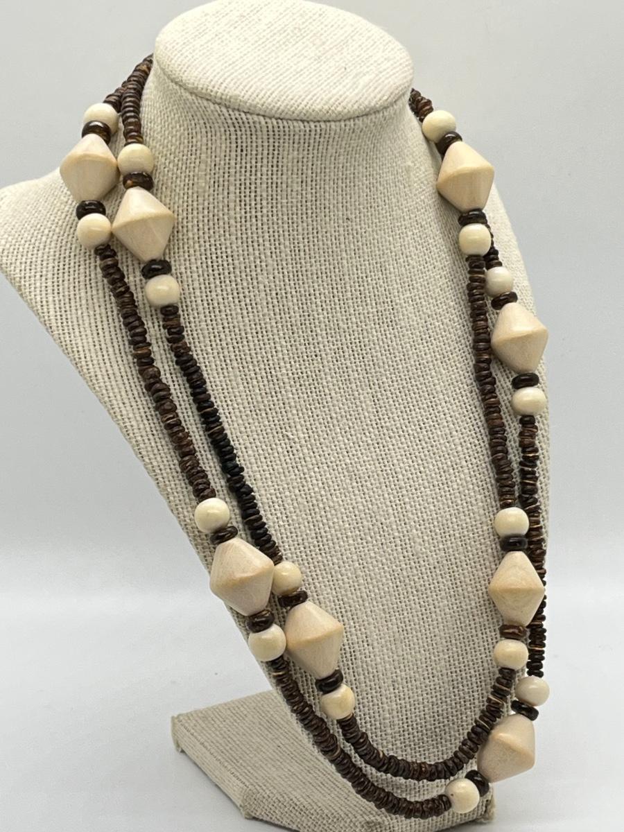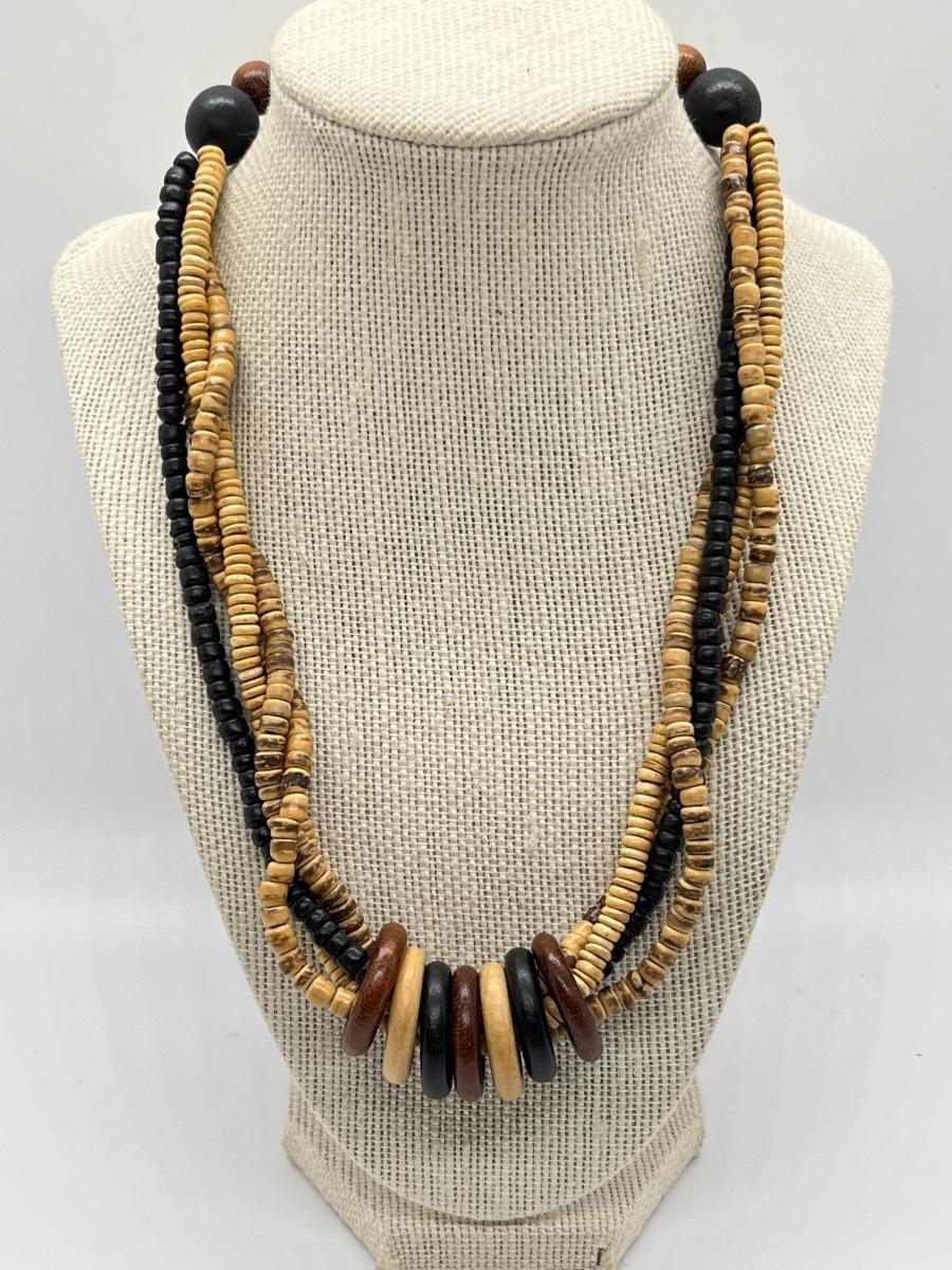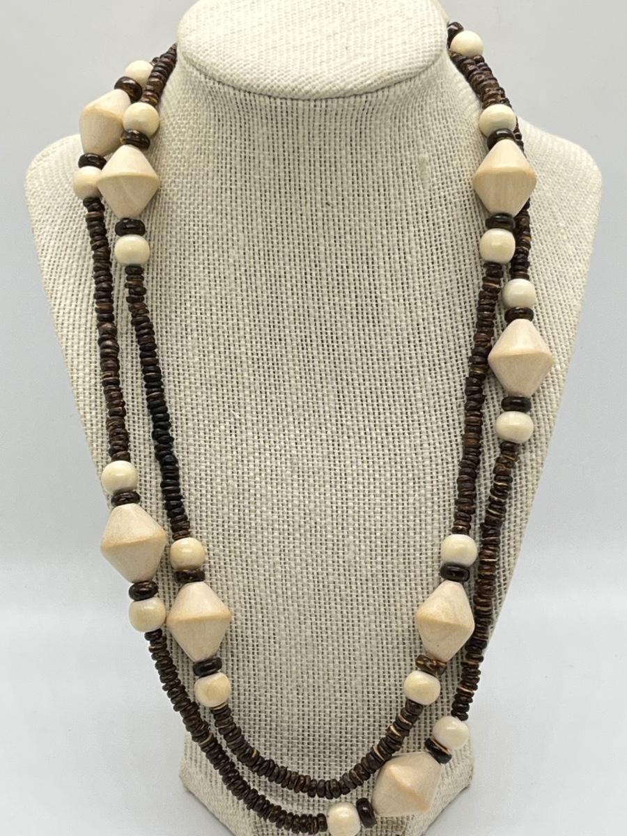 LOT 165J: Wood Beaded Brown Necklaces, Bracelets, Earrings, Belt and Floral Pin