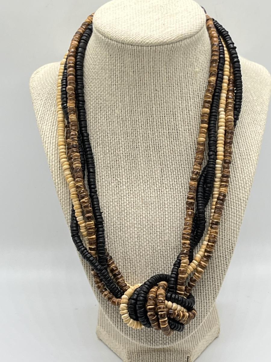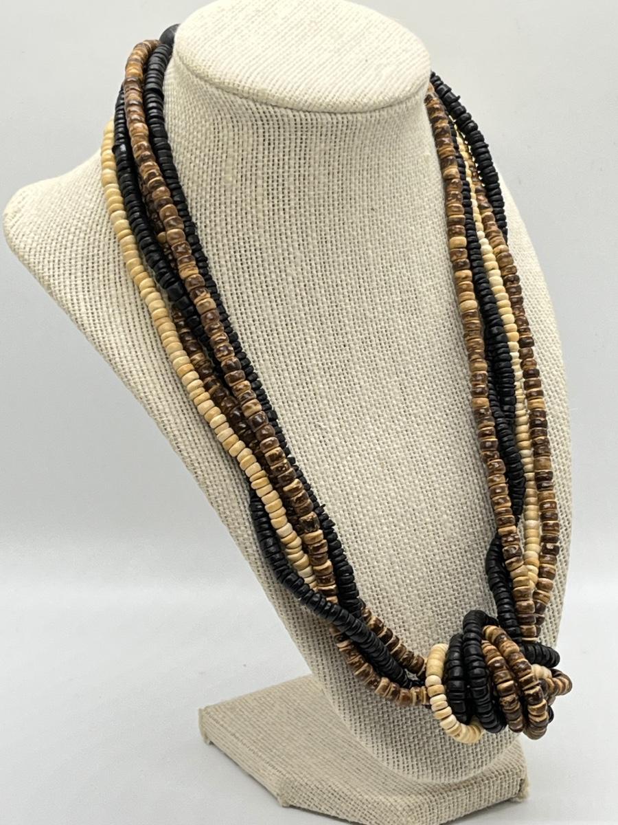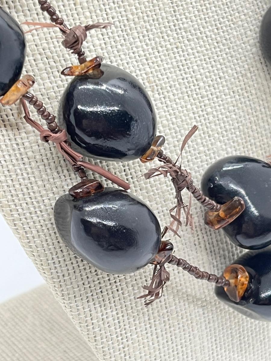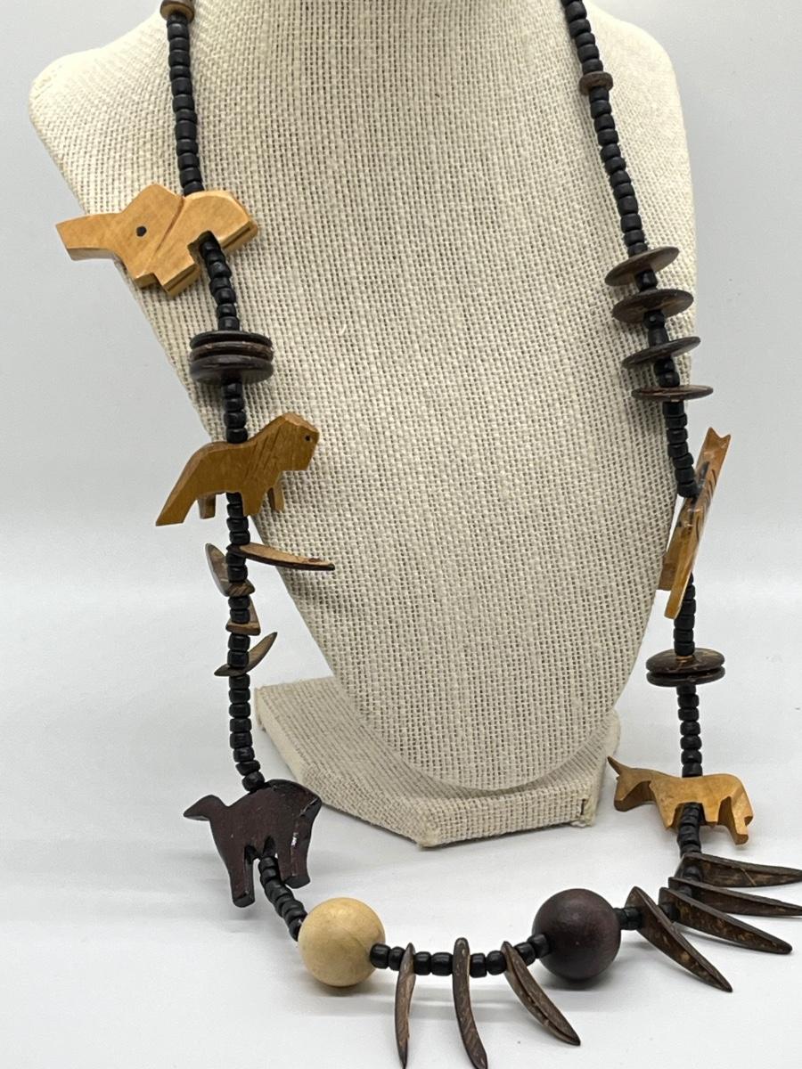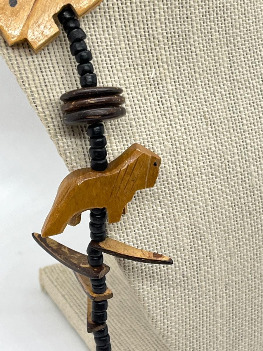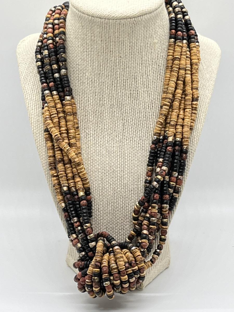 LOT 165J: Wood Beaded Brown Necklaces, Bracelets, Earrings, Belt and Floral Pin