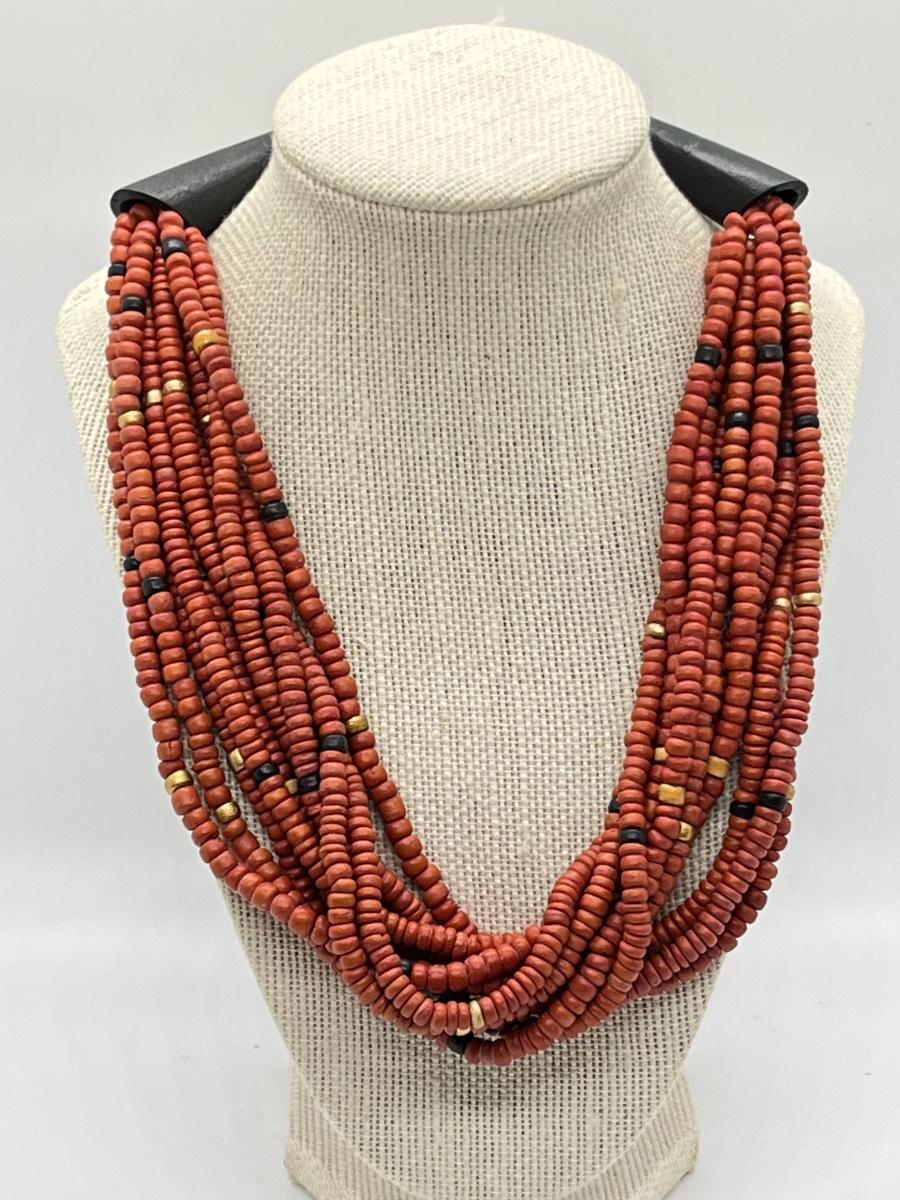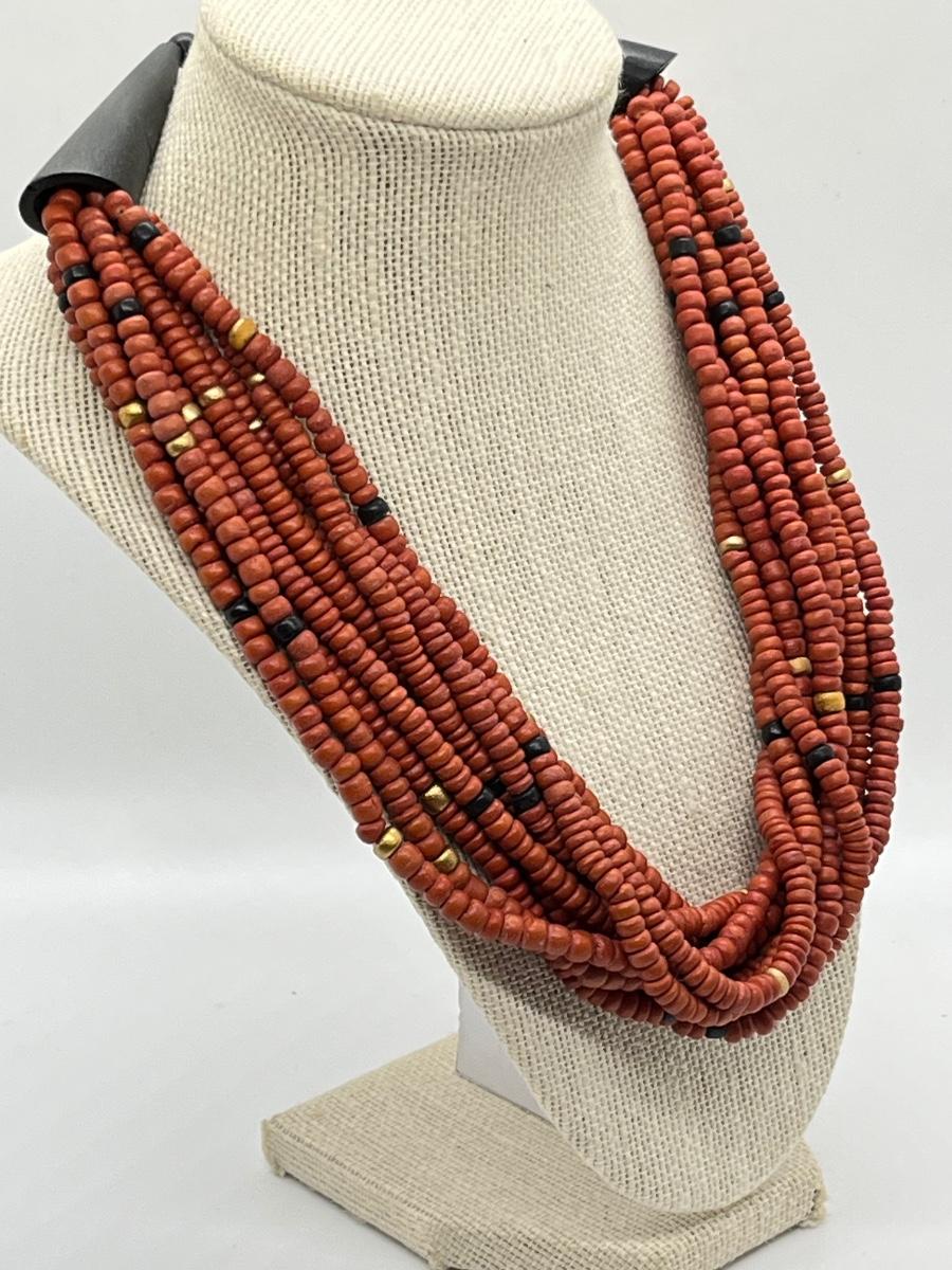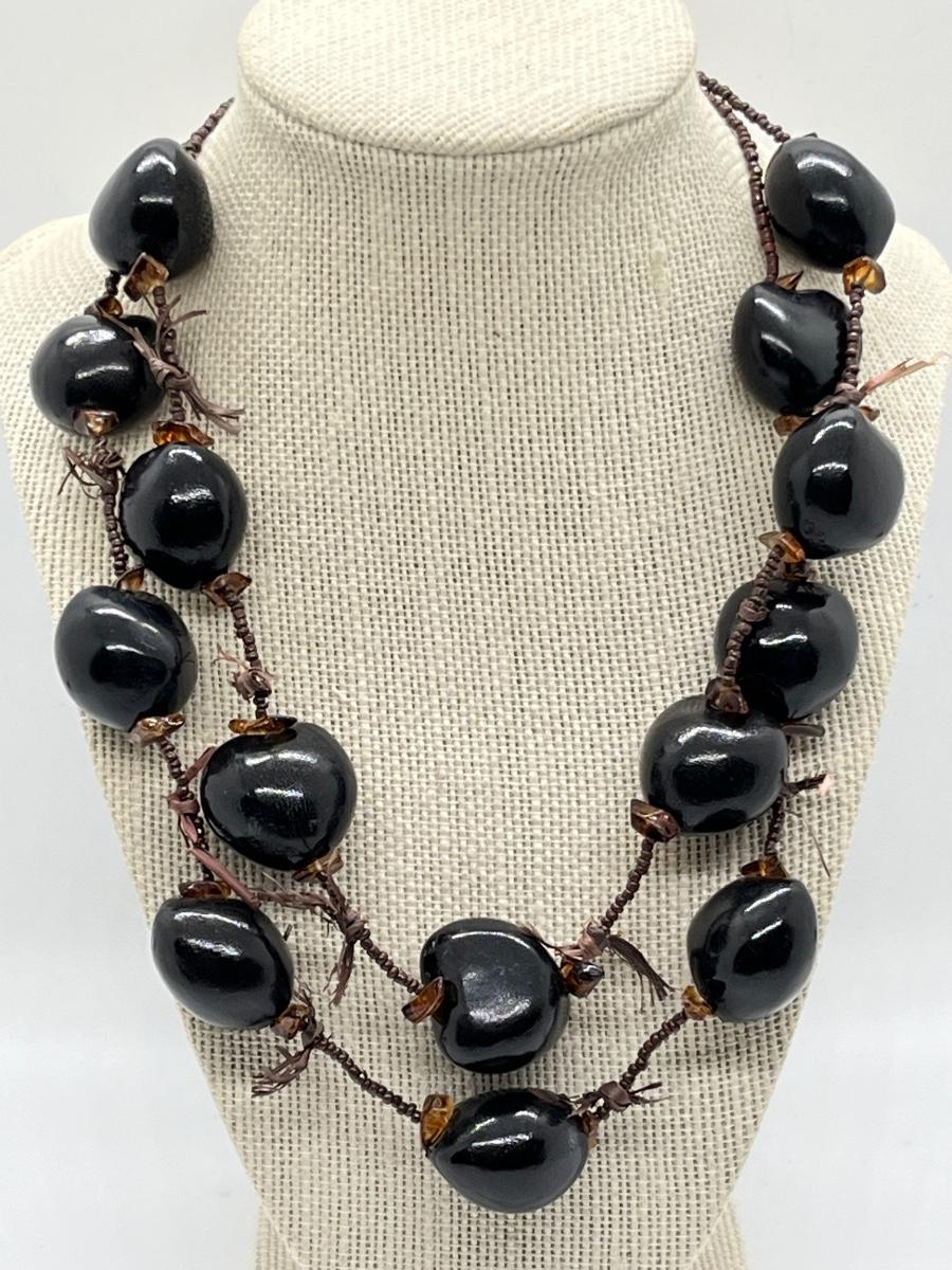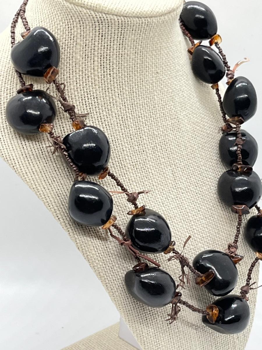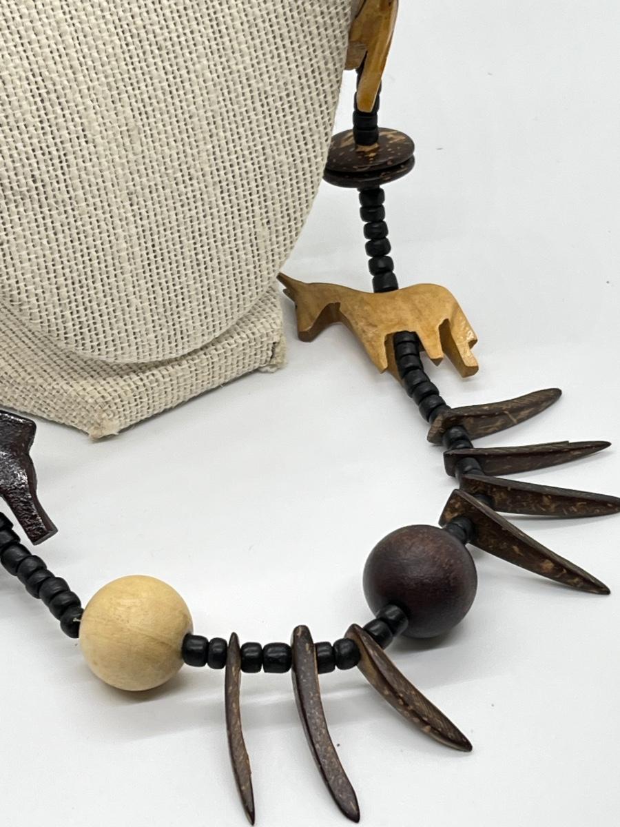 LOT 165J: Wood Beaded Brown Necklaces, Bracelets, Earrings, Belt and Floral Pin