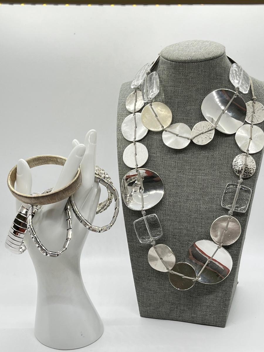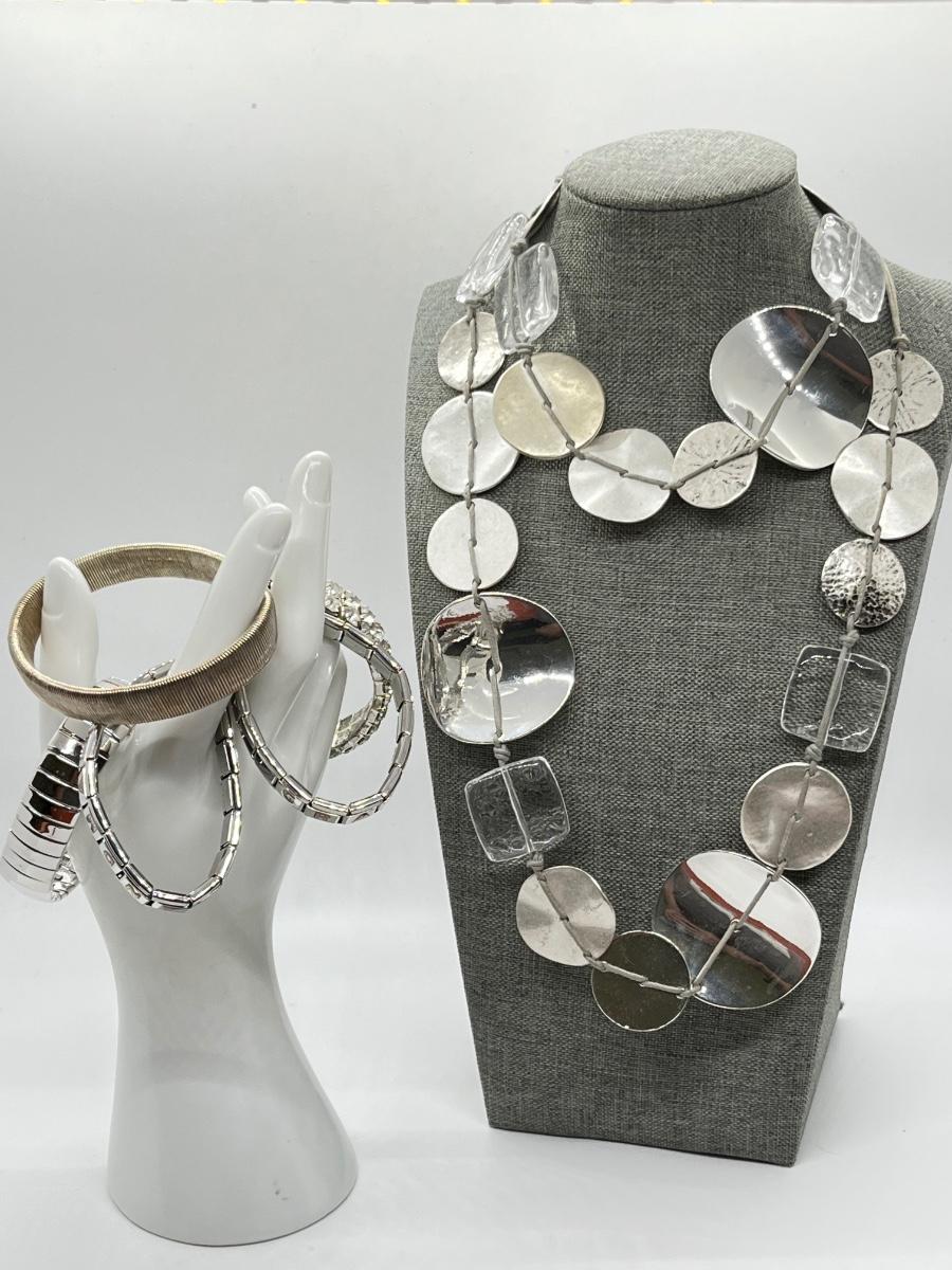 LOT 168: "Grandma" Expansion Bracelets made in Italy, Chico's Necklace and Other Bracelets including a Monet Link Bracelet