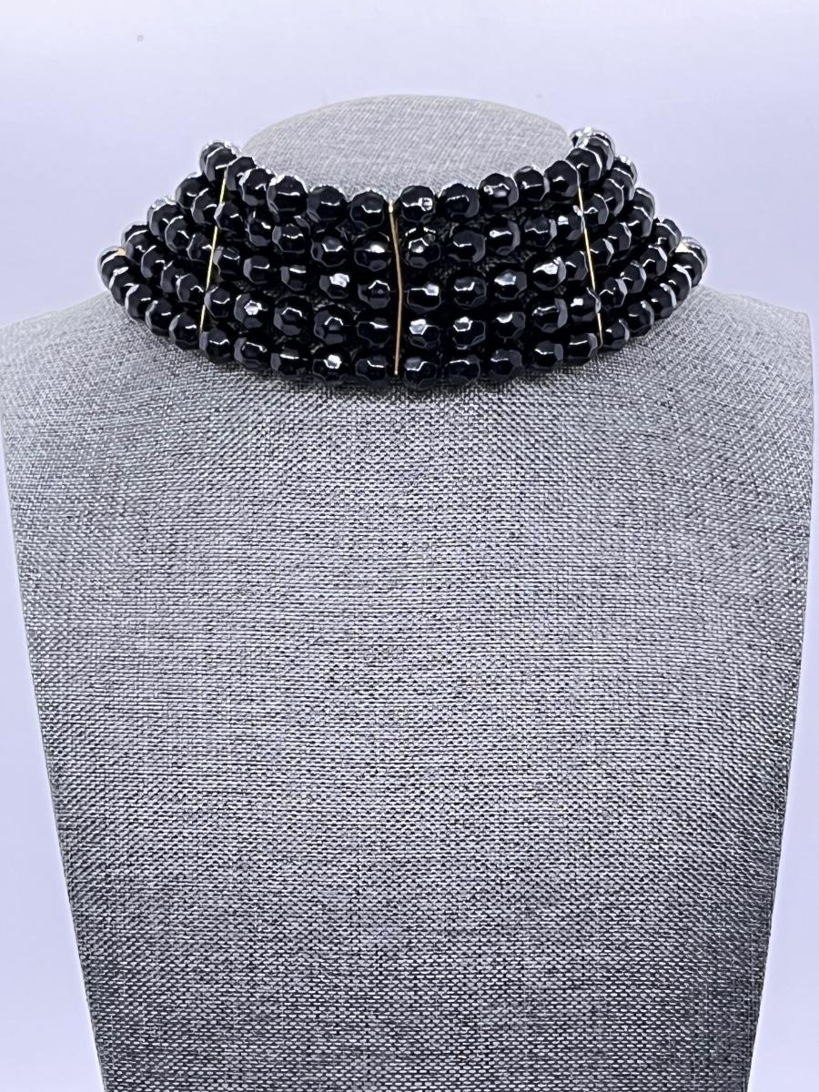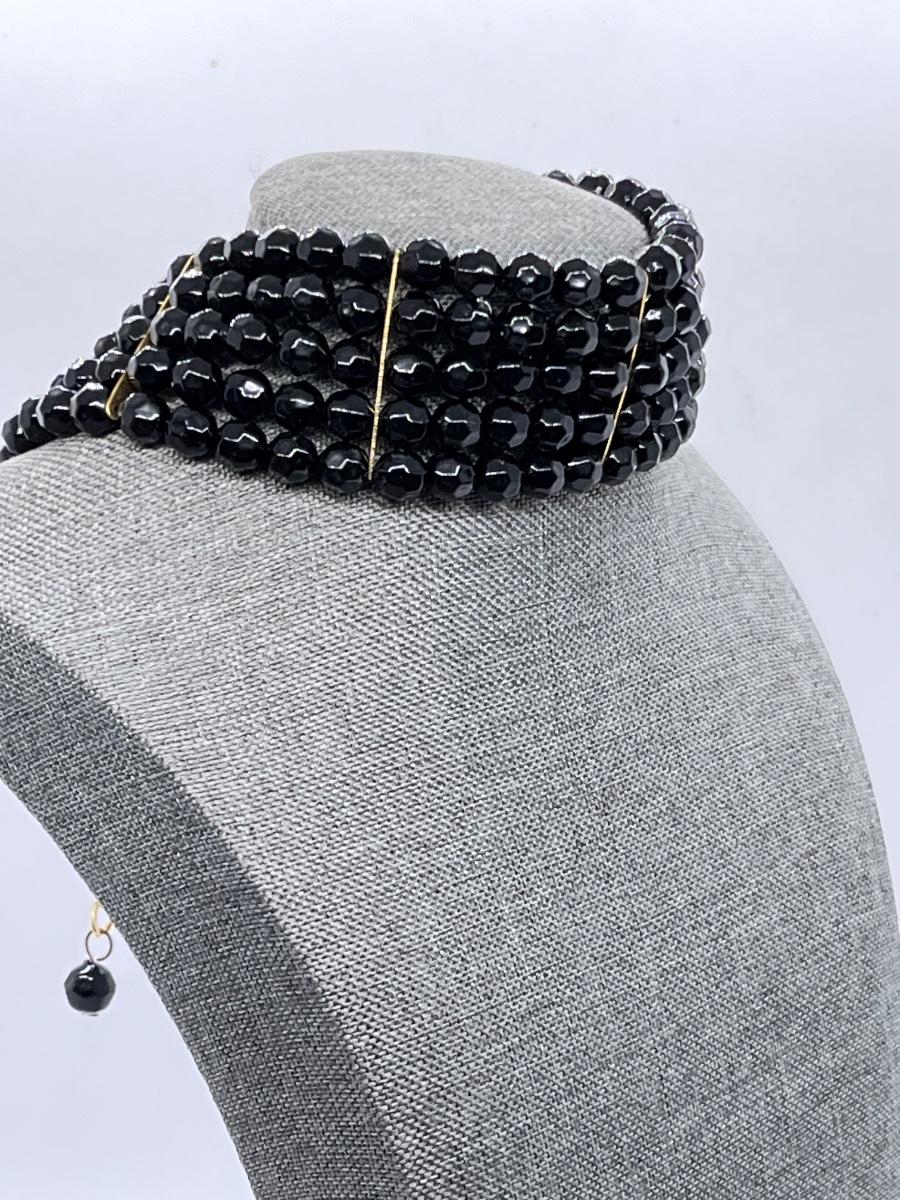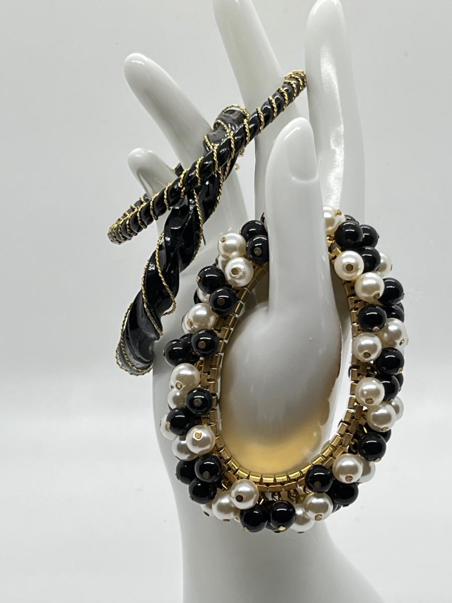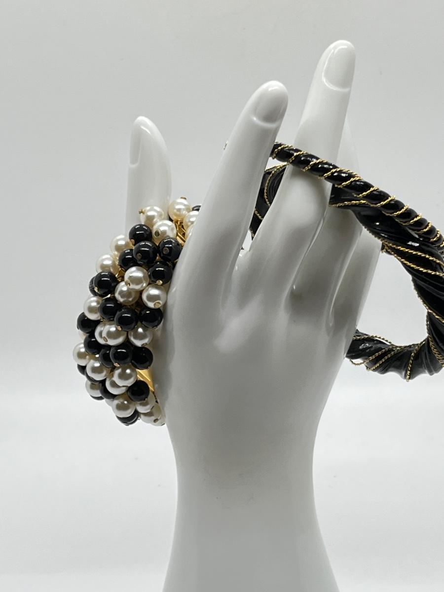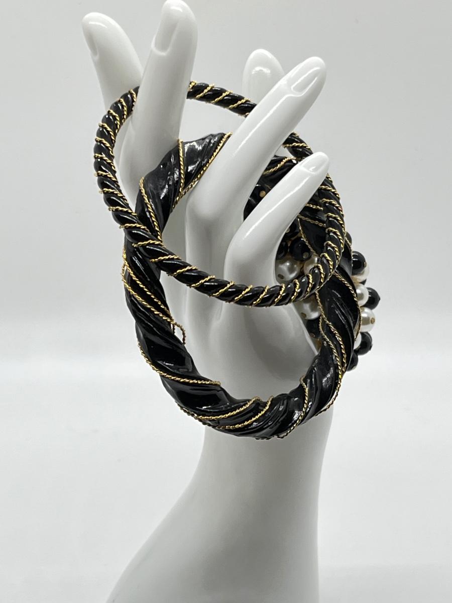 LOT 169J: Black and Gold Chokers, Clamper Bracelet, Expandable Beaded Bracelet and Bangle Earrings...Kenneth Jay Lane, Monet, Cloissone and More