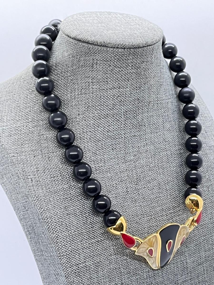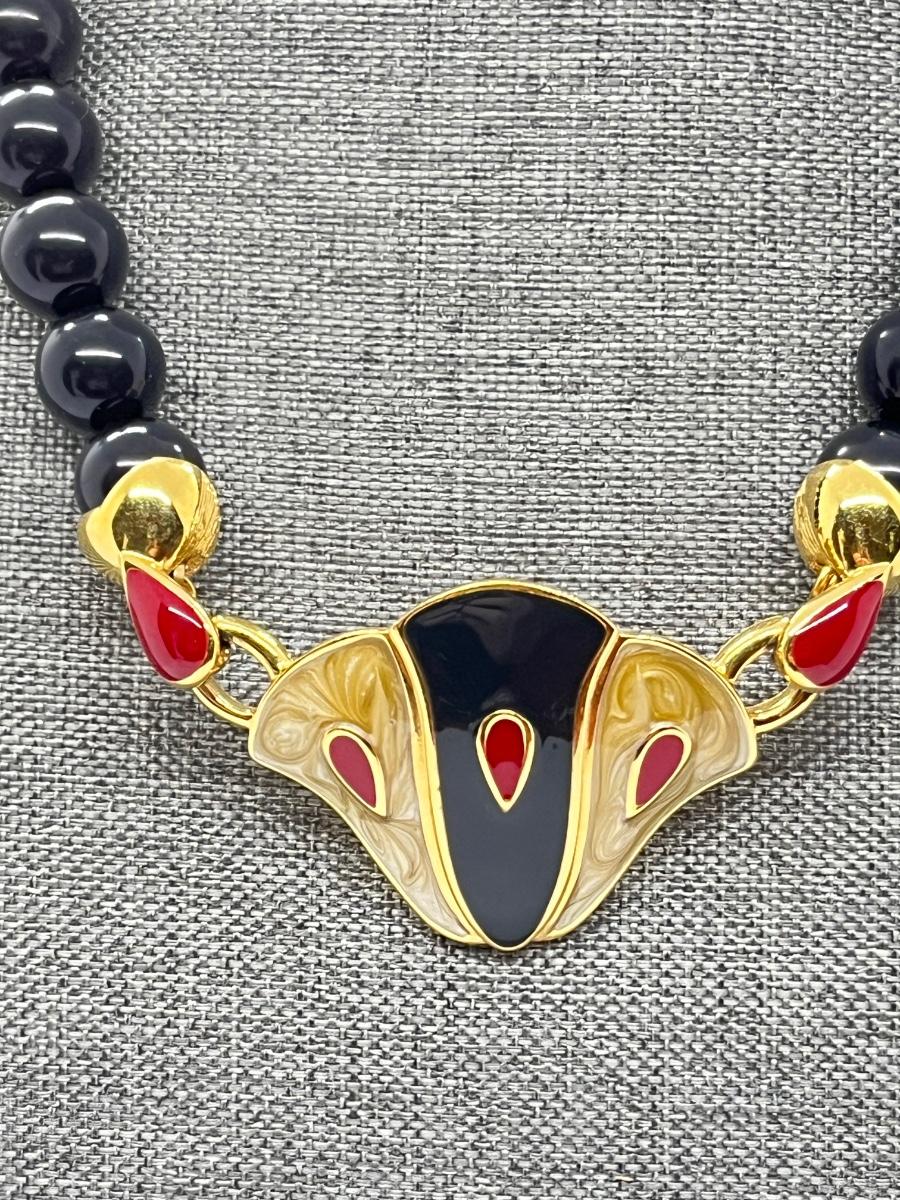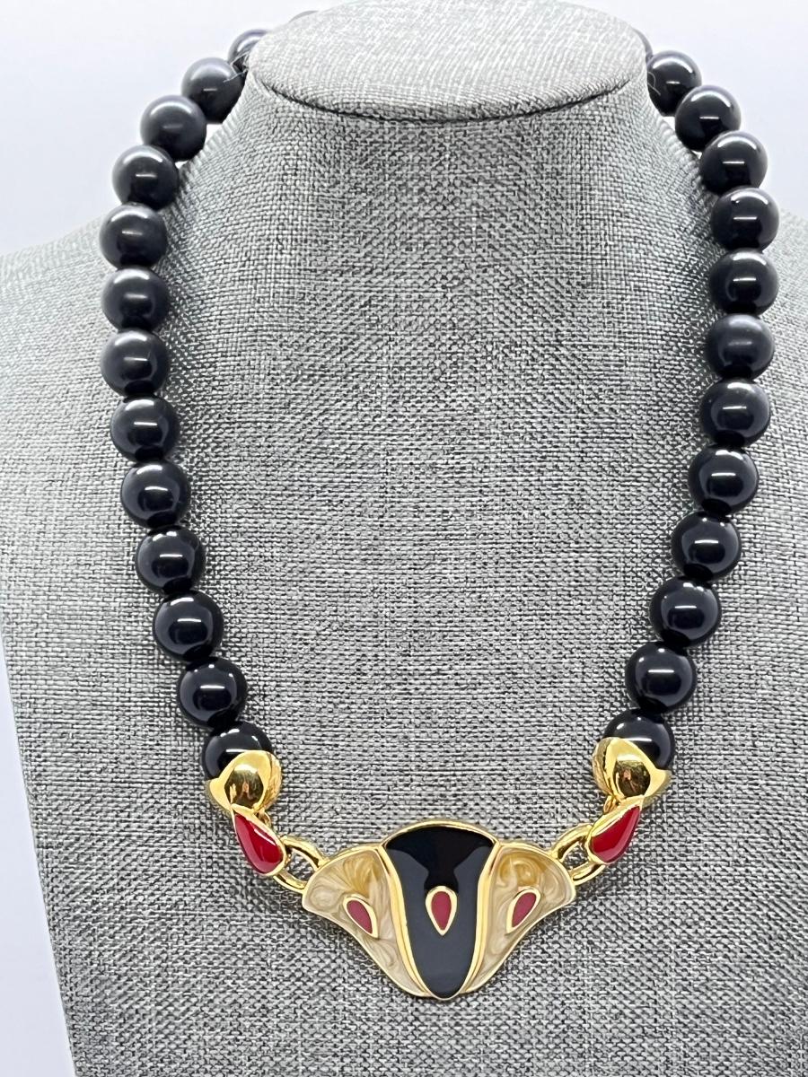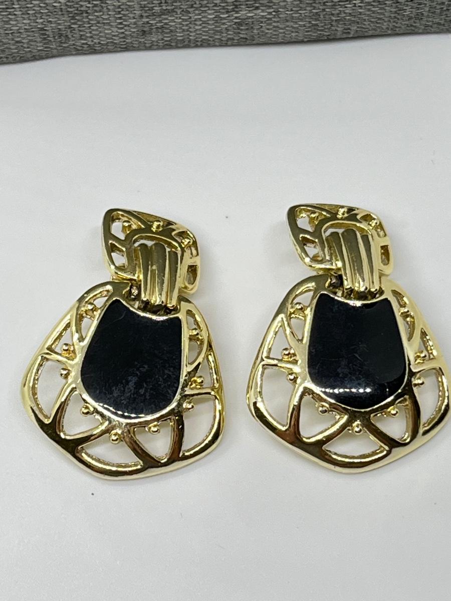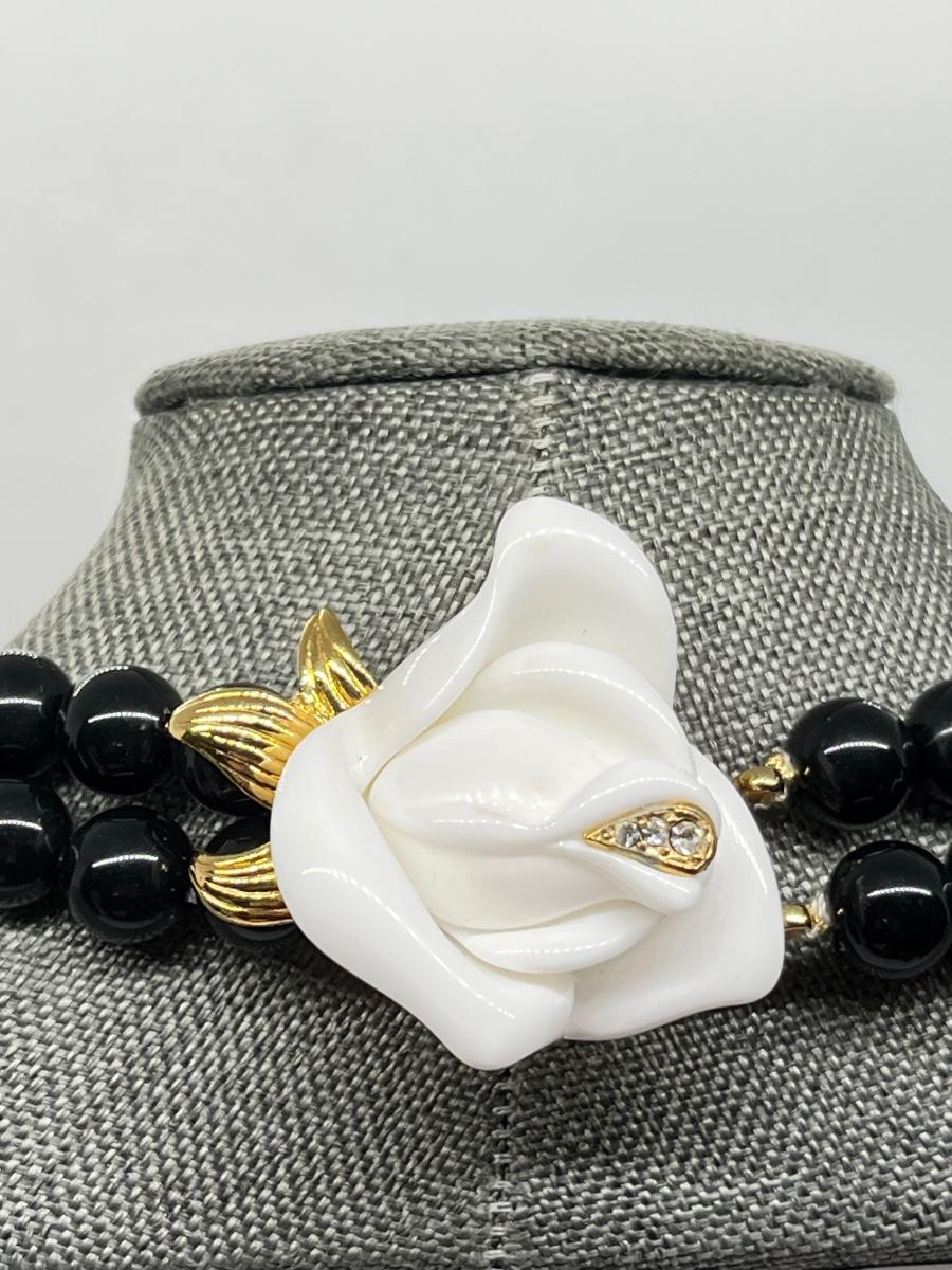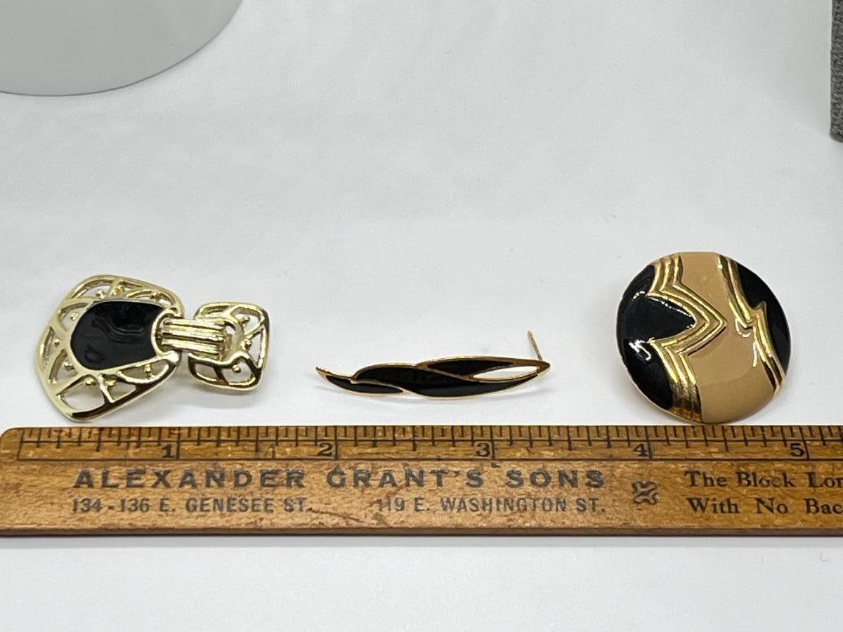 LOT 169J: Black and Gold Chokers, Clamper Bracelet, Expandable Beaded Bracelet and Bangle Earrings...Kenneth Jay Lane, Monet, Cloissone and More