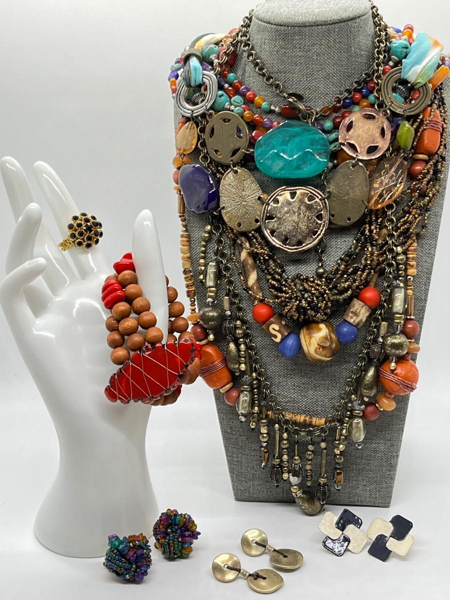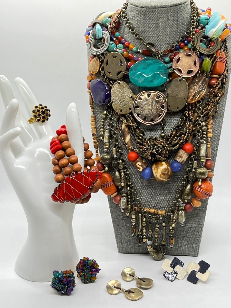 LOT 170J: Unique, Colorful, Chunky, "Statement Piece" Necklaces, Wooden Bracelet, Ring and Earrings