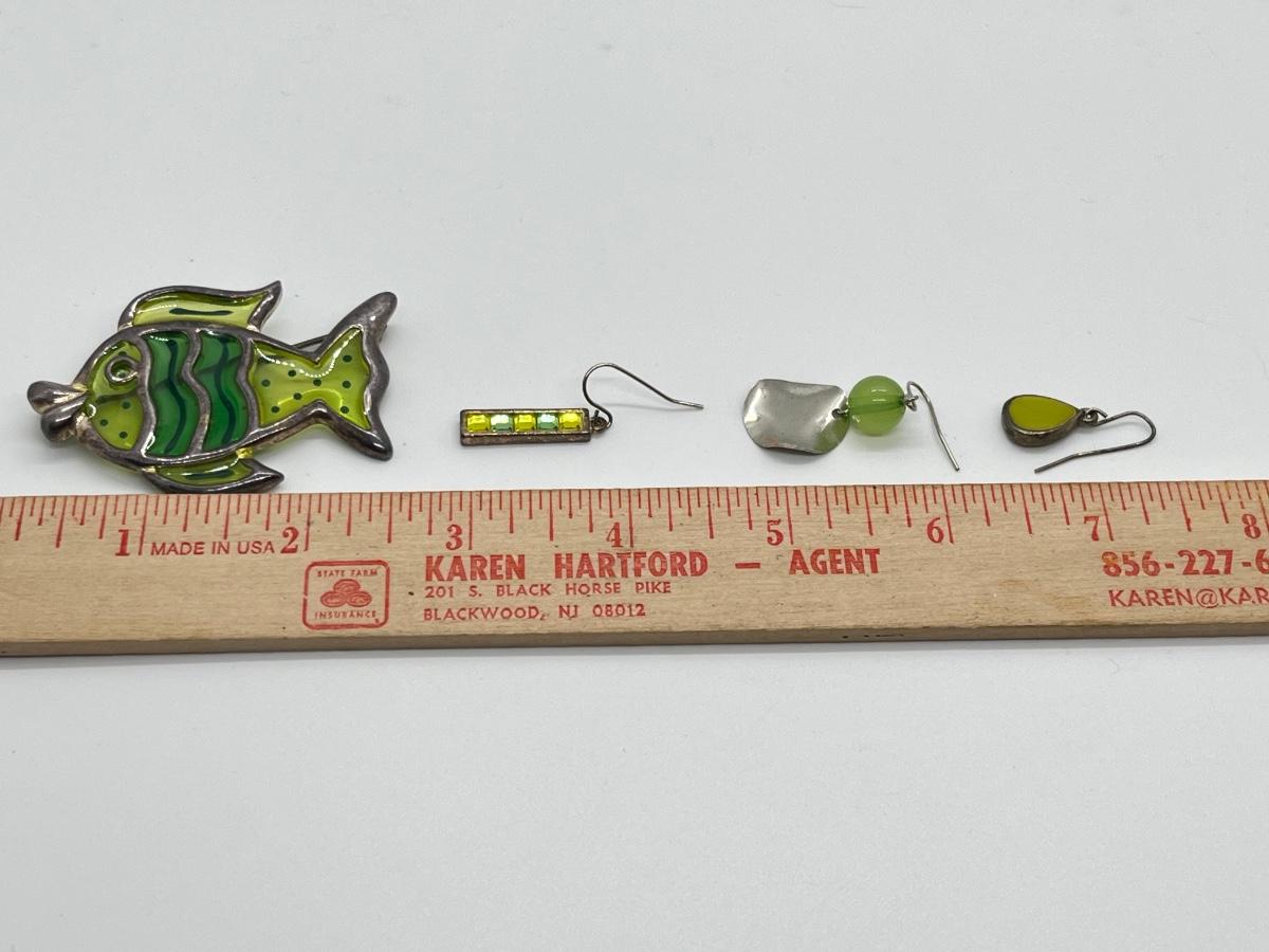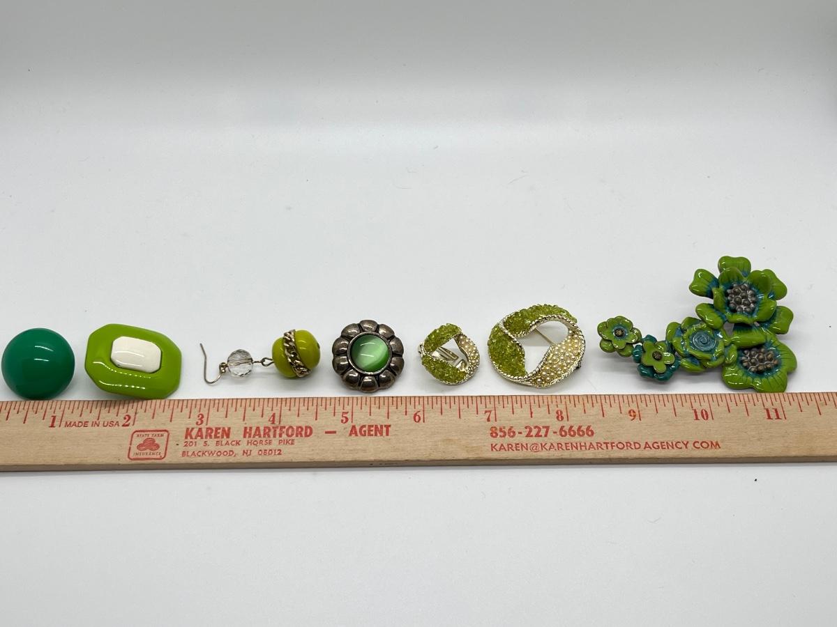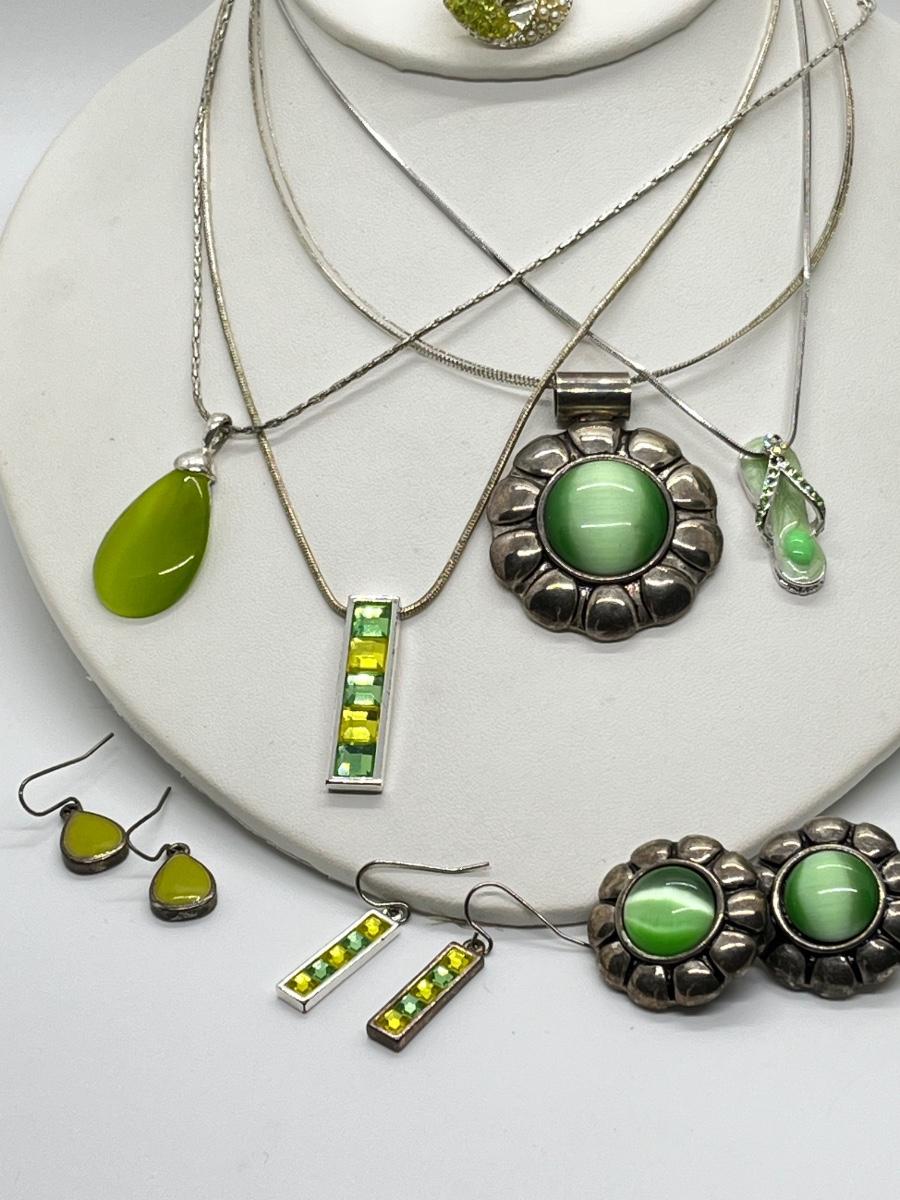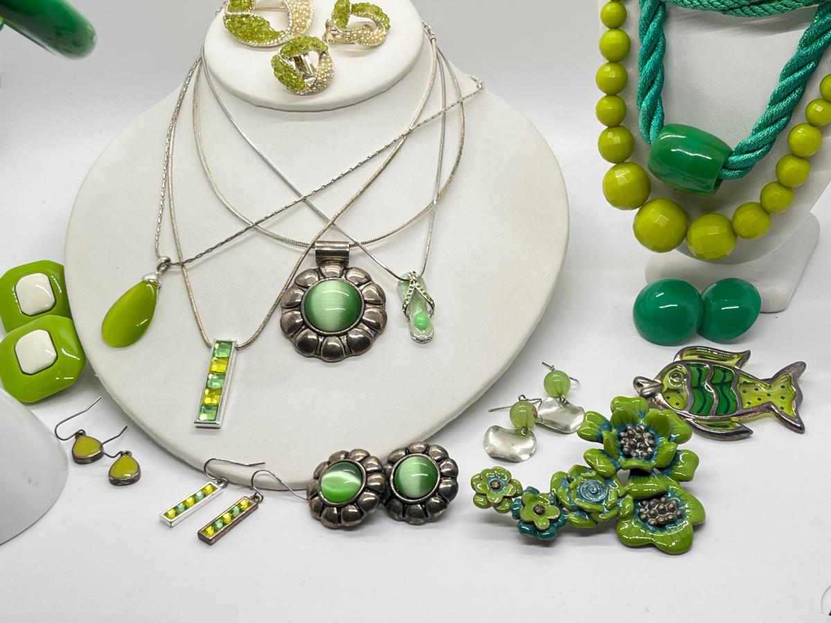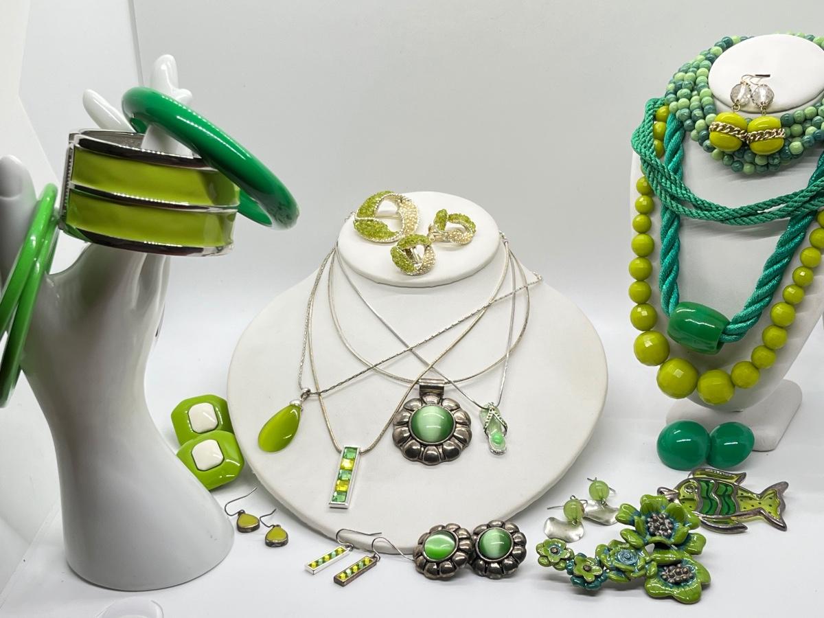 LOT 171J: Bright Green Necklaces, Bracelets, Earrings and Pins...Includes Multiple Matching Sets