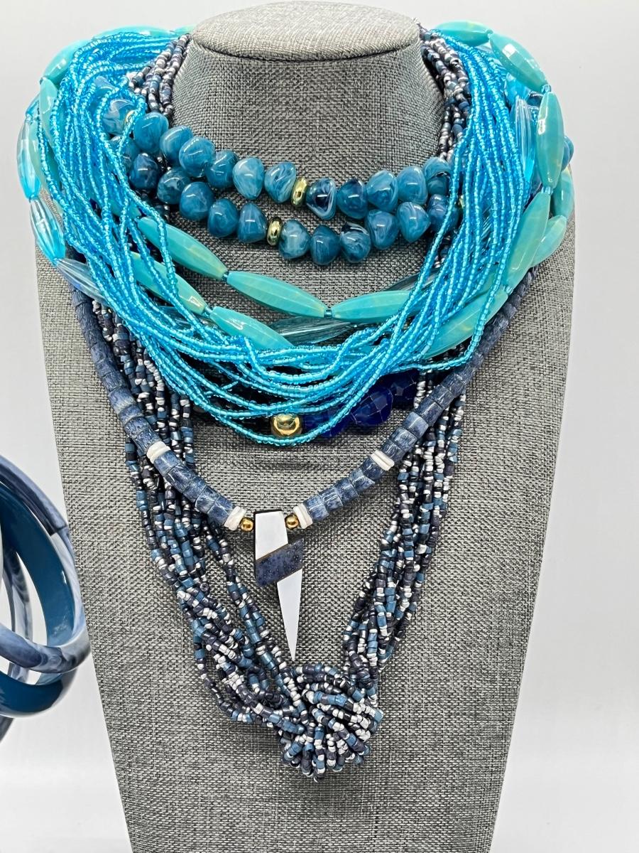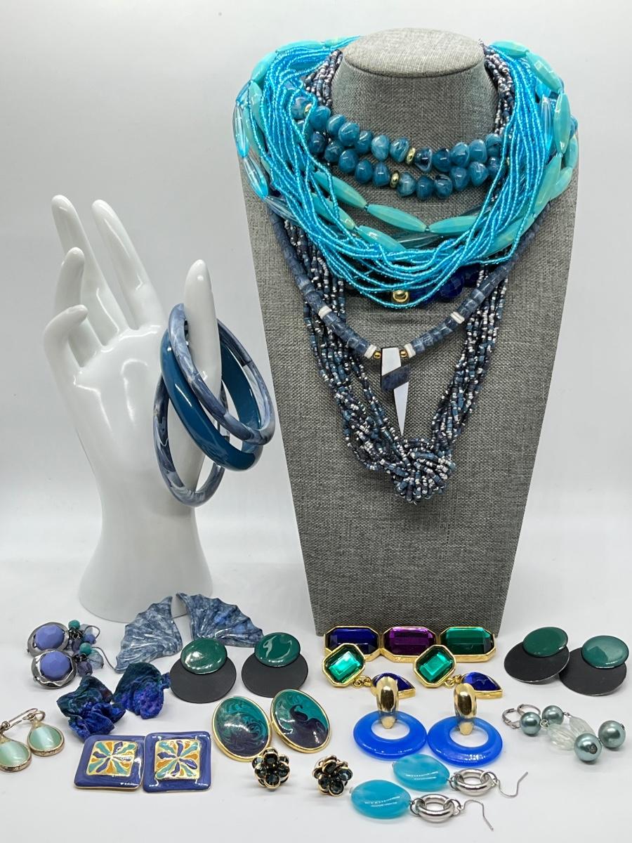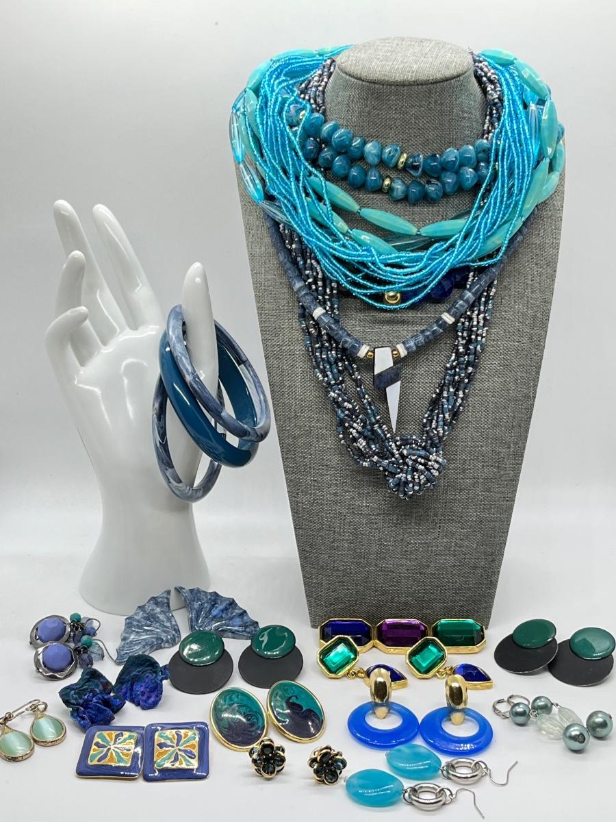 LOT 172J: Turquoise and Blue Neclaces, Bracelets and Earrings and Faux Gemstone Pin with Matching Earrings