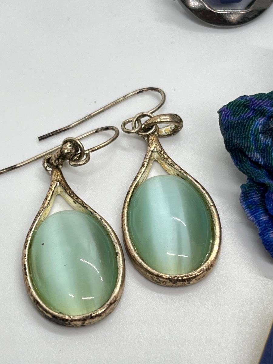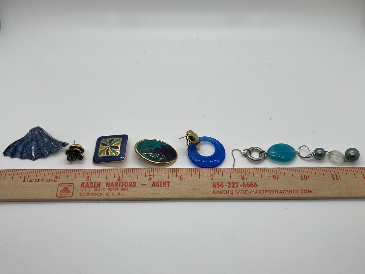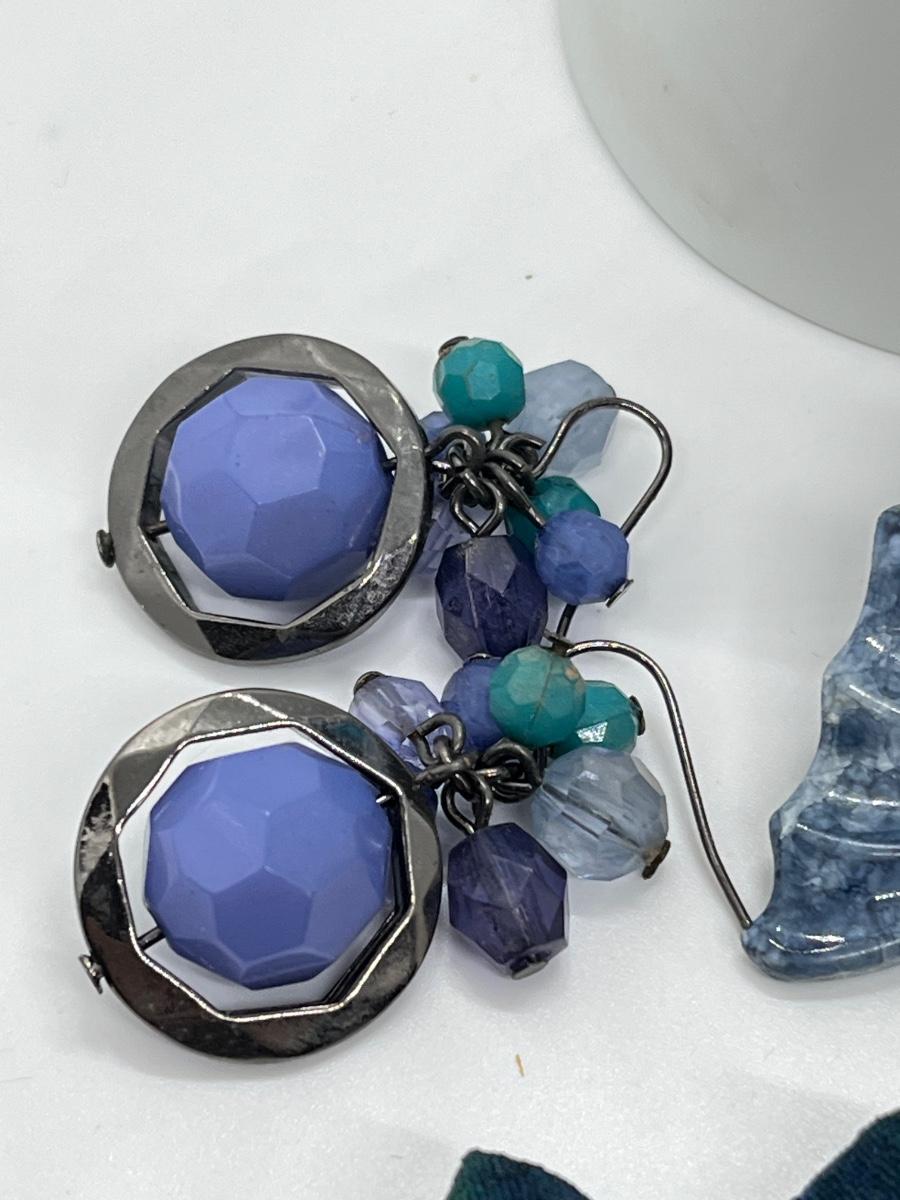 LOT 172J: Turquoise and Blue Neclaces, Bracelets and Earrings and Faux Gemstone Pin with Matching Earrings