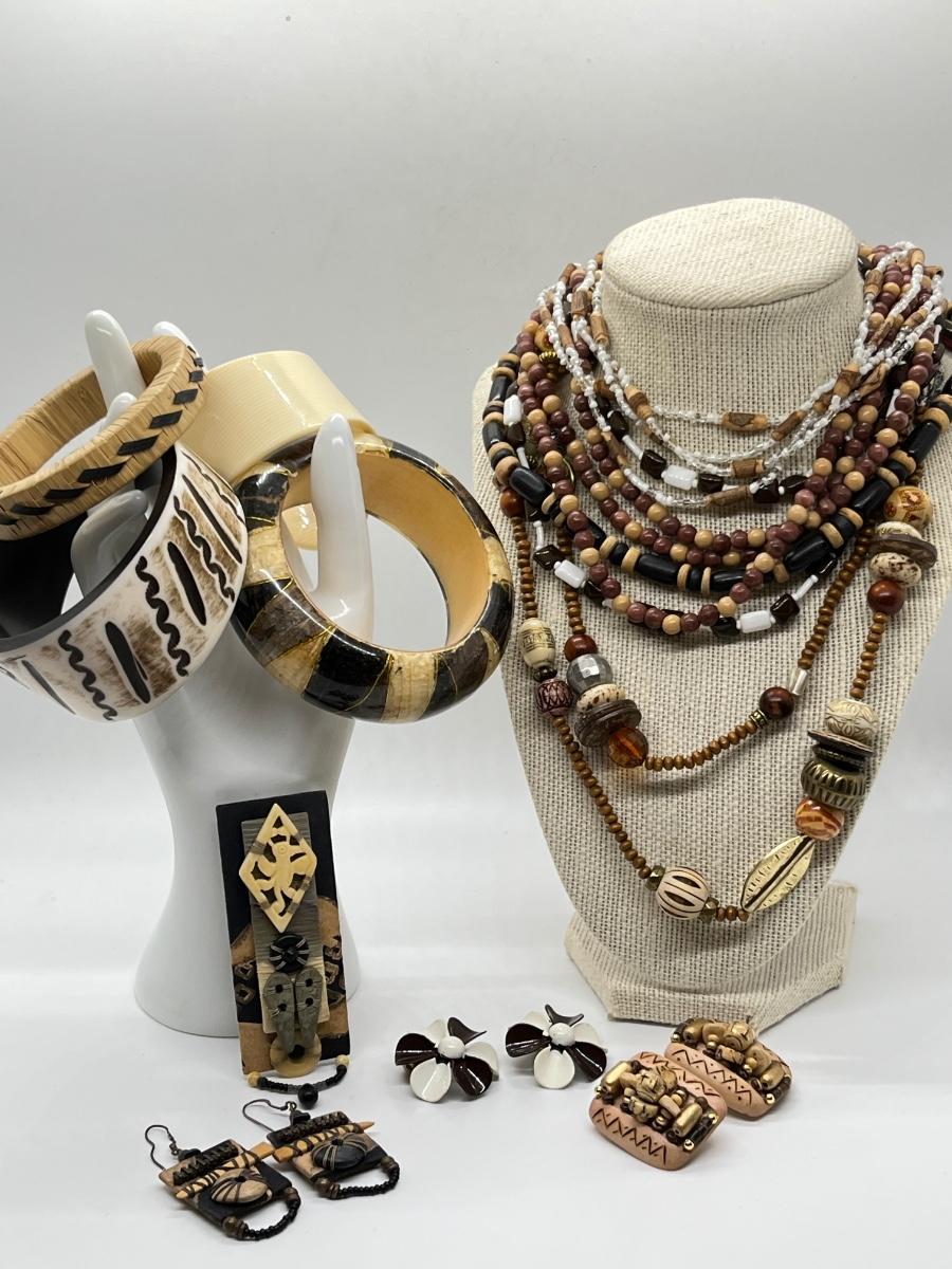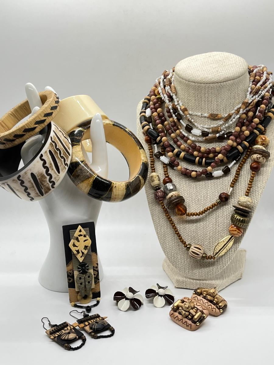 LOT 173J: Brown Colored Necklaces, Bracelets, Pendant and Earrings with Some Unique Wooden Pieces