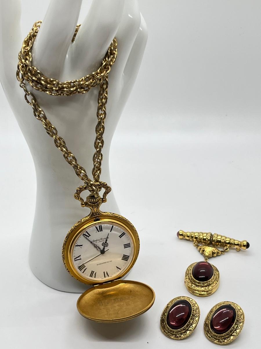 LOT 178J: Andre Revalle 17 Jewels Watch on Chain and More