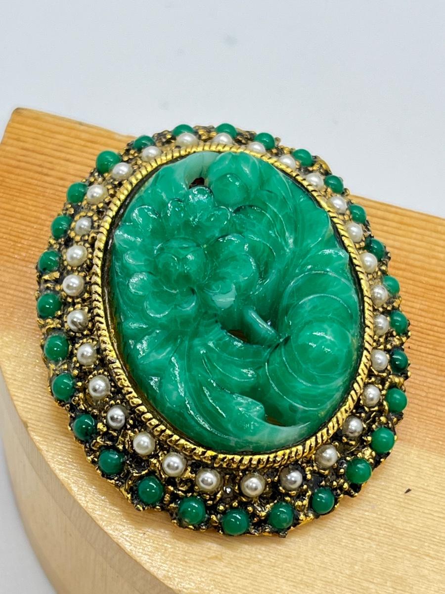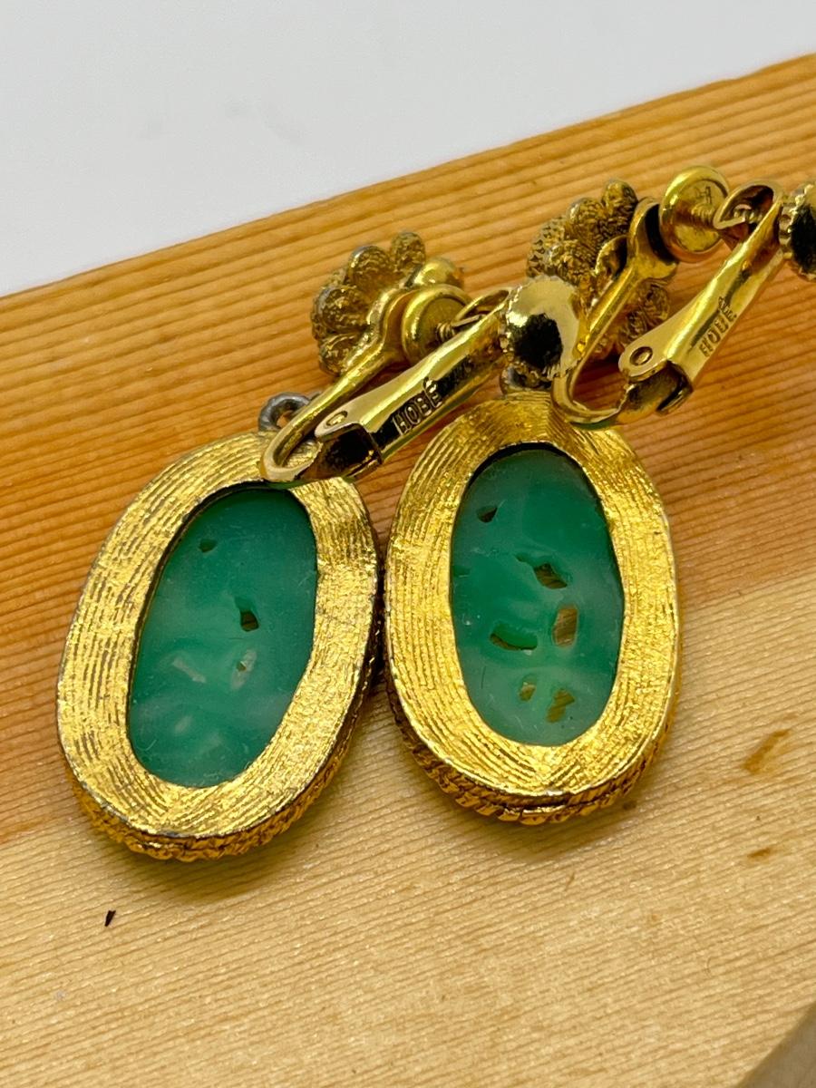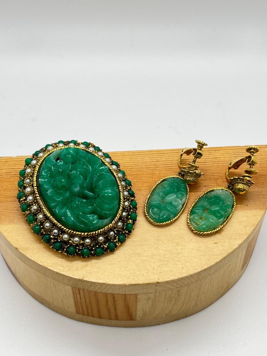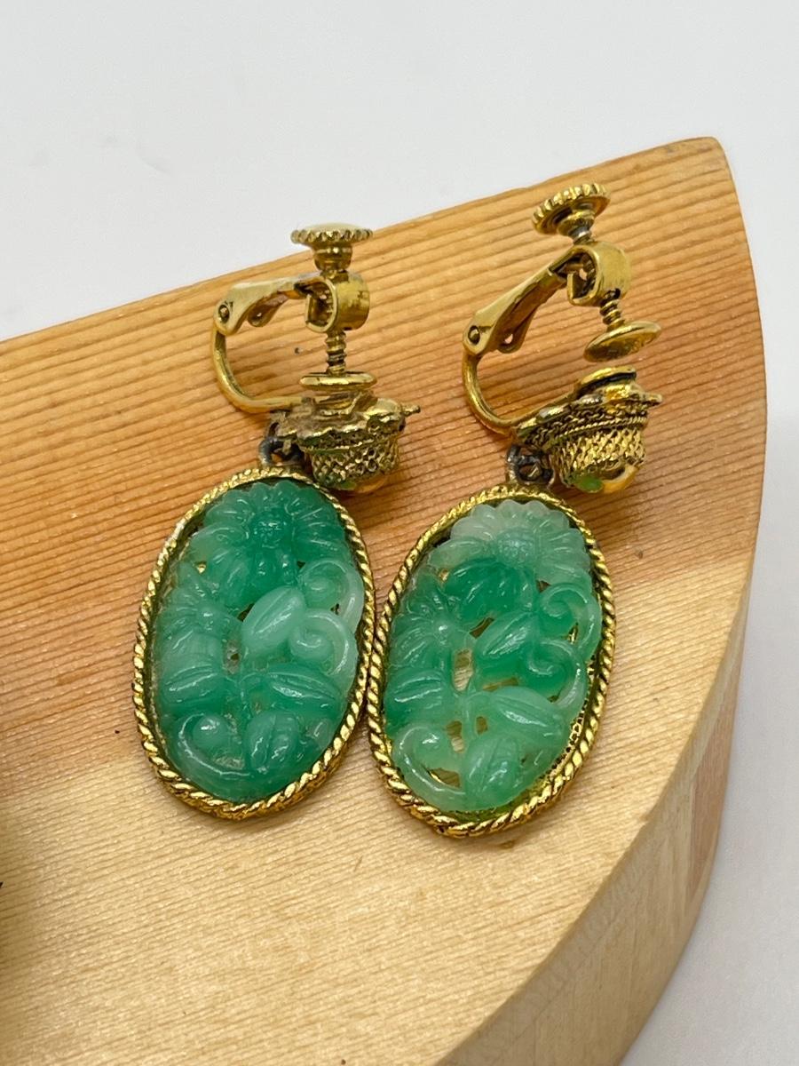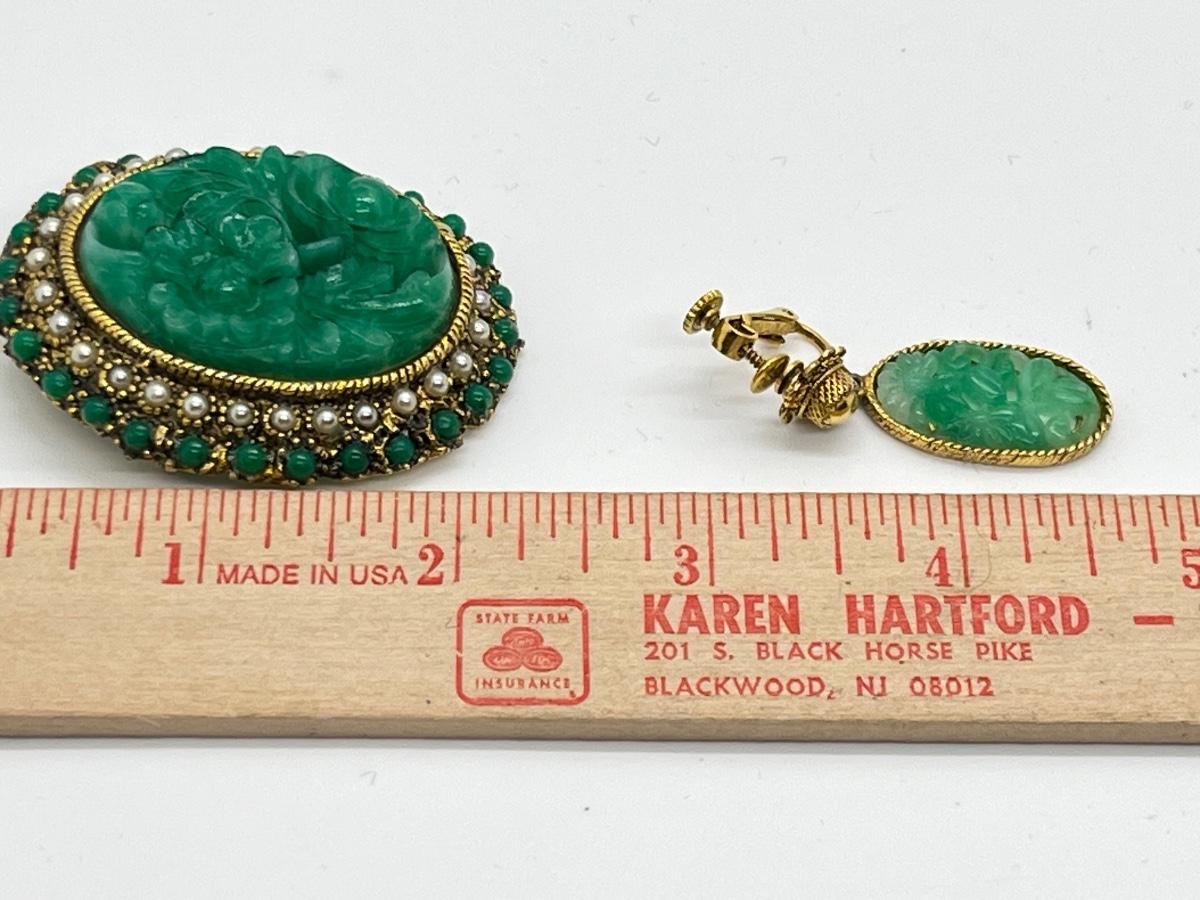 LOT 184J: Vintage Hobe Peking Glass Screwback Earrings and Unmarked Peking Glass Pendant / Brooch