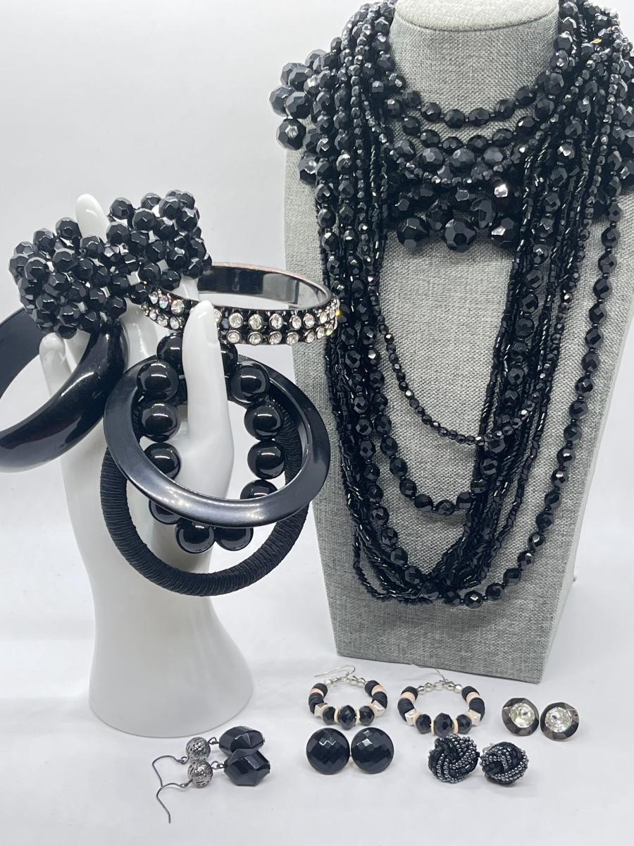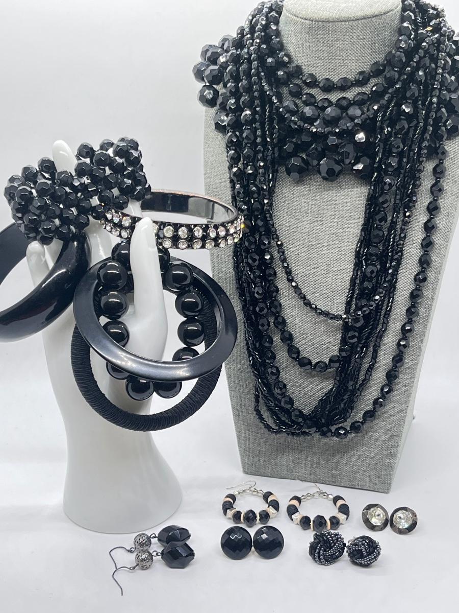 LOT 196J: Vintage Faceted Glass Beads, Chunky Funky Choker, Bracelet, Multi-Strand Necklace and More