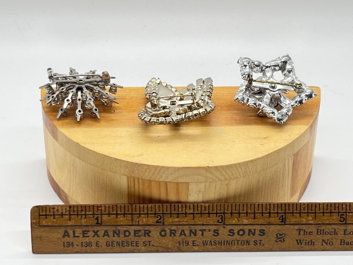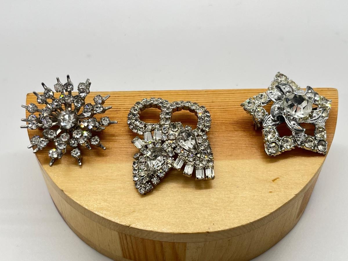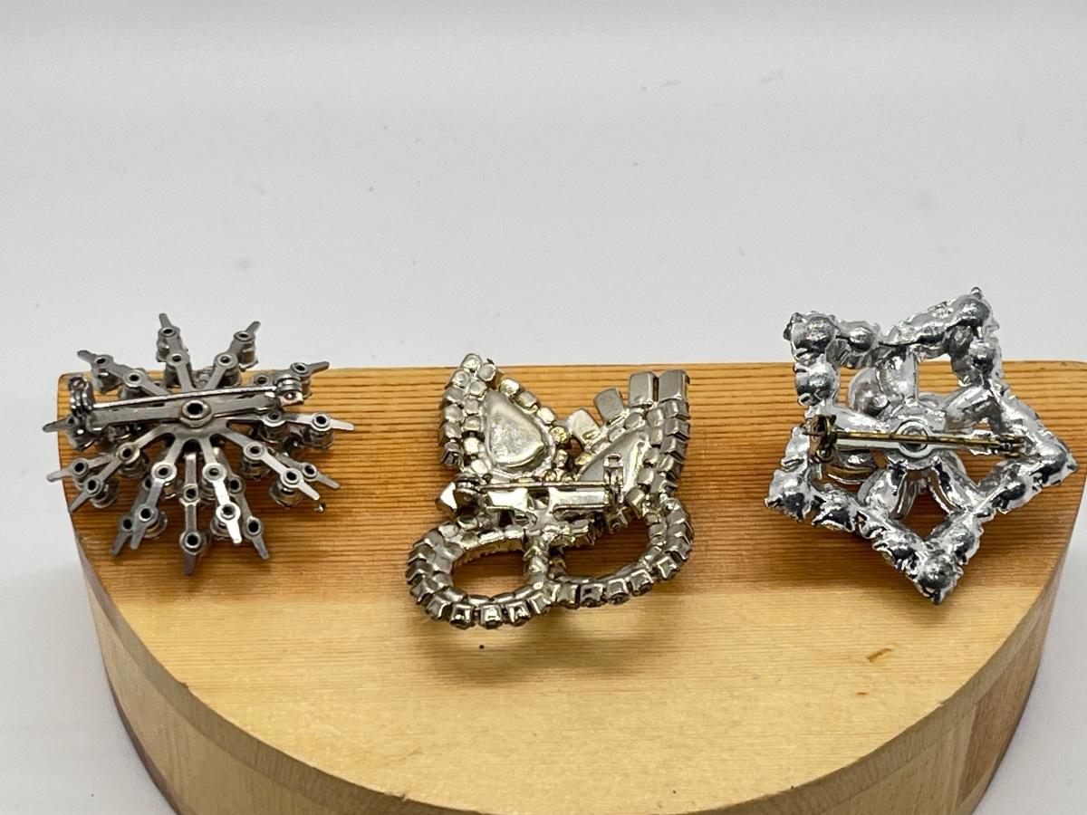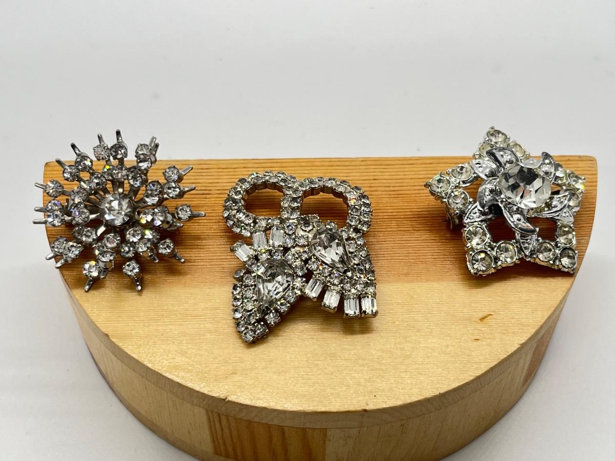 LOT 203J: Three Vintage Rhinestone Crystal Brooches