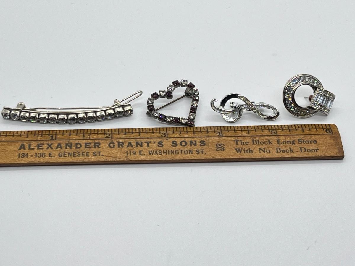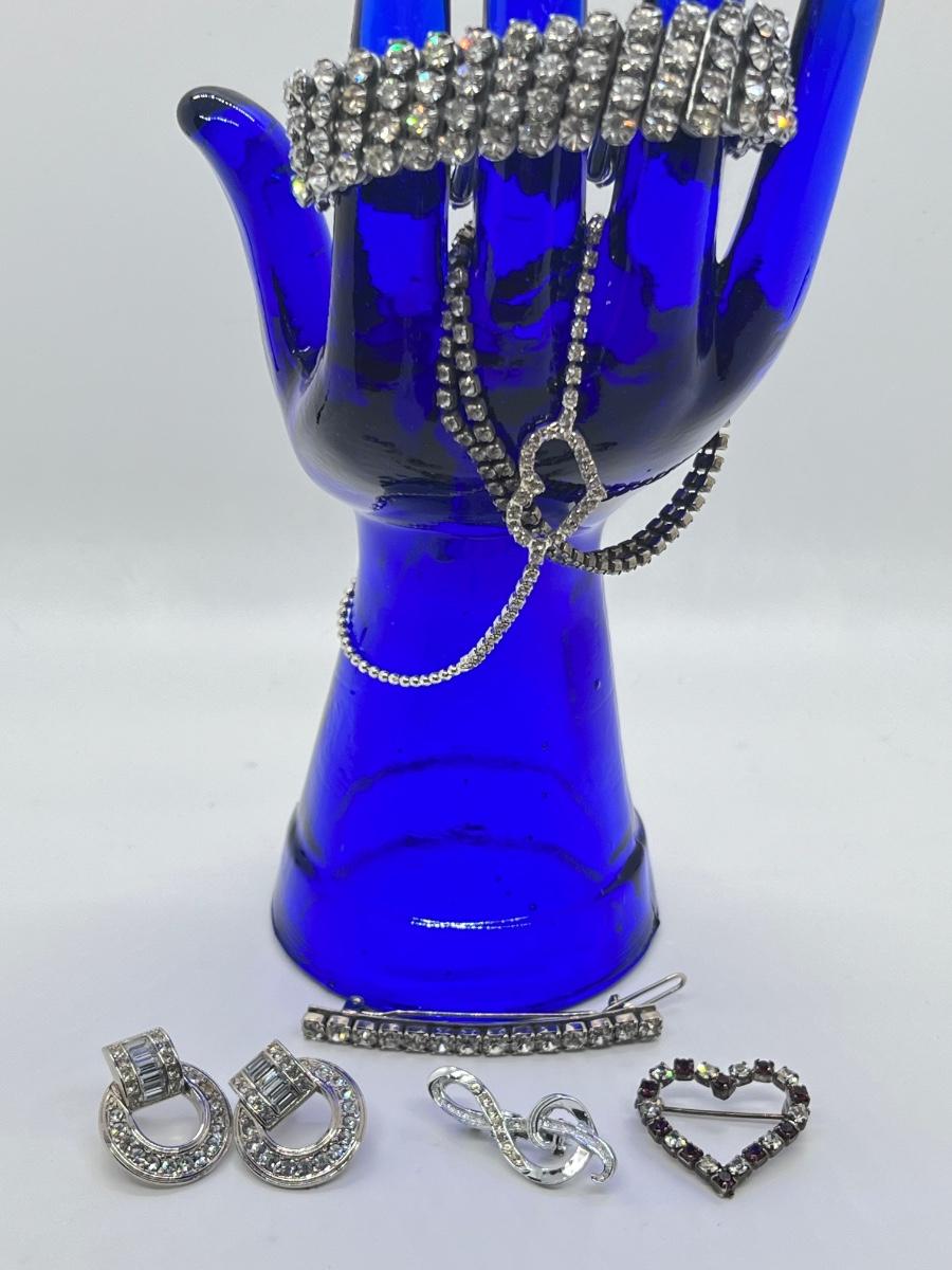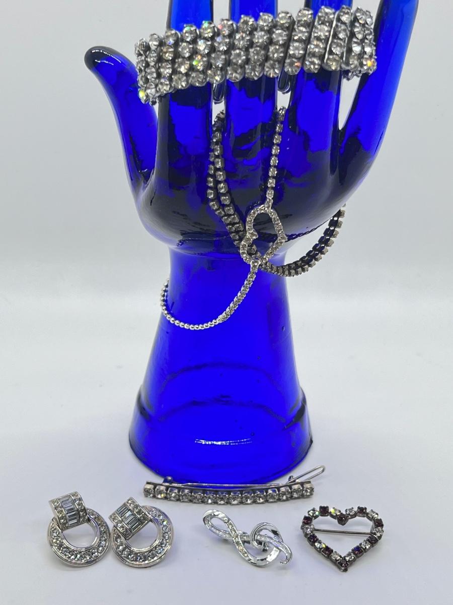 LOT 210J: Vintage Rhinestone Jewelry - Bracelet, Anklet, Earrings, Pin, and Barrette