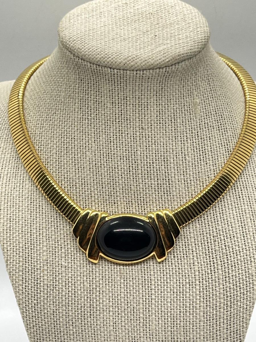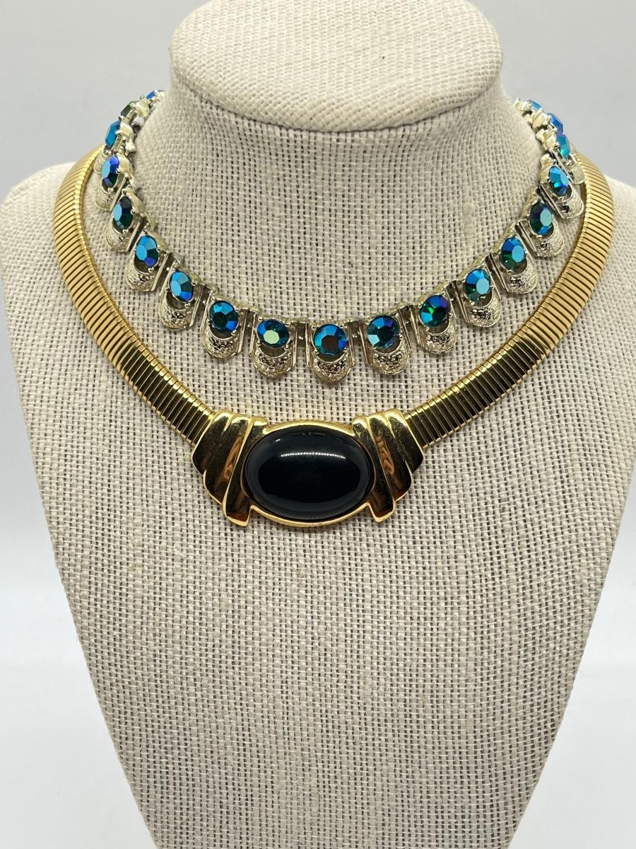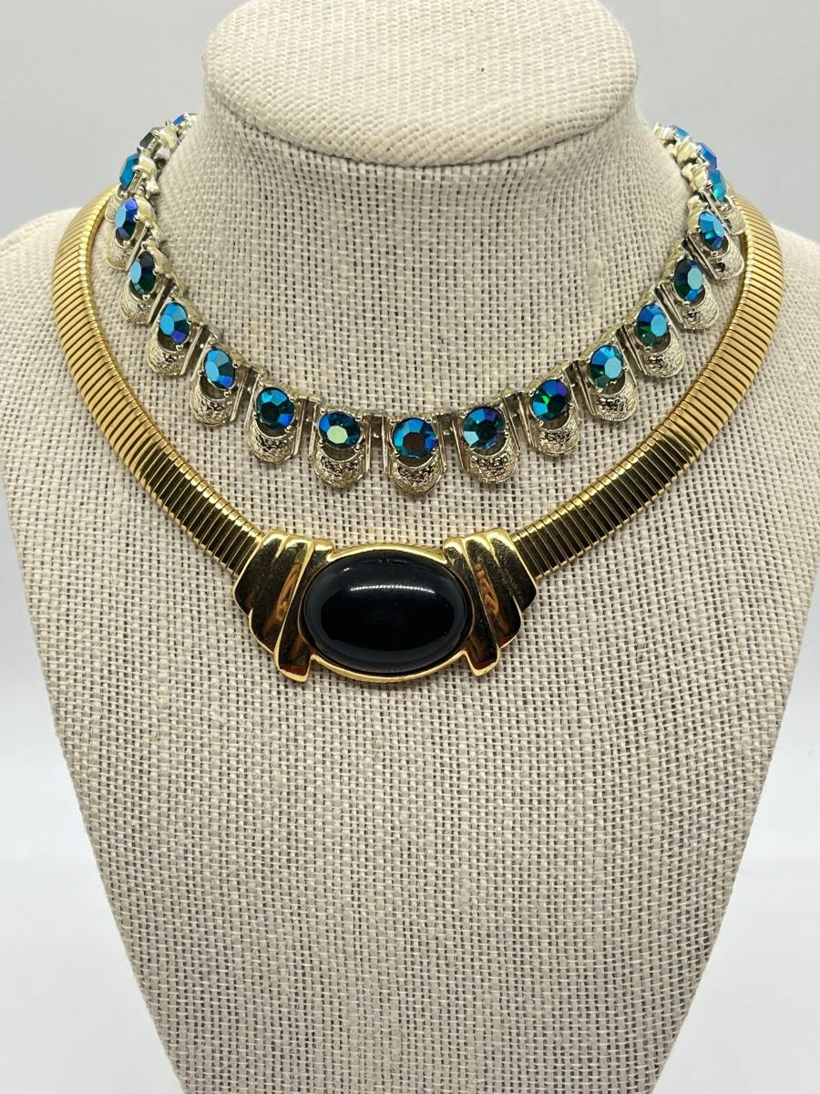 LOT 230J: Goldtone and Black Pendant Choker and Gemstone Choker