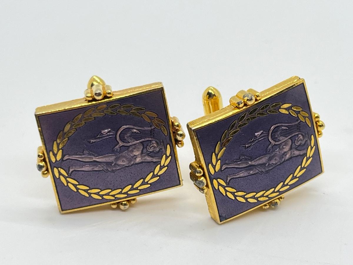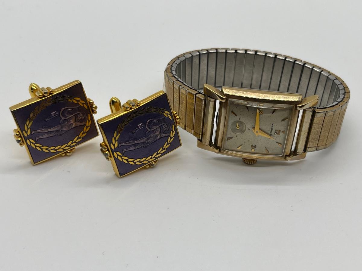 LOT 240J: Vintage Neo-Classical Enamel Cufflinks and 10K Goldfilled Watch