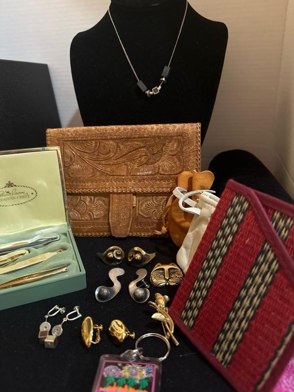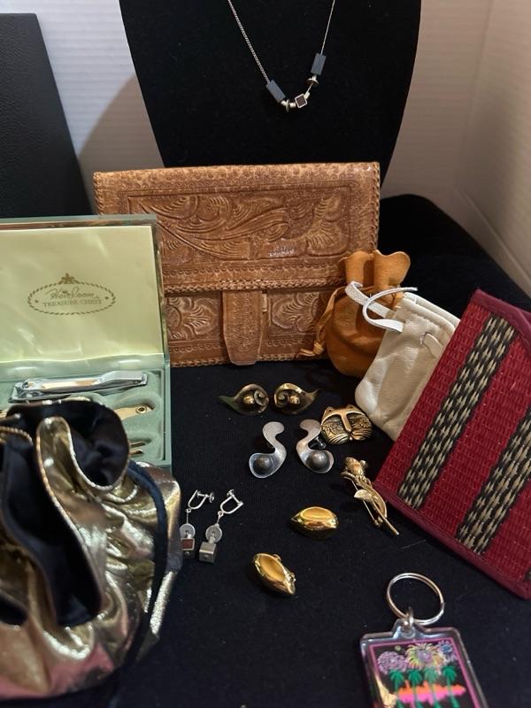Variety of earrings Napier, sterling,leather wallet