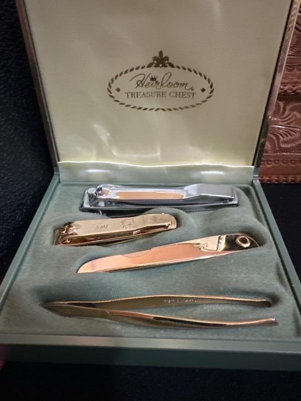 Pouches. Jewelry gold color pouch, nail clipper set