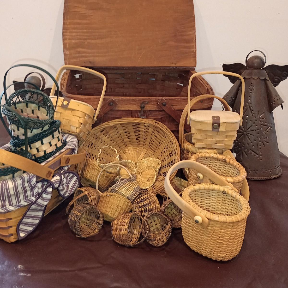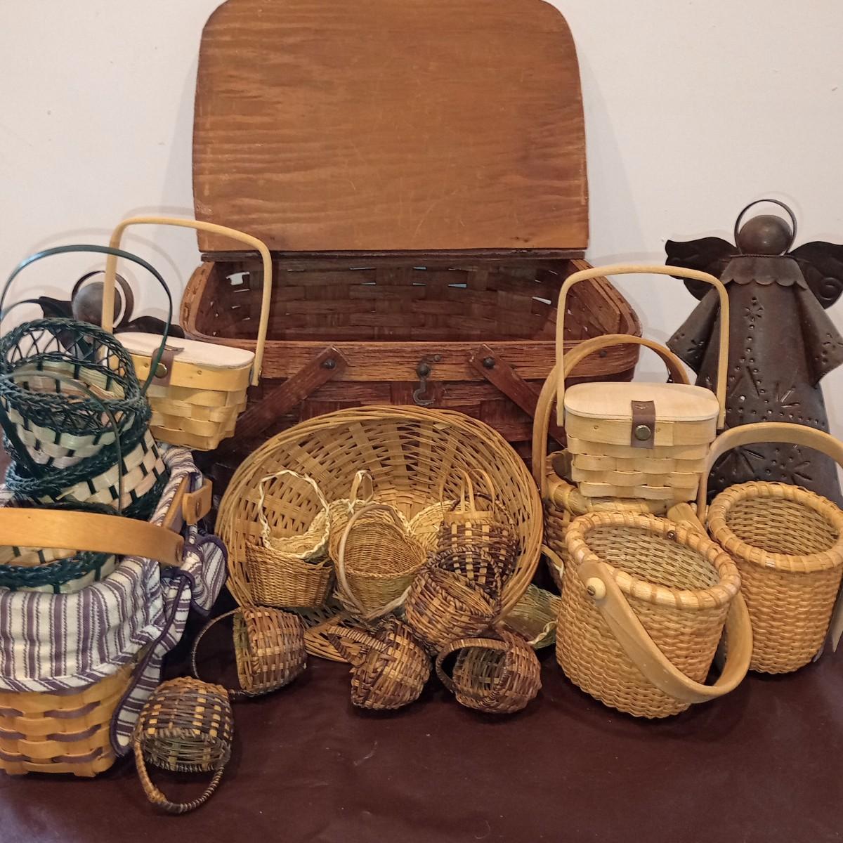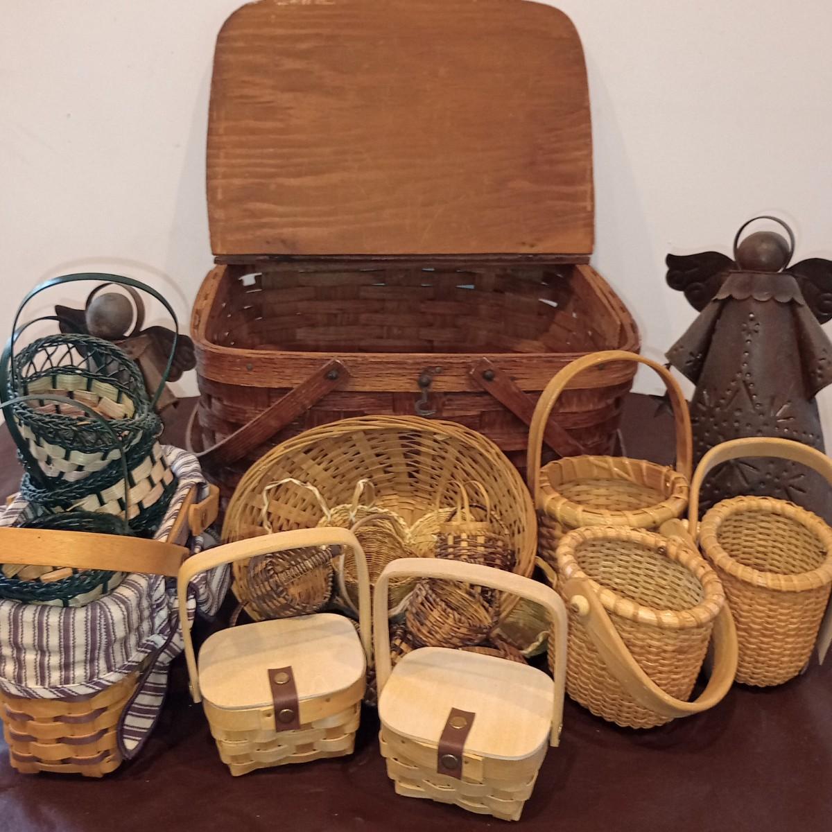 LOT 8P: Baskets of All Sizes. Picnic Baskets in Small, Medium, and Large. Miniature Baskets and Lots More.