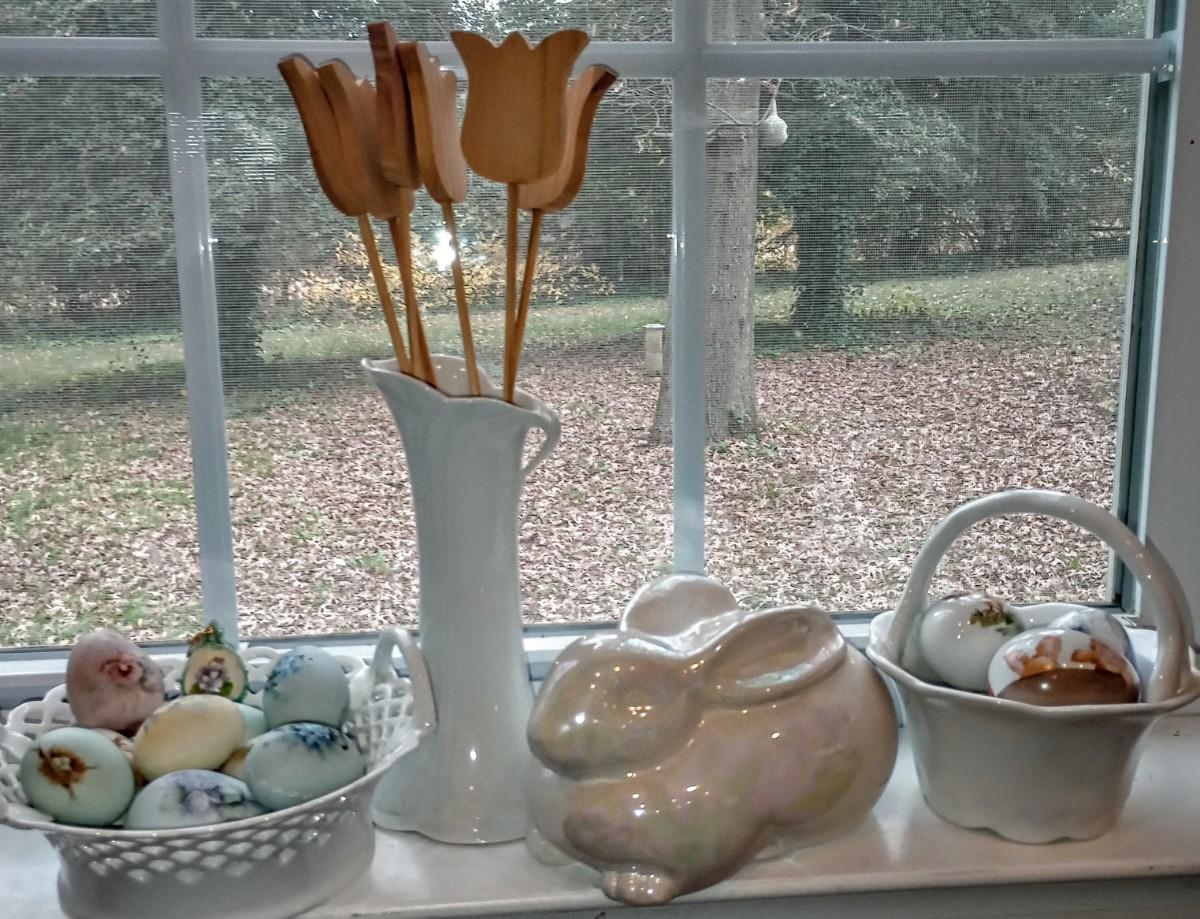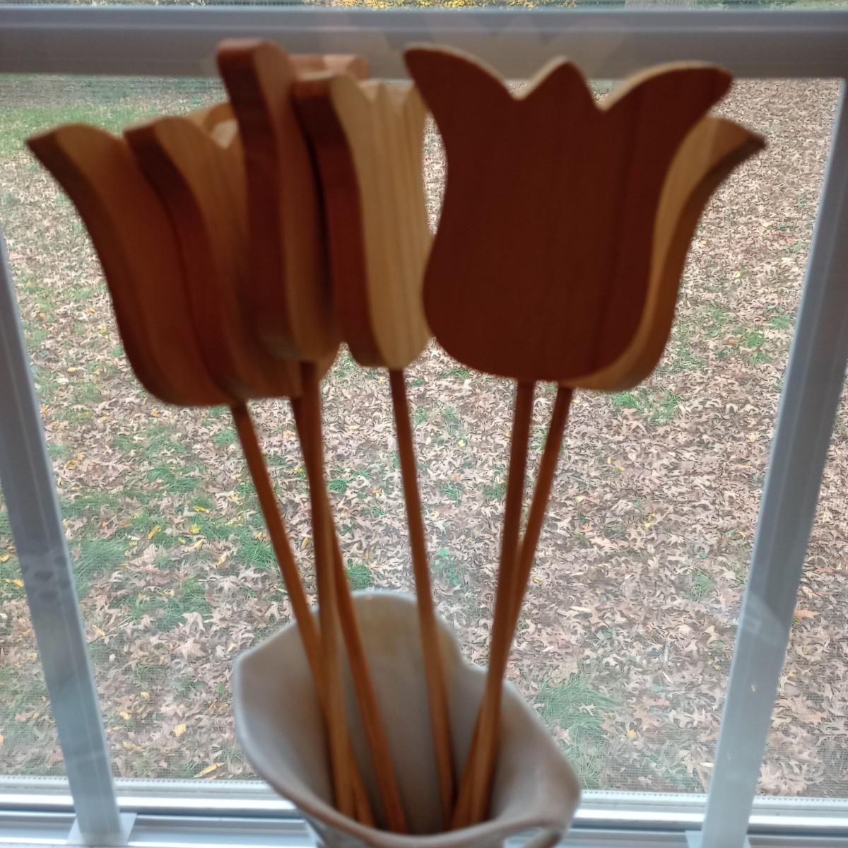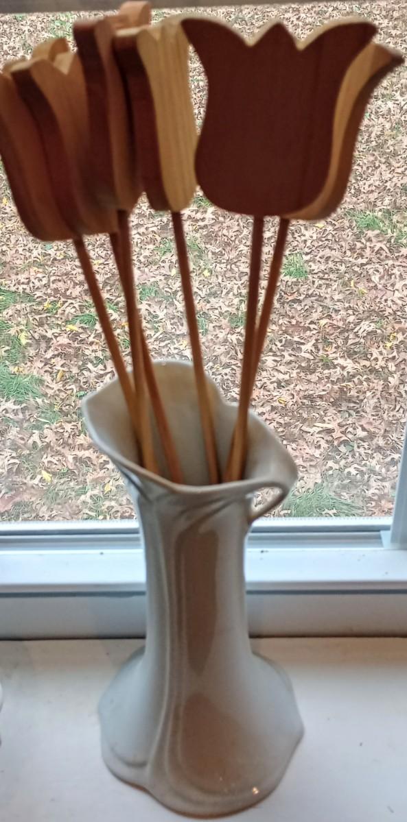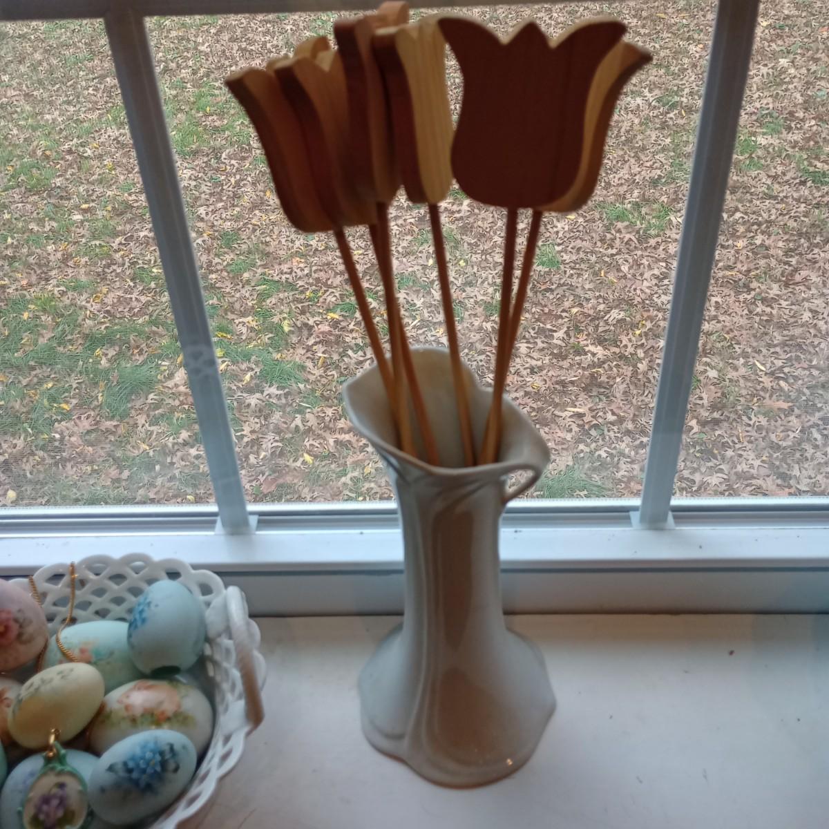 LOT 13P: Handpainted Spring Decor and Wood Flowers in Vase