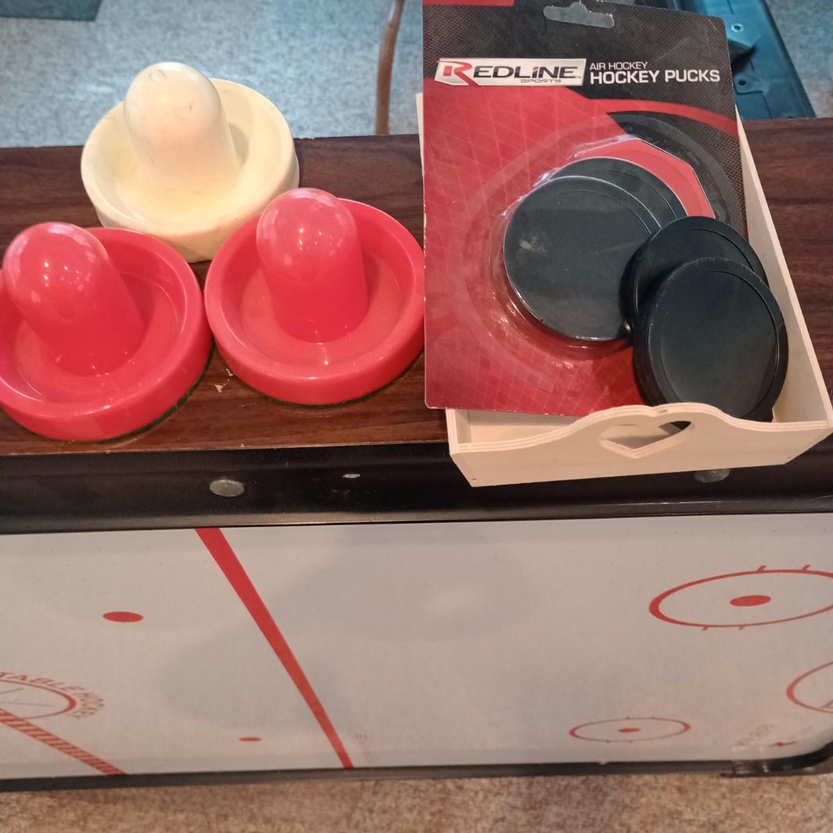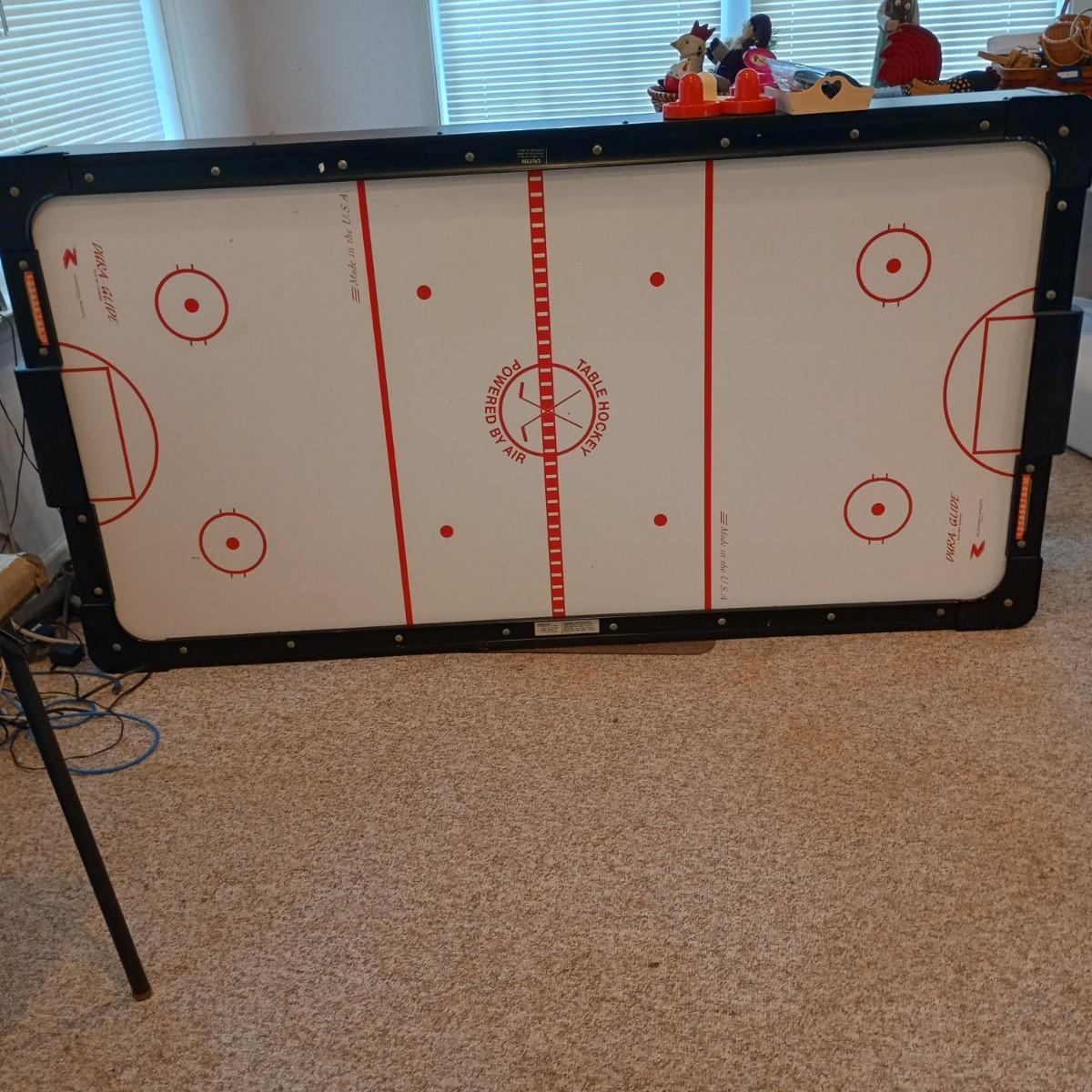 Air Hockey Table works but needs brackets on legs screwed in. Please see all pictures as they are the best representation of the items. The pictures show condition, measurements if taken, and what is included in the lot. Due to the large amount that we photograph and the time frame, we are not always able to take measurements. All items unless noted, are pre-owned and have been used. If you purchased furniture, you must bring help. We do not allow one person to carry large furniture out on their own. Bring help, tools and a truck for the safety of our client’s homes, and your personal safety. Any damages that result to the property including walls, and floors due to moving of the furniture will be charged to the buyer. Company policy. Thank you.