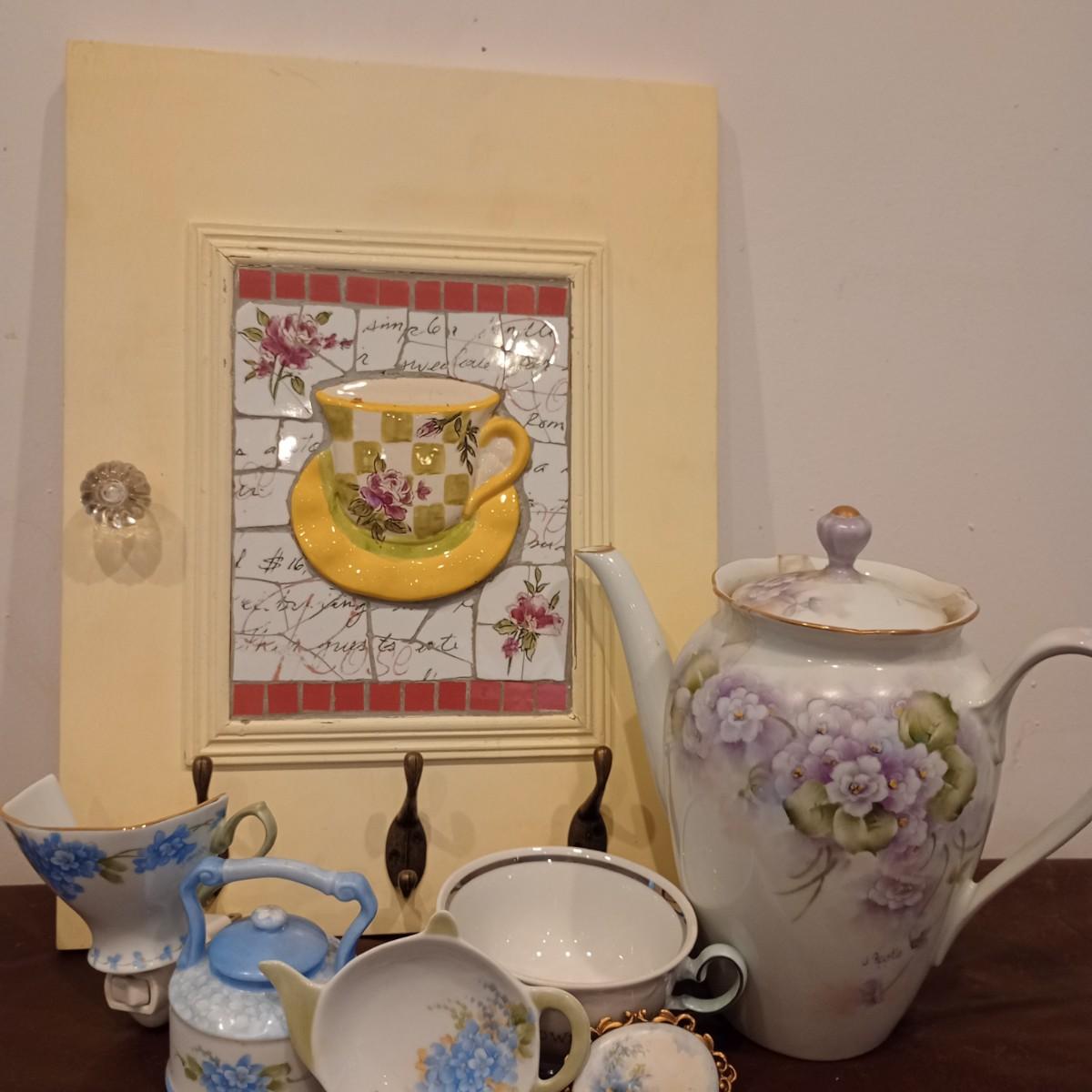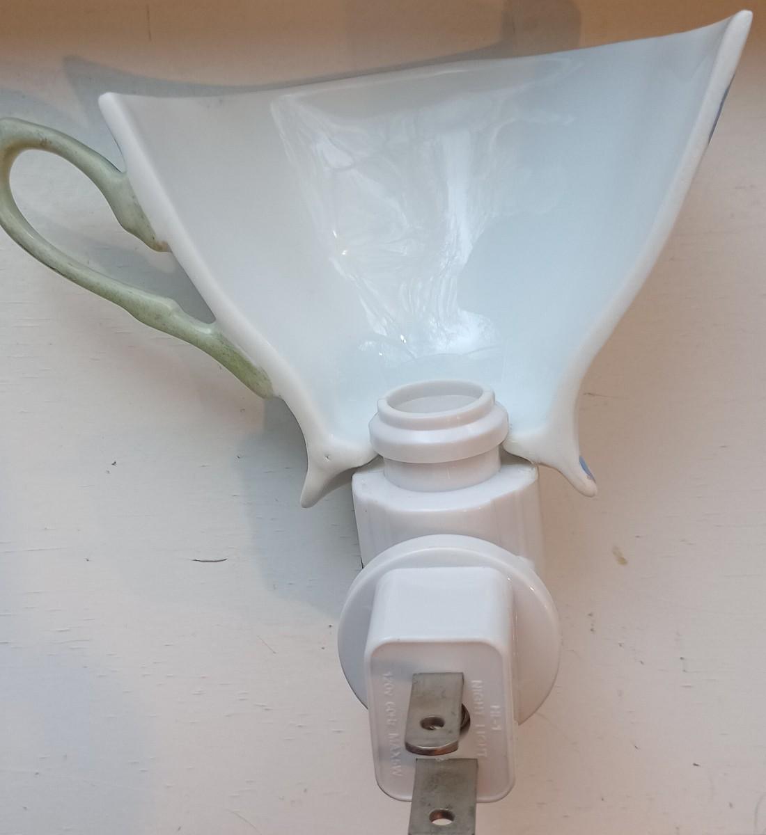 LOT 18P: Teacup Decor Includes Nightlight and Brooch