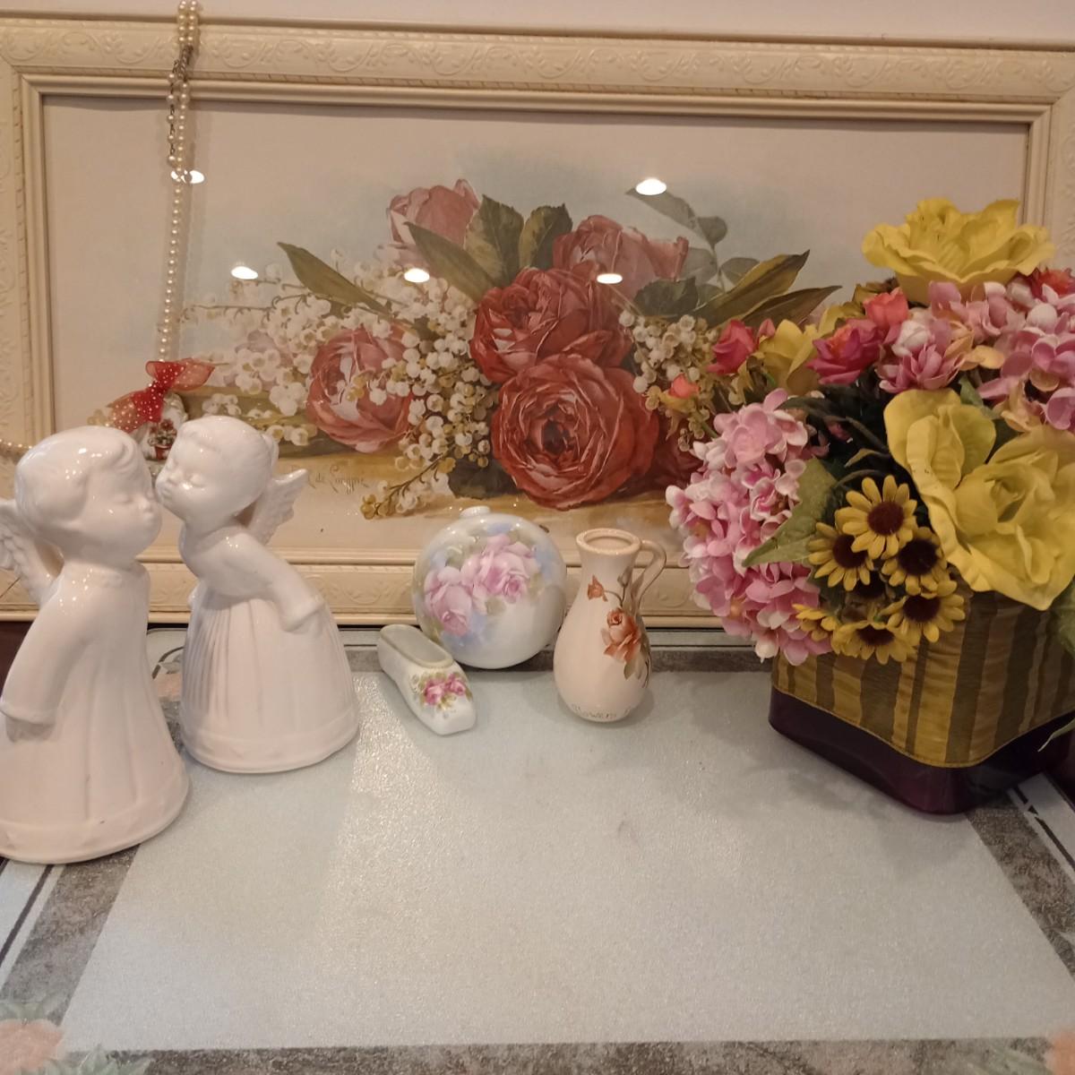 LOT 19P: Rose Decor-Includes Artwork, Faux Pearl Necklace, Christmas Balls, and More