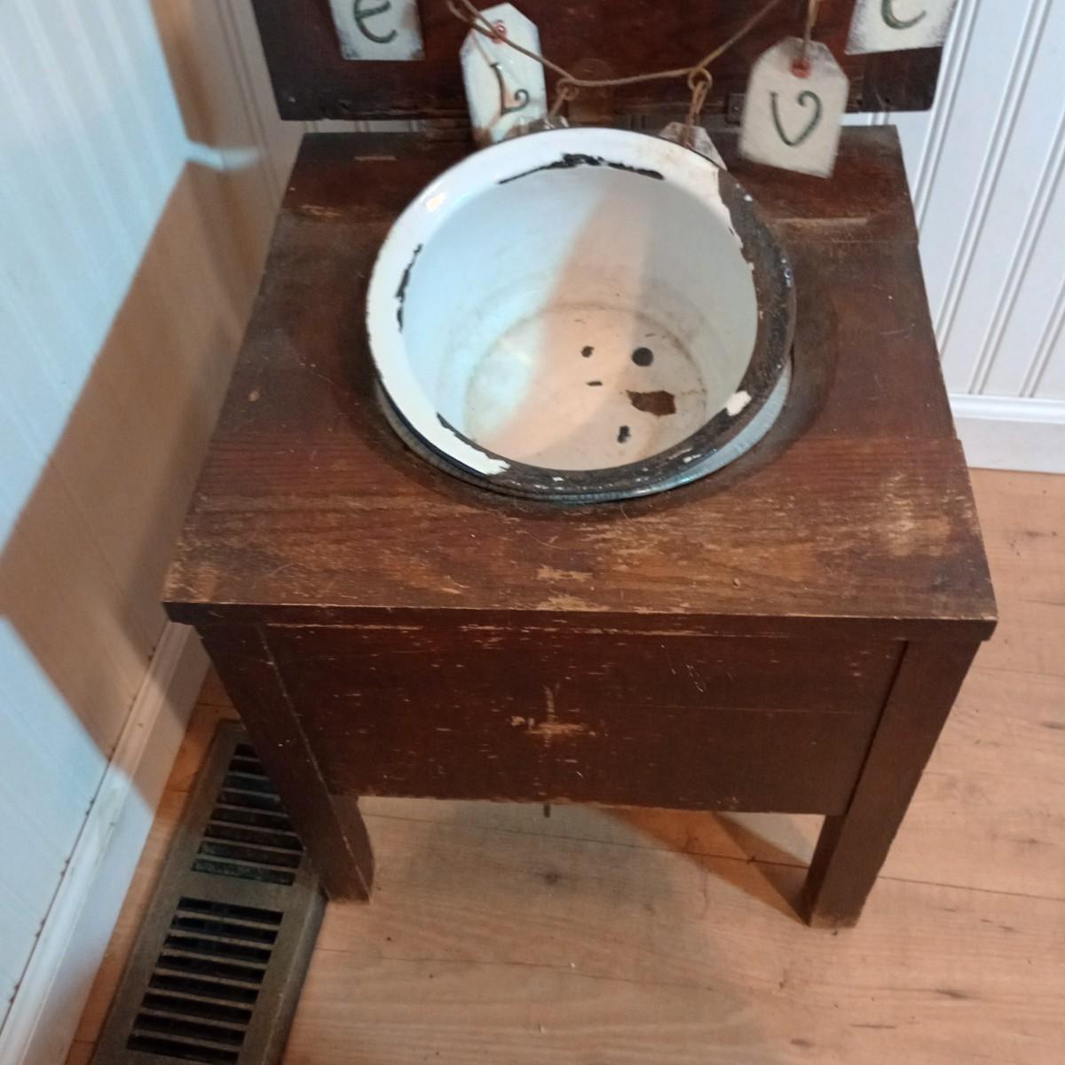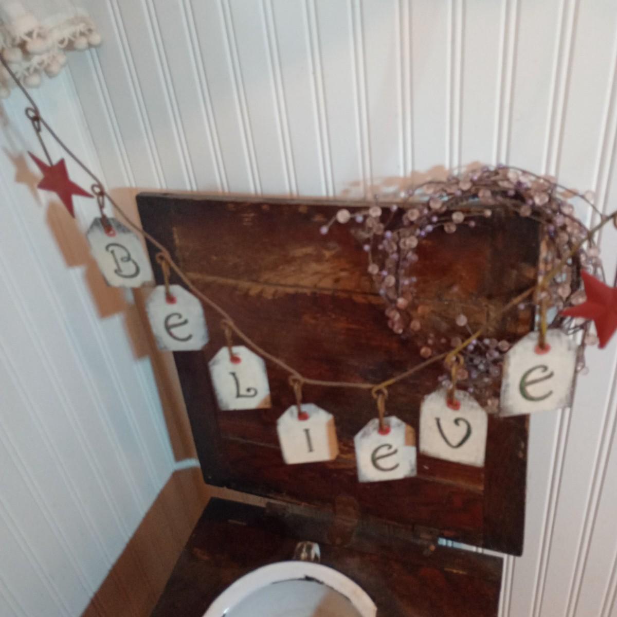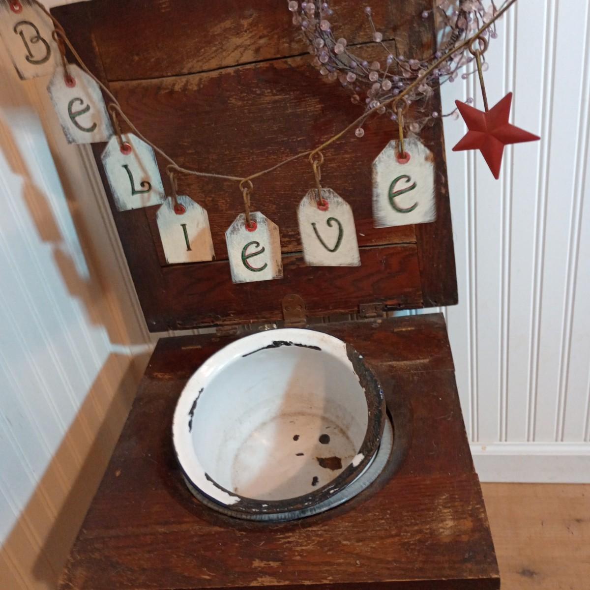 LOT 34B: Antique Potty Chair Decoration, Small Wreath and "Believe" Sign
