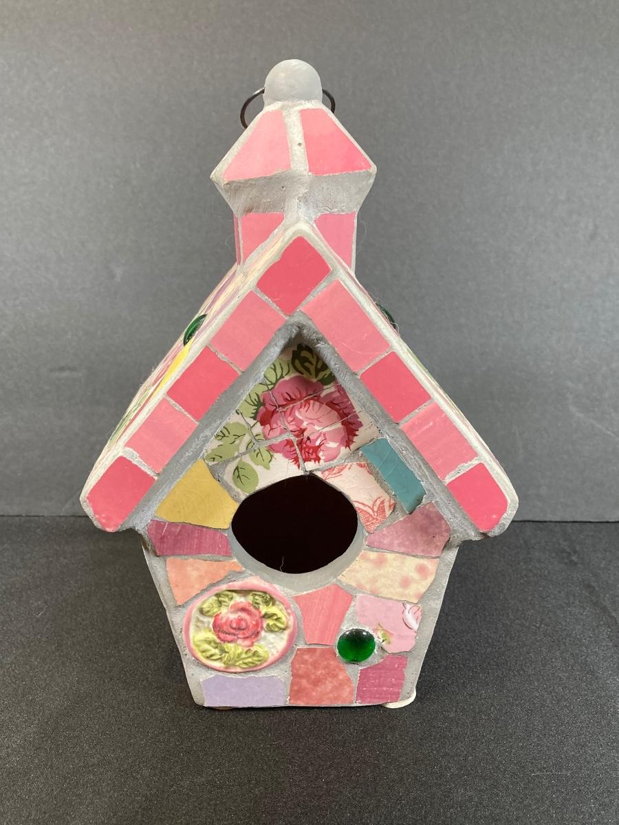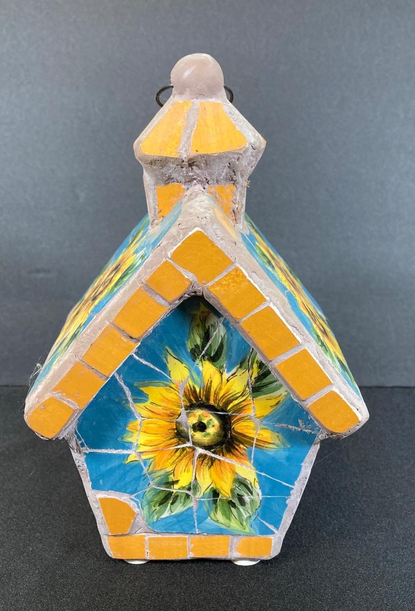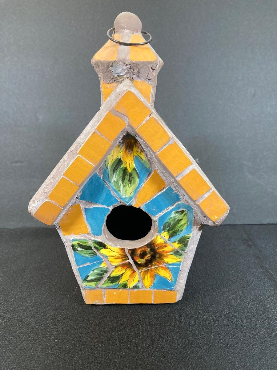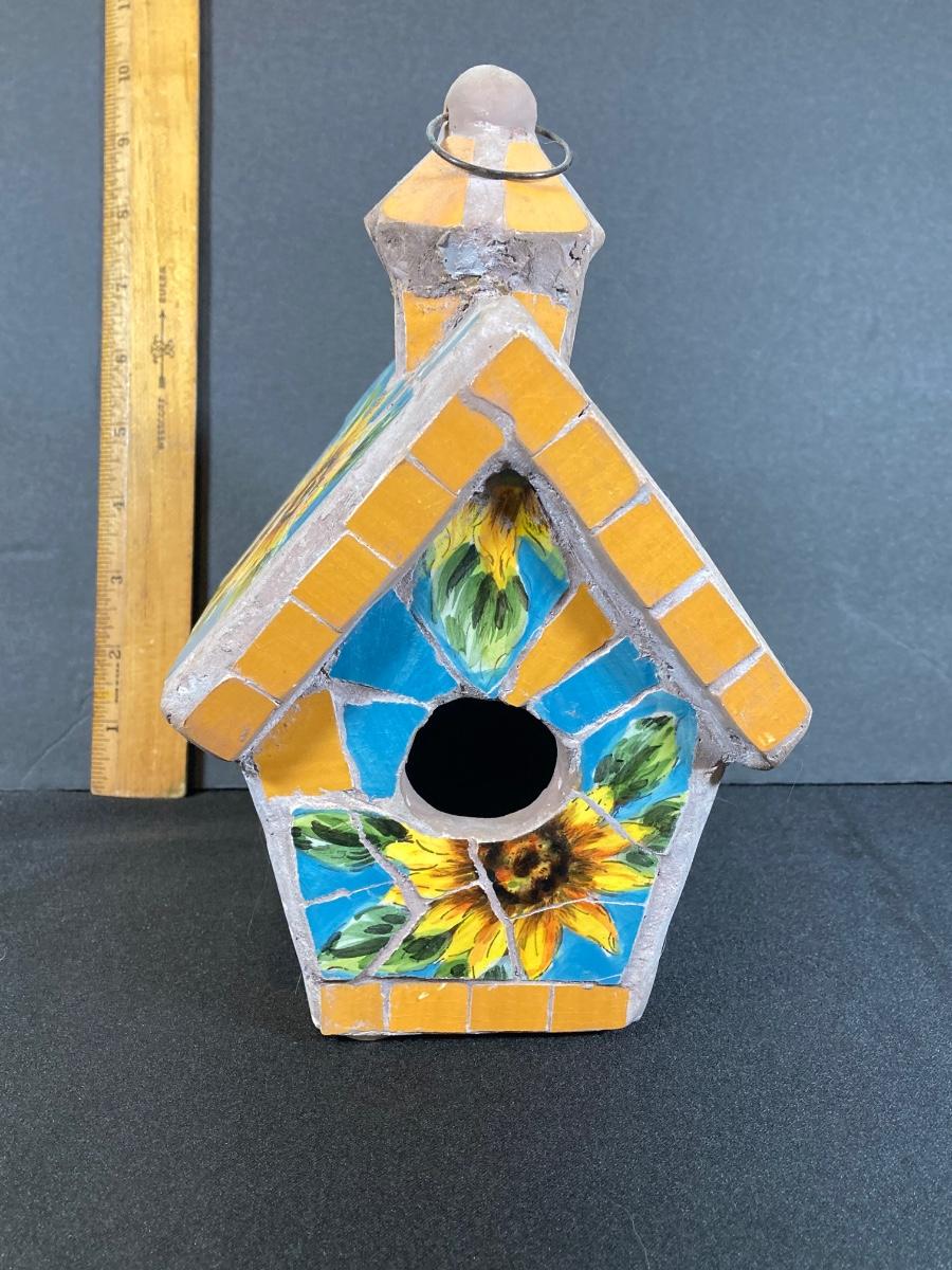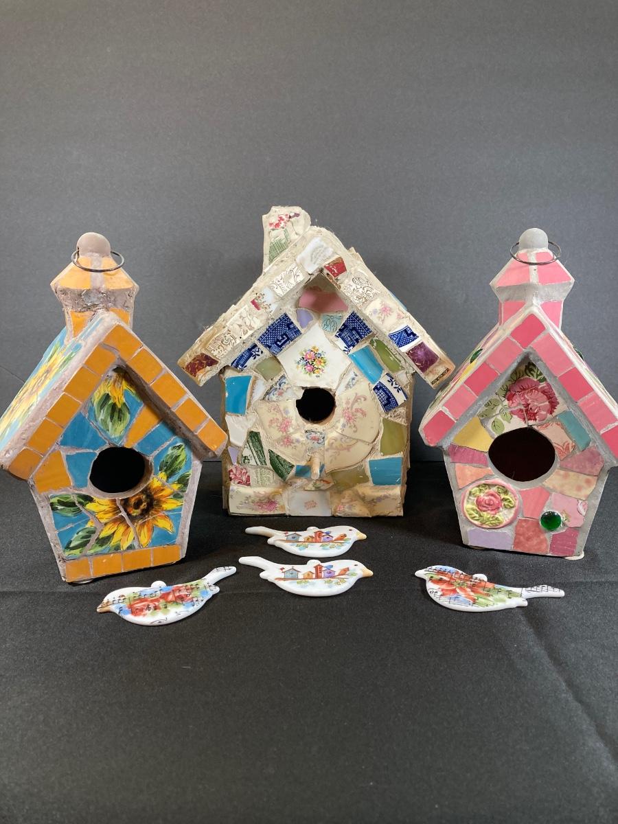 LOT 45P: Collection of Mosaic Birdhouses and Hand Painted Bird Ornaments