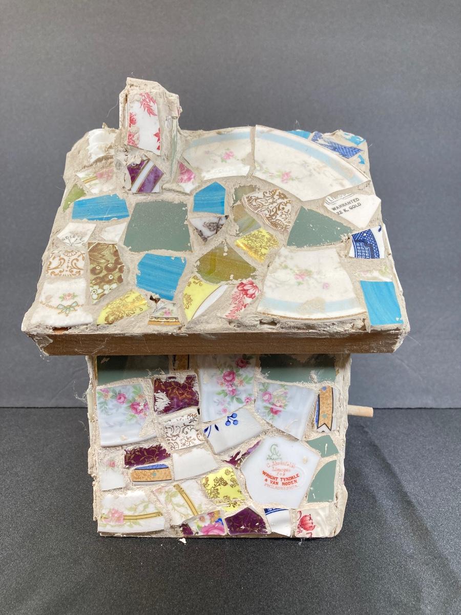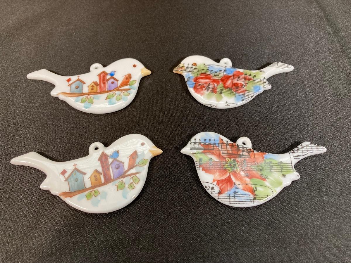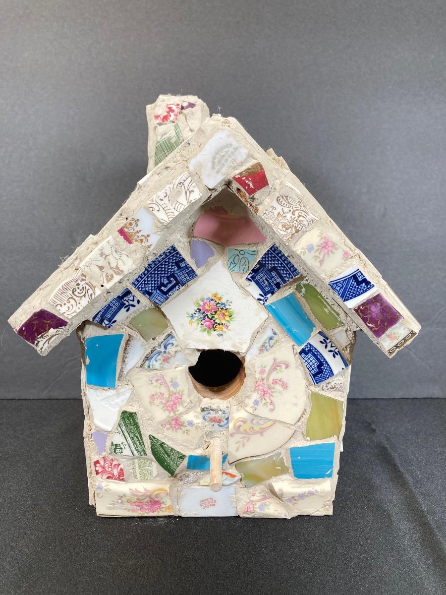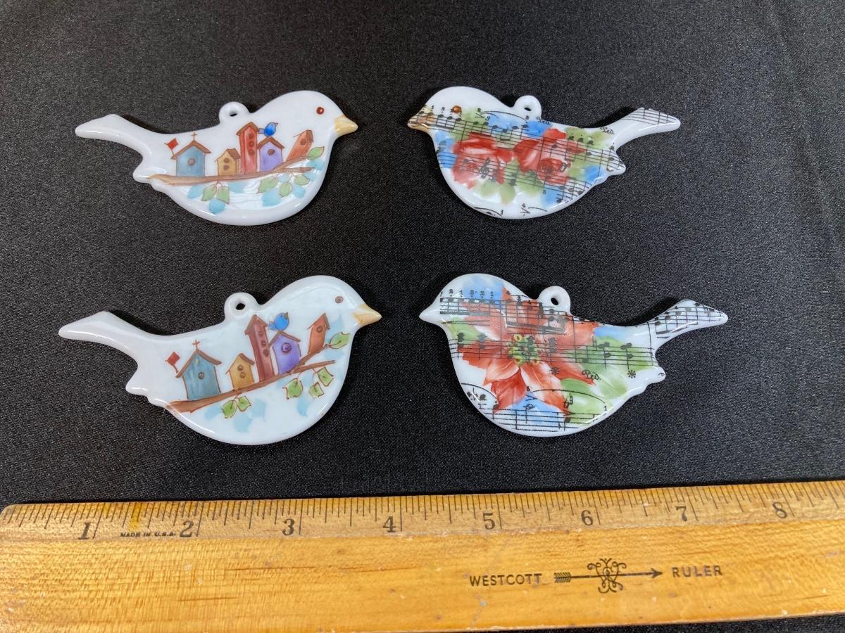 LOT 45P: Collection of Mosaic Birdhouses and Hand Painted Bird Ornaments