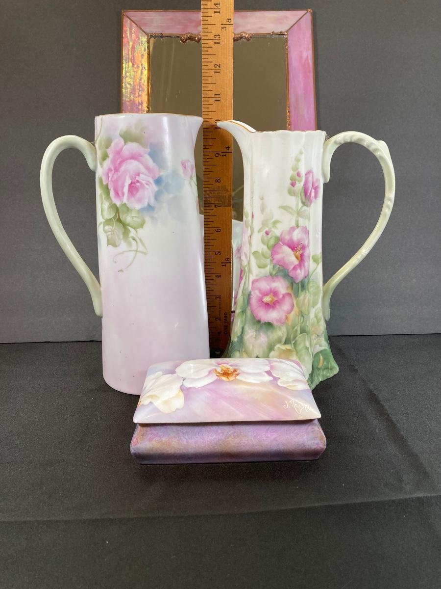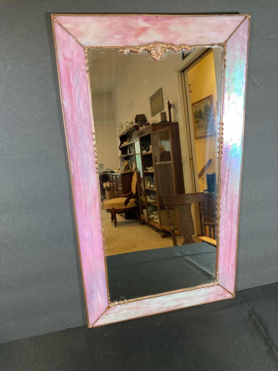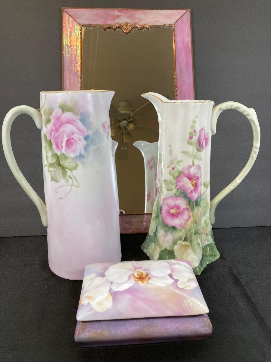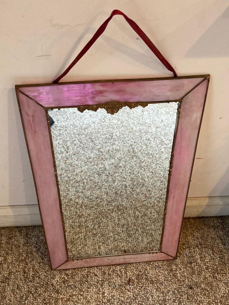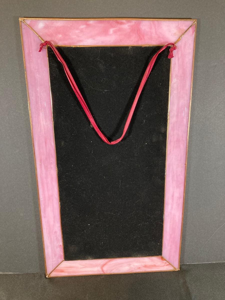 LOT 49P: Hand Painted Pink Flower Collection with Pink Stained Glass Mirror