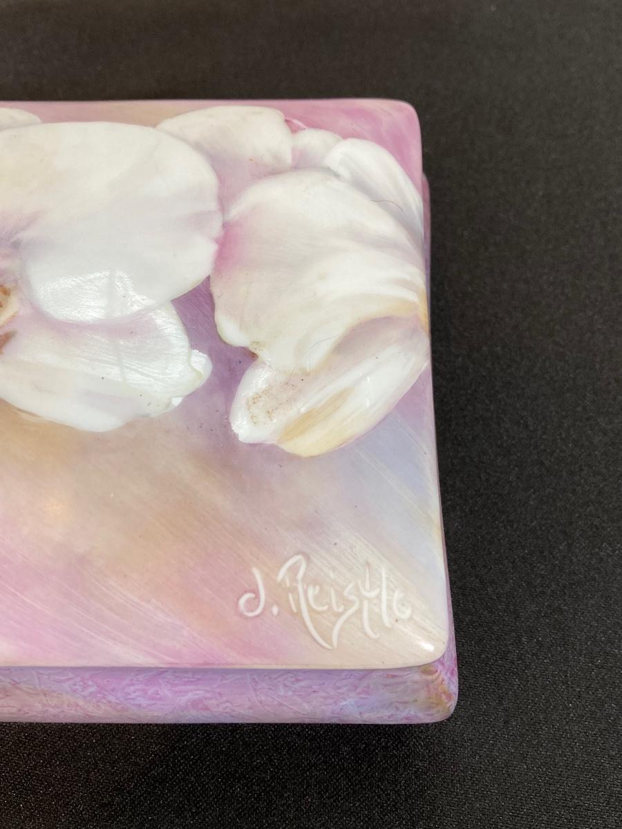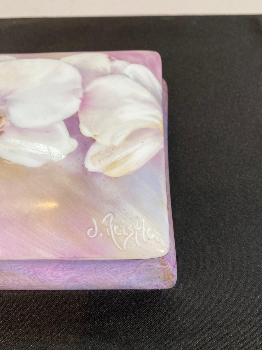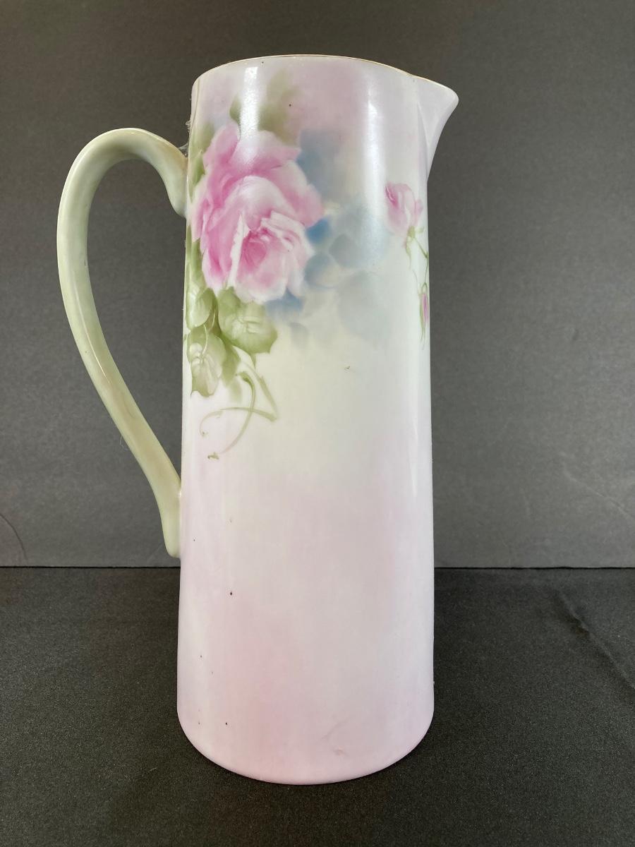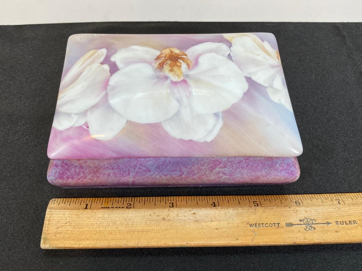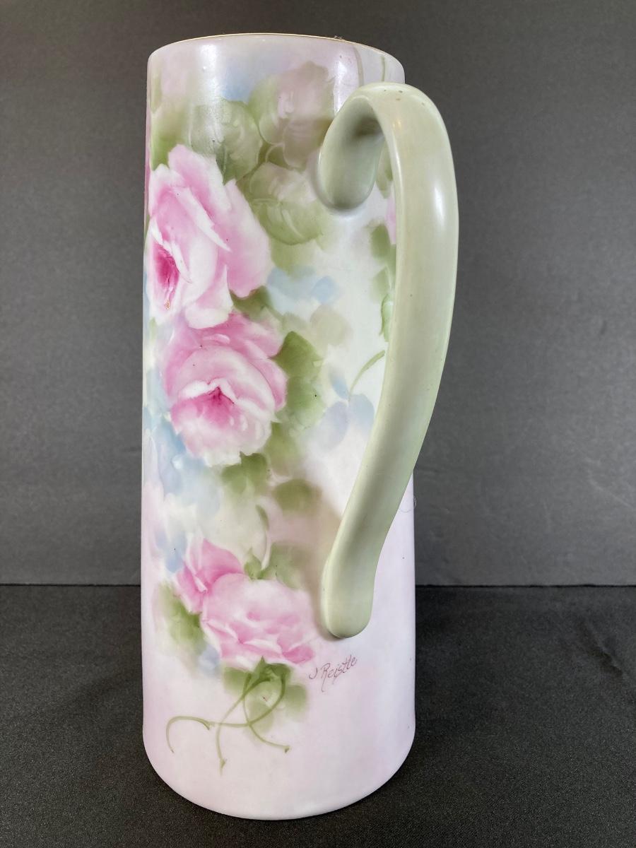 LOT 49P: Hand Painted Pink Flower Collection with Pink Stained Glass Mirror