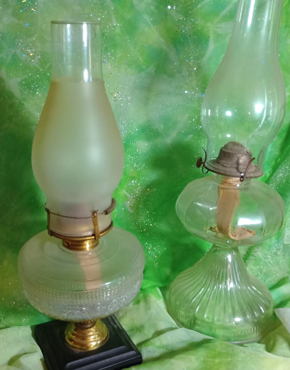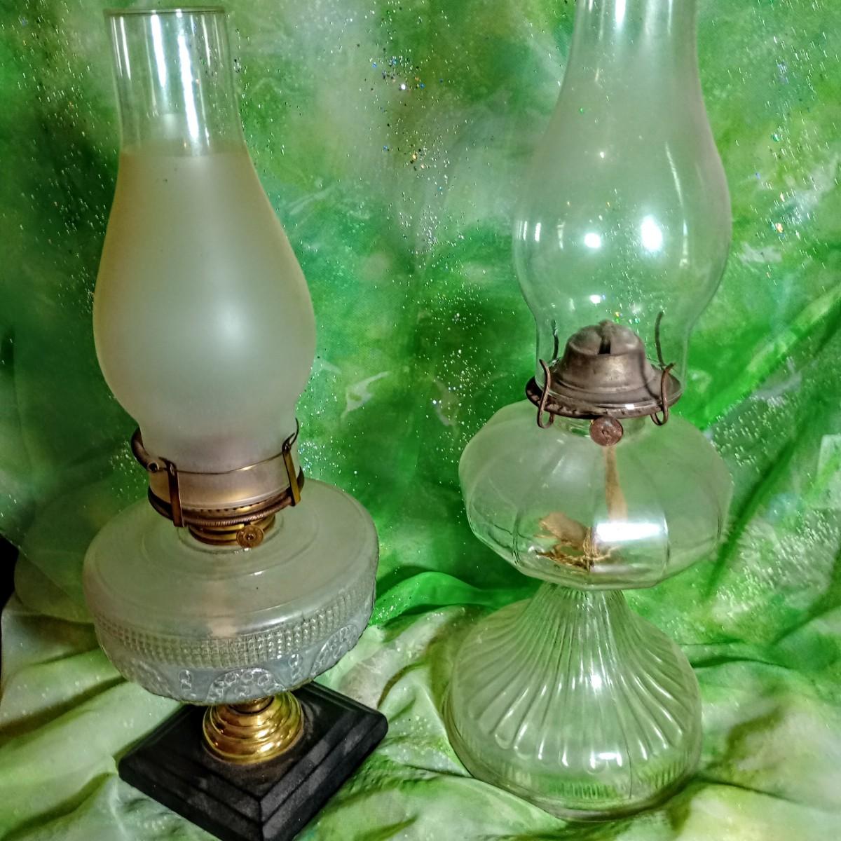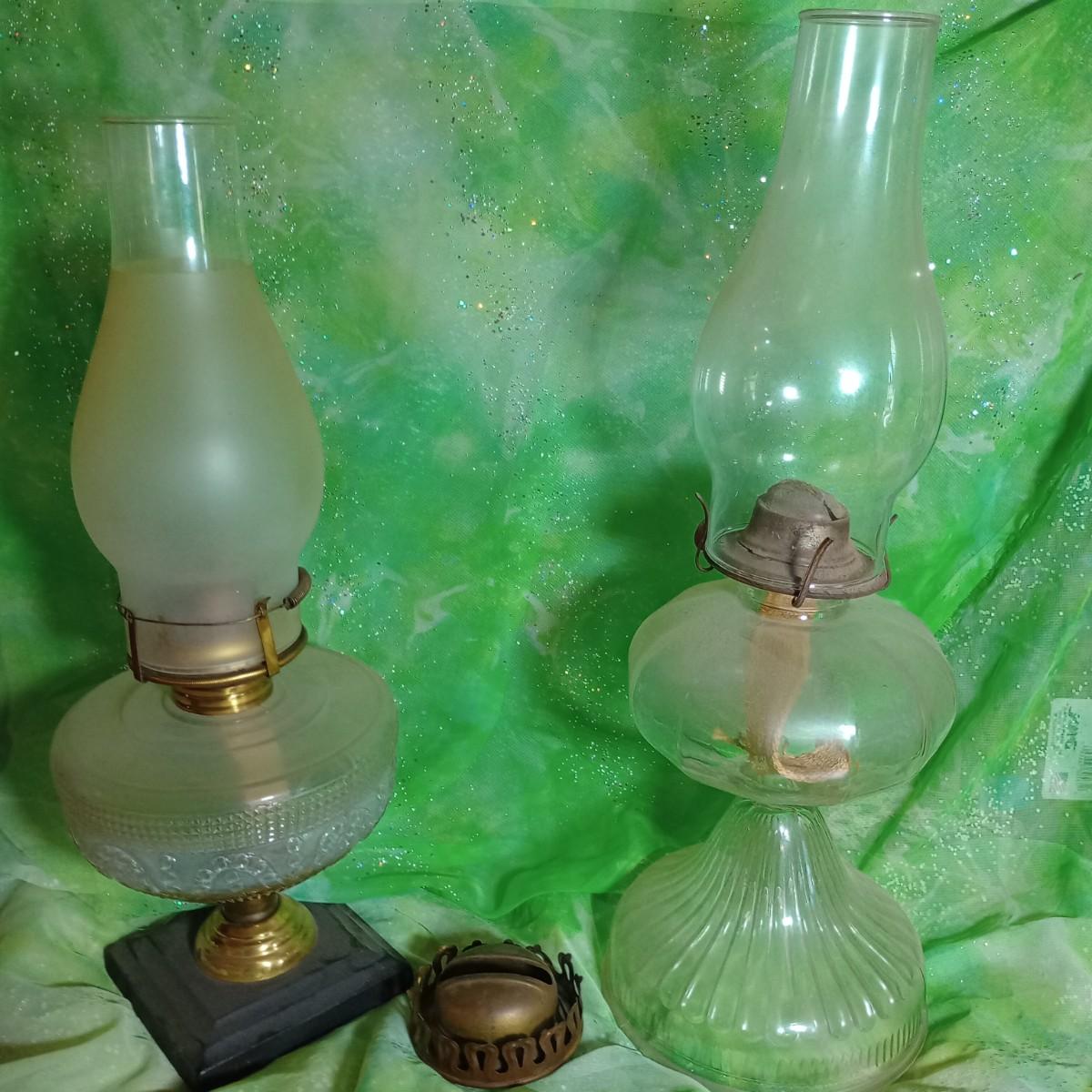 LOT 64D: Two Vintage Oil Lamps and Extra Wick Holder